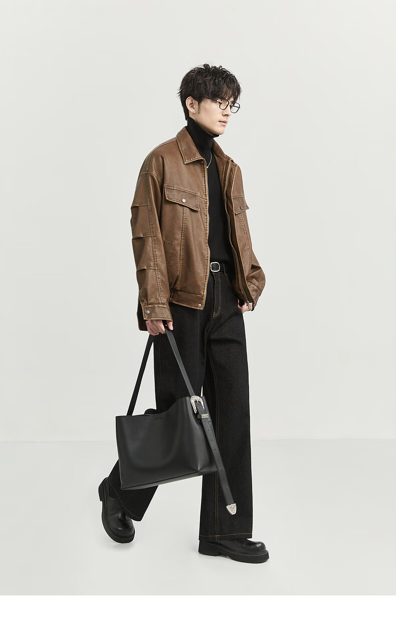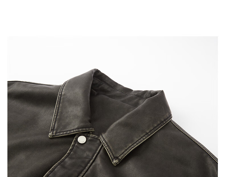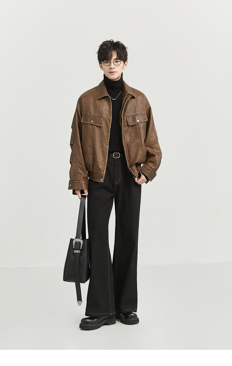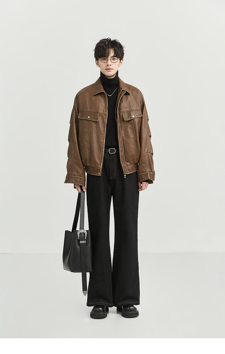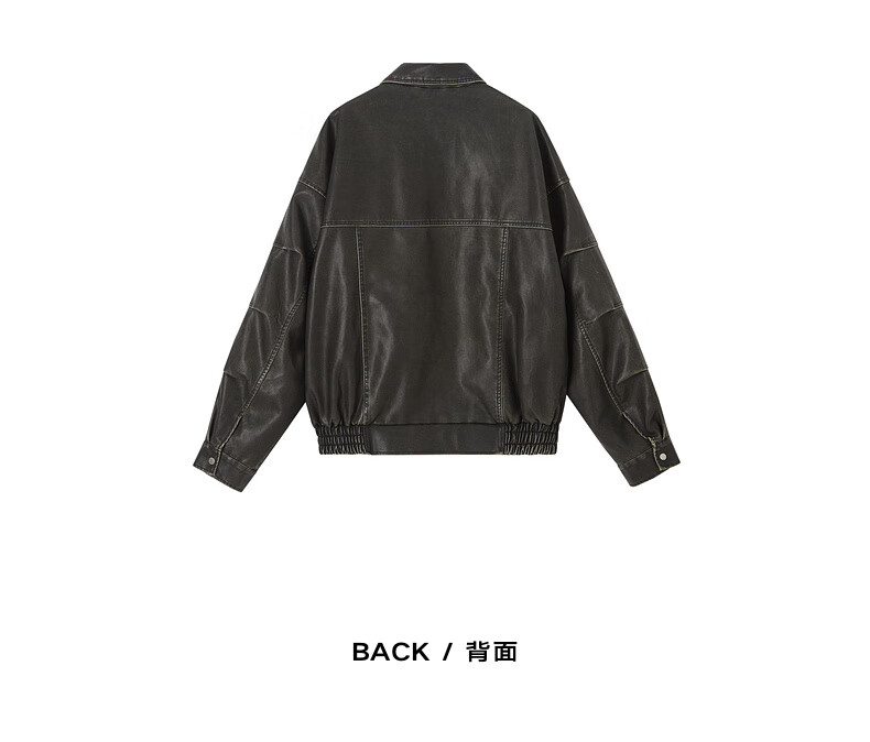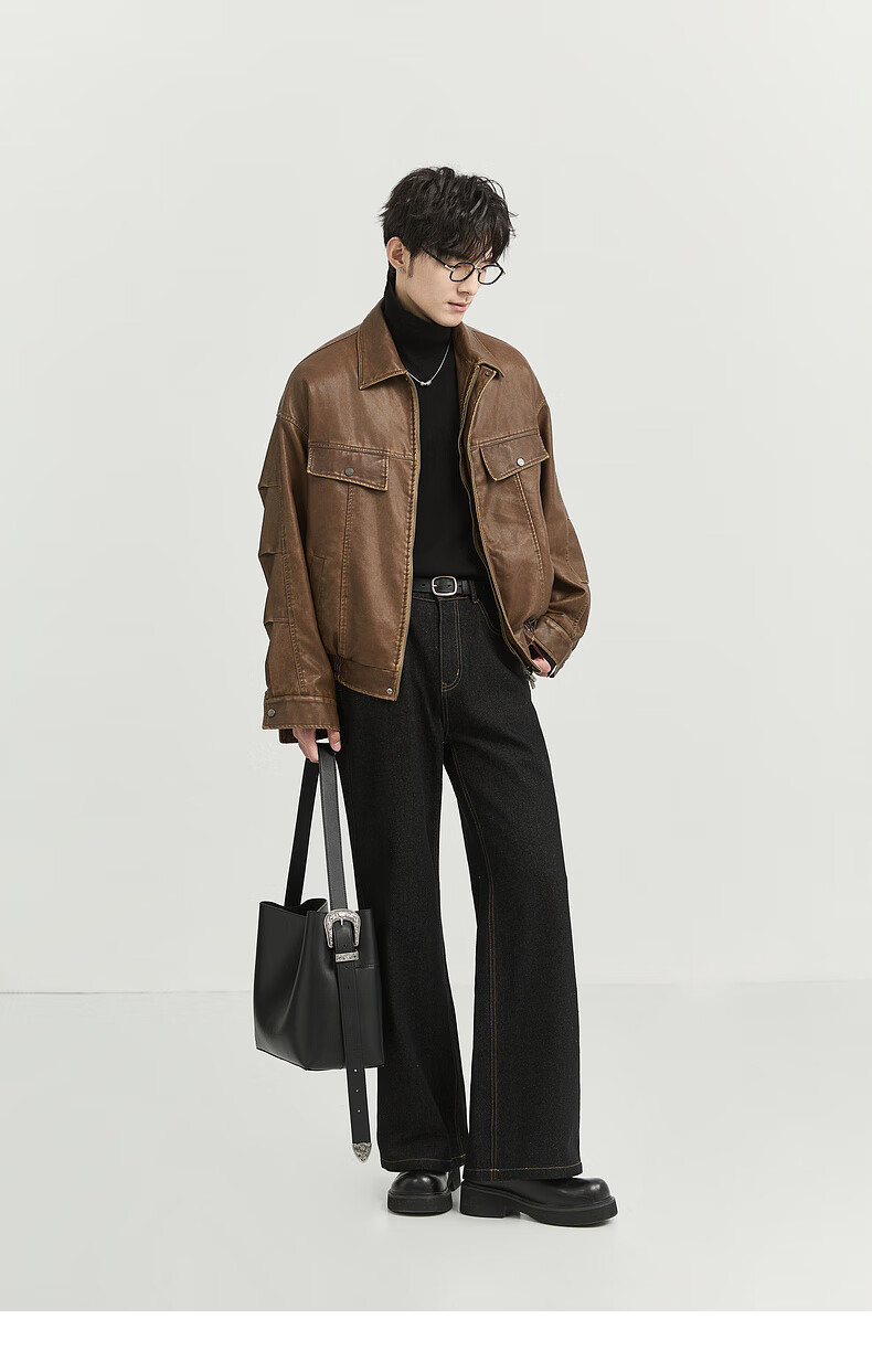 Earl Zall washed and rubbed color cotton PU imitation leather leather jacket men's warm jacket 2024 autumn and winter new style E441658 Root Beer 2XL 185