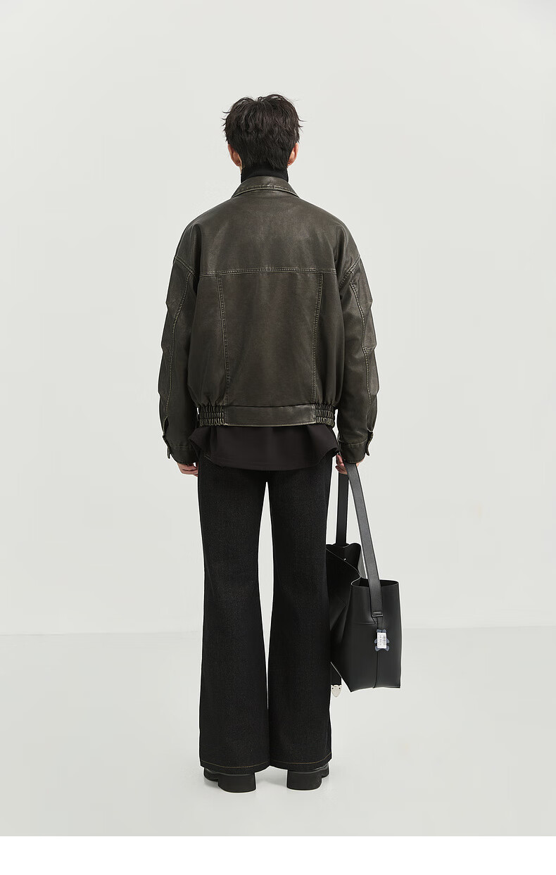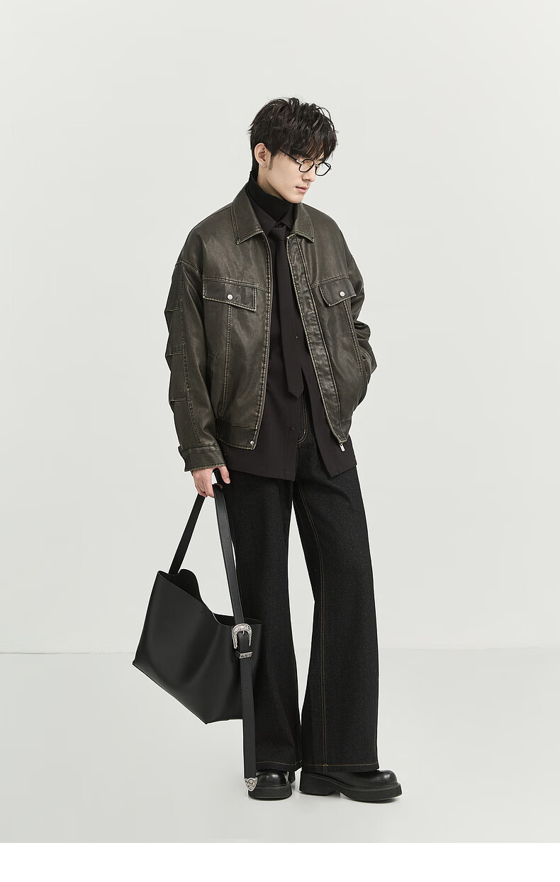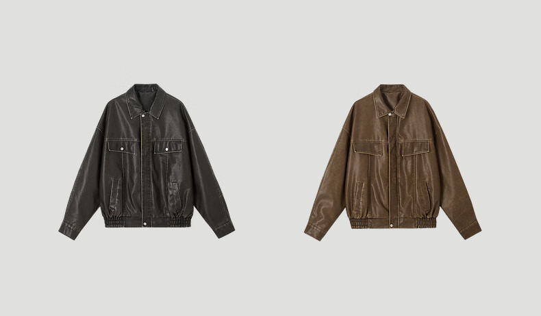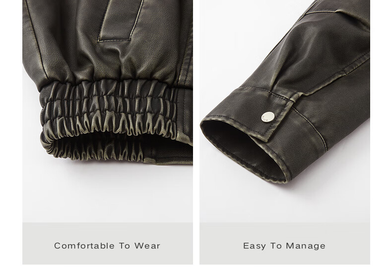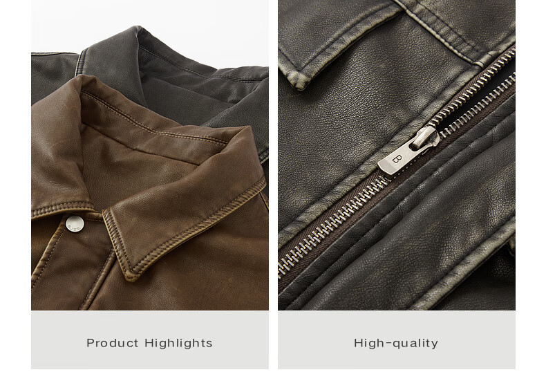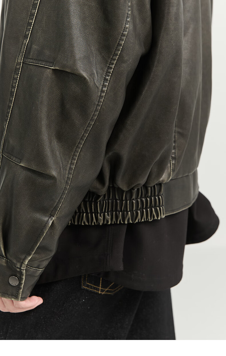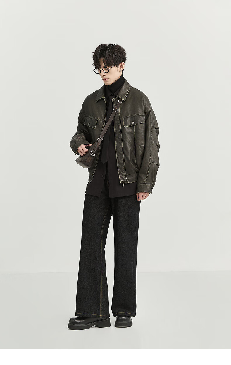 Earl Zall washed and rubbed color cotton PU imitation leather leather jacket men's warm jacket 2024 autumn and winter new style E441658 Root Beer 2XL 185