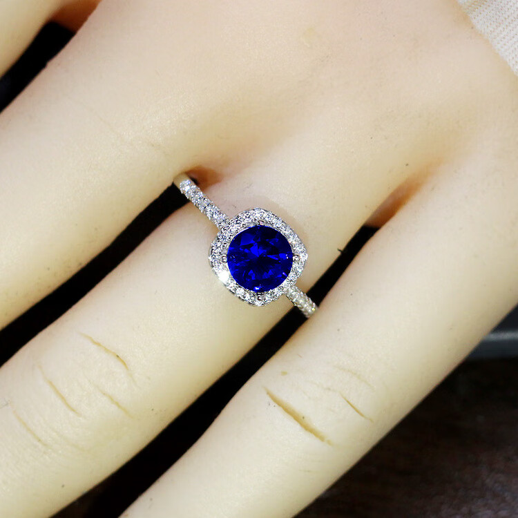 Qian Junfang full of diamond tanzanite sapphire jewelry set three-piece women's 1 carat ring necklace ring 1 carat/6.5mm live mouth