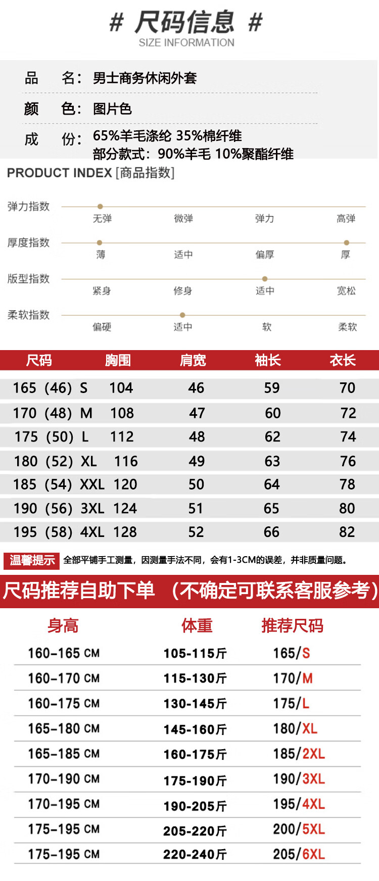 China (cm) 165 / 88-90 170 / 96-98 175 / 108-110 180 / 118-122 185 / 126-130