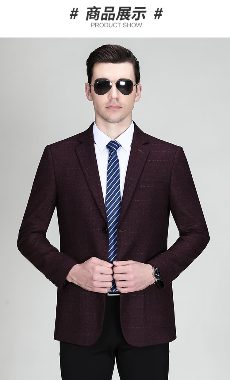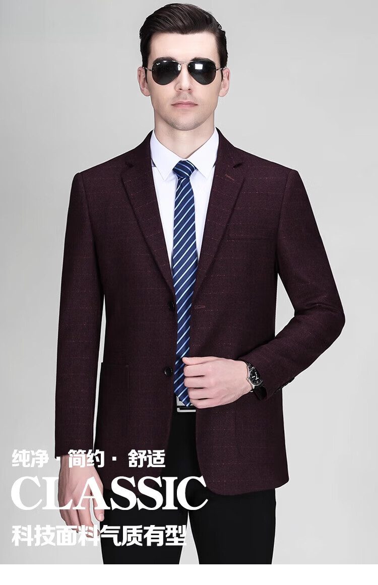 Pierre Cardin (pierre cardin) men's suit jacket spring and autumn new style middle-aged and elderly single suit business casual suit dad's outerwear versatile and trendy /362019-746/ - Burgundy 170/48