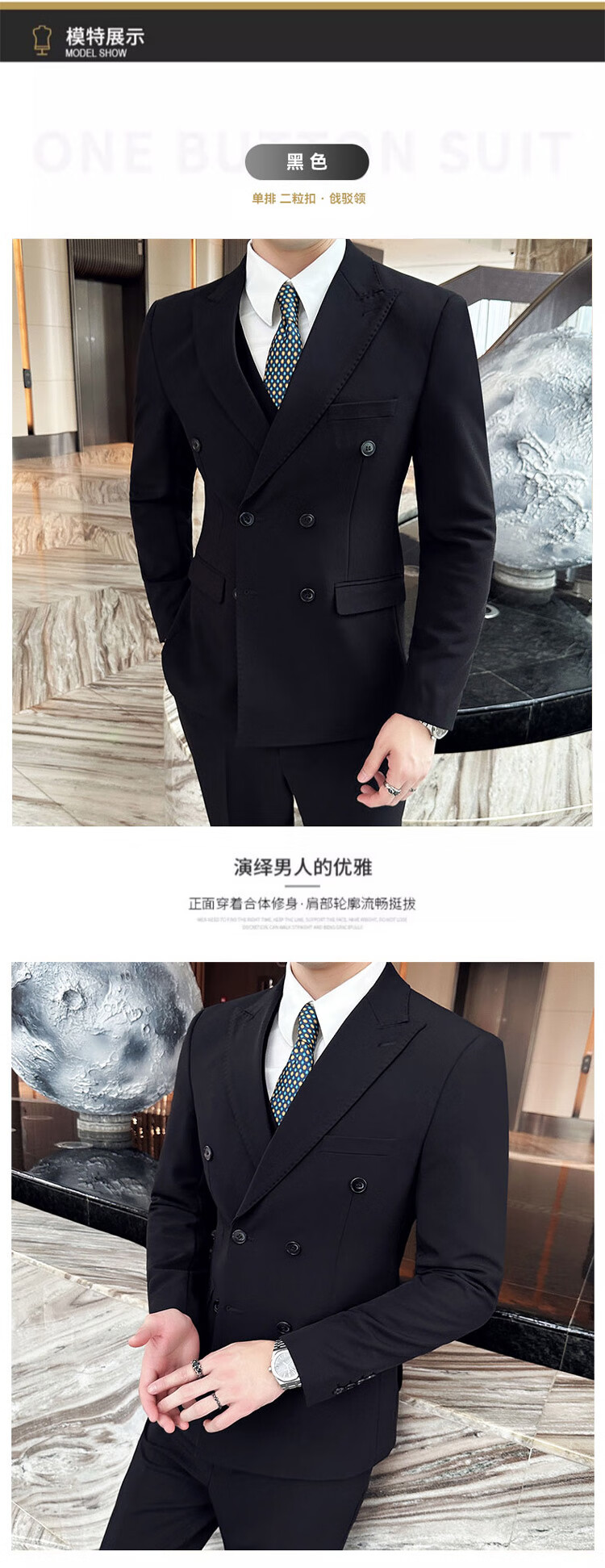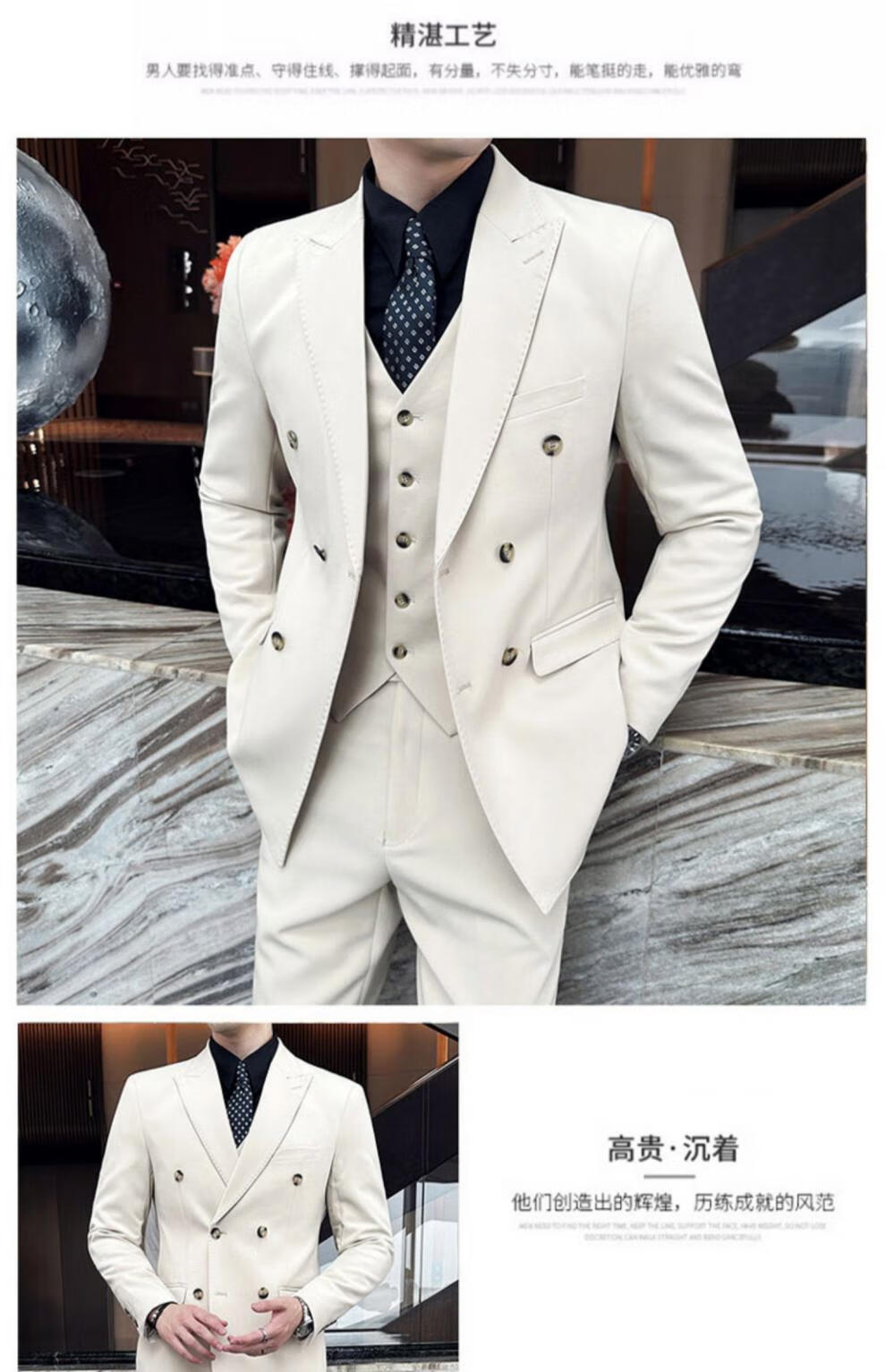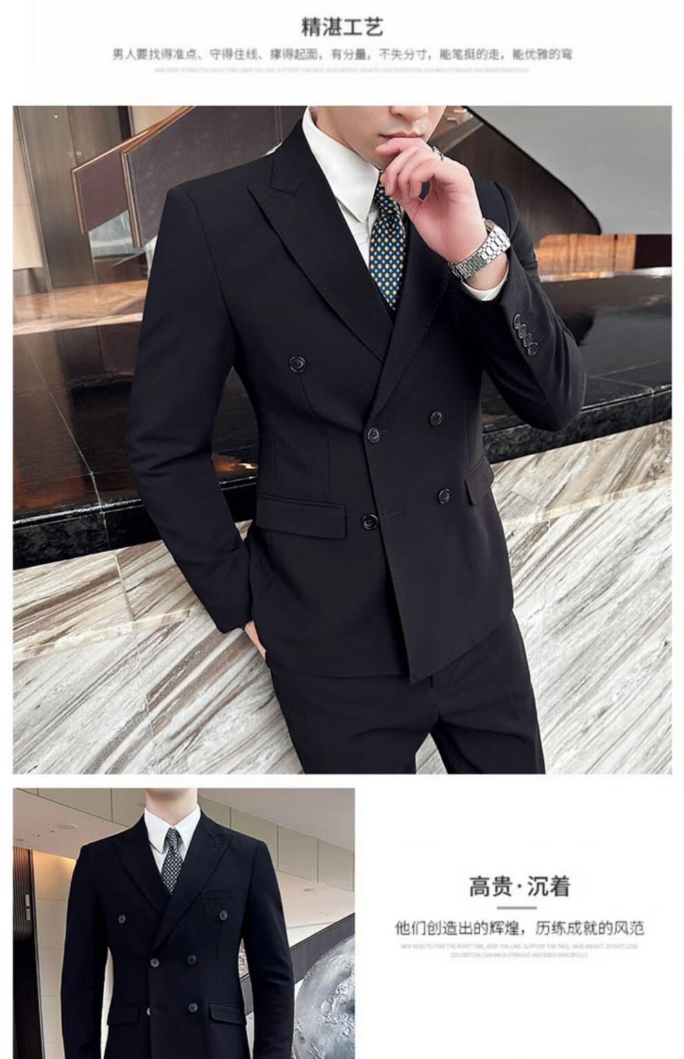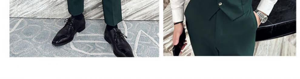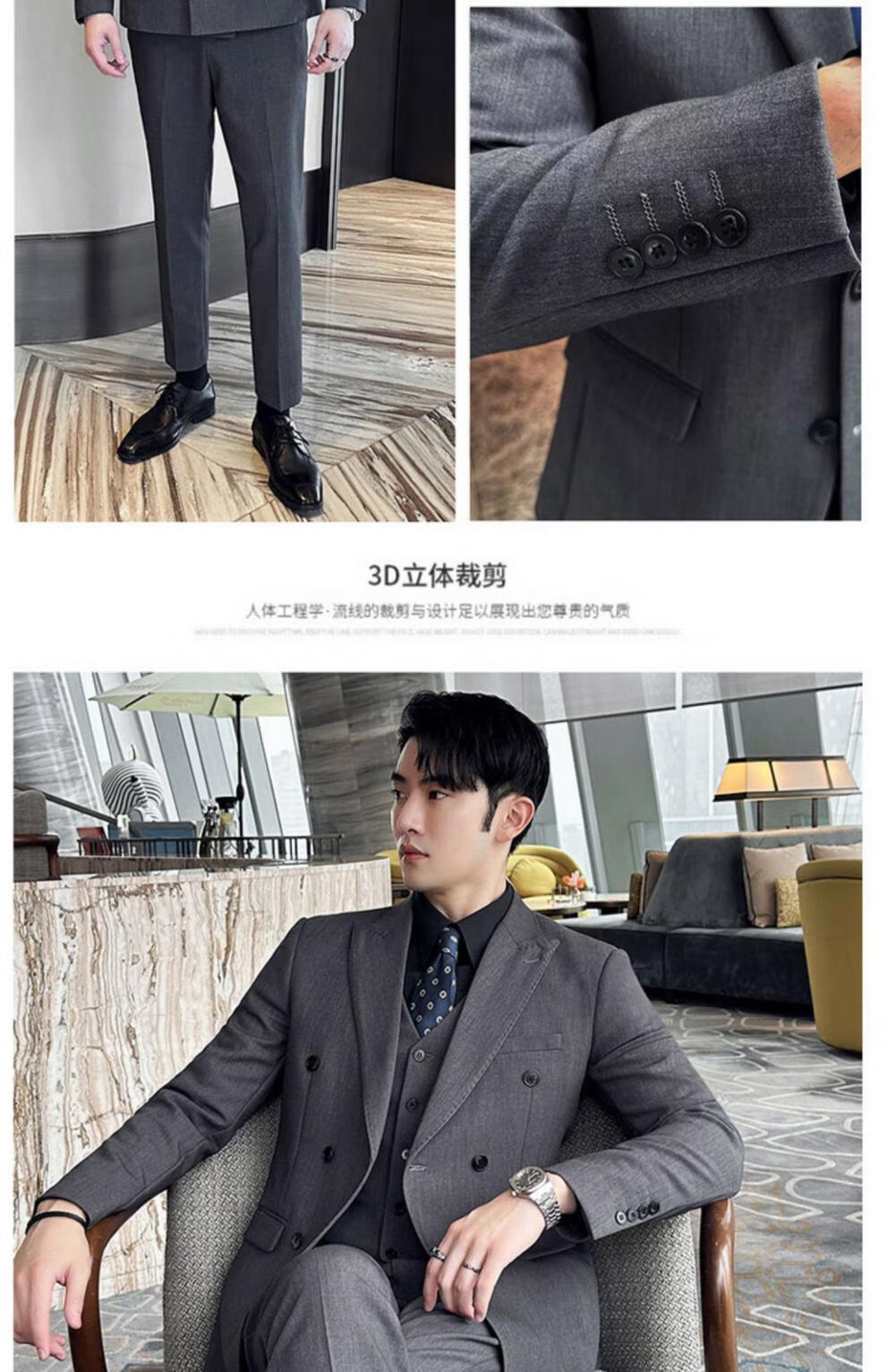 ROMON dark green suit men's suit groom double-breasted suit men's casual slim wedding dress peaked lapel dark green (suit + pants) tie M