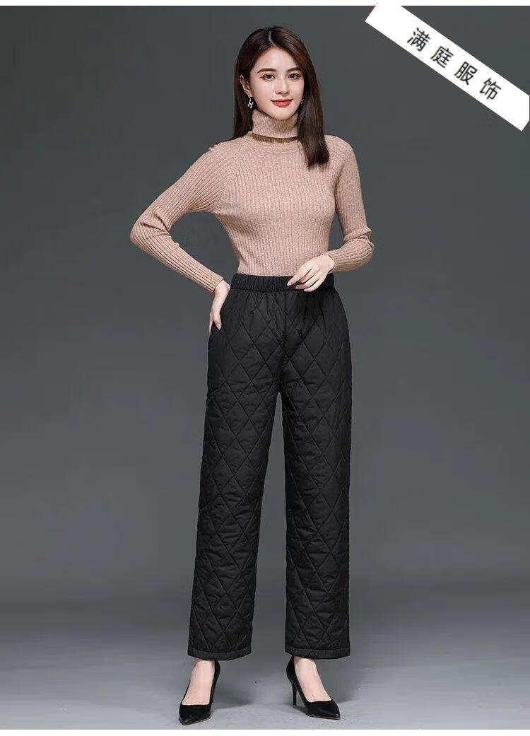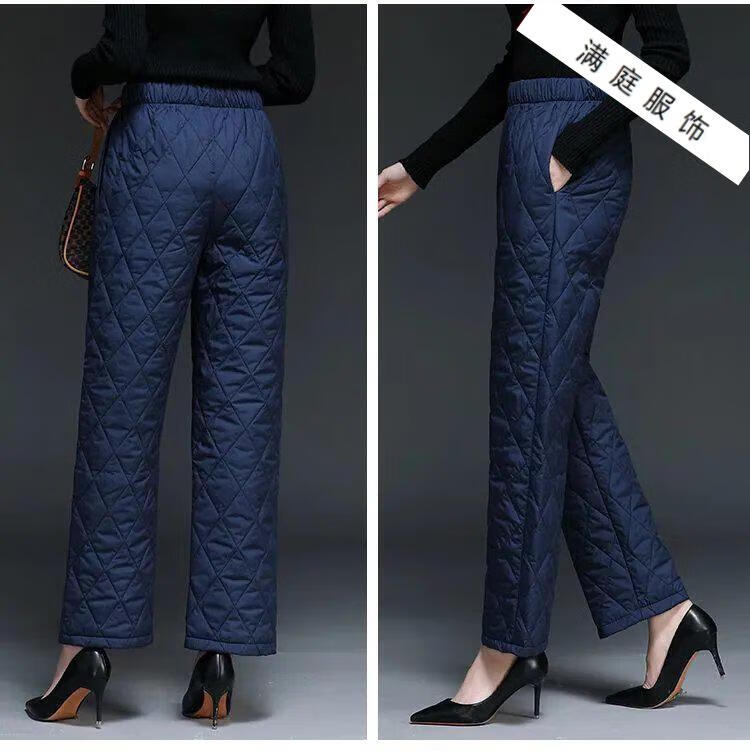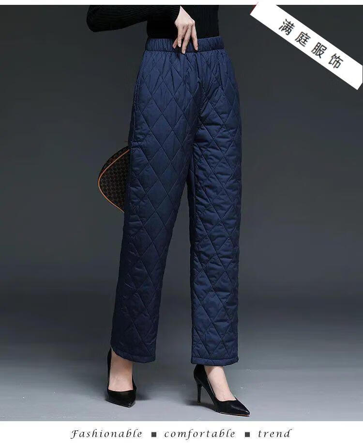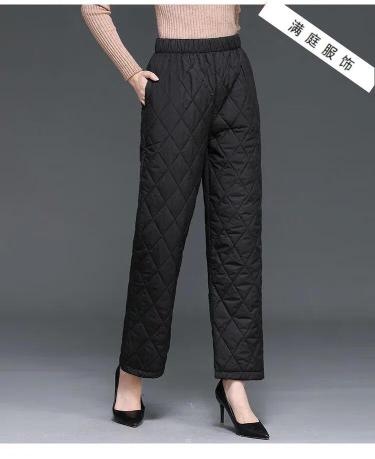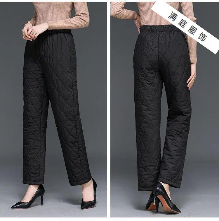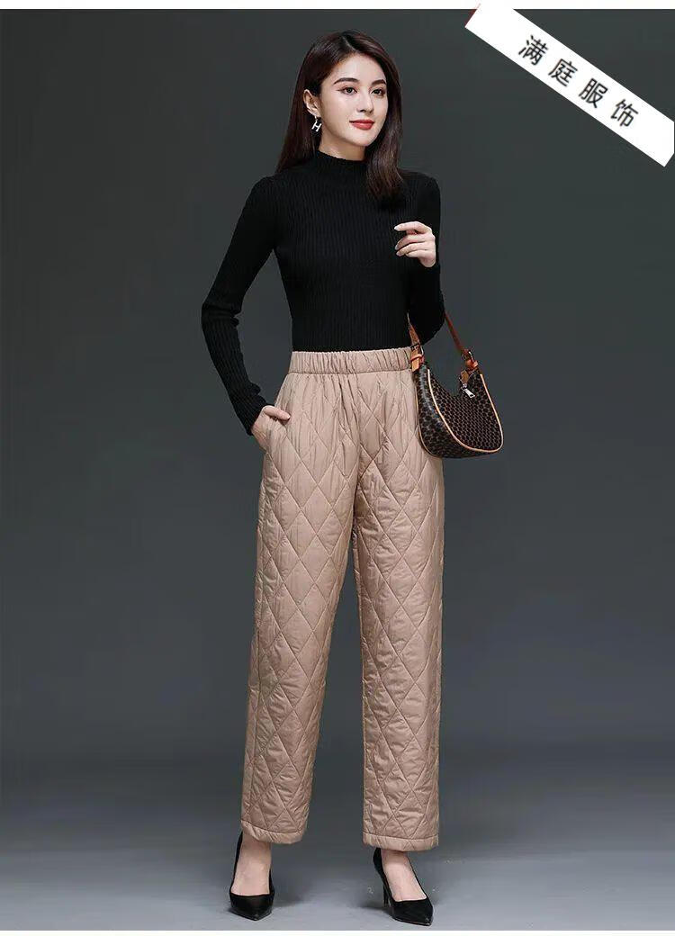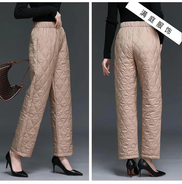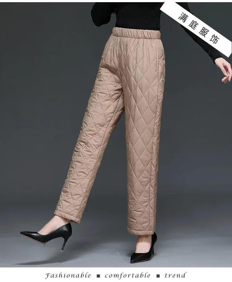 Pierre Cardin 2024 Winter Down Cotton Pants Women's Thickened Middle-aged and Elderly Loose Outerwear Slim High Waisted Versatile Straight Leg Mom Pants Khaki XL 115-130Jin Jin is equal to 0.5 kg