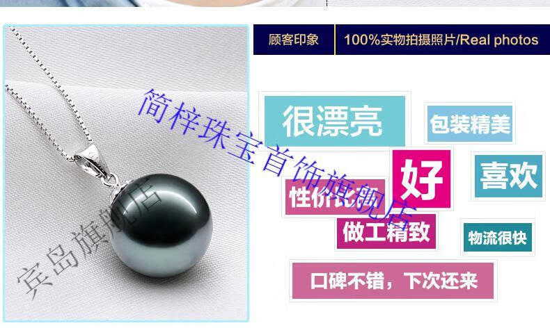 Qian Jun Chinese Valentine's Day Black Pearl Tahitian Black Pearl Pendant Seawater Pearl Necklace Pendant 12mm White
