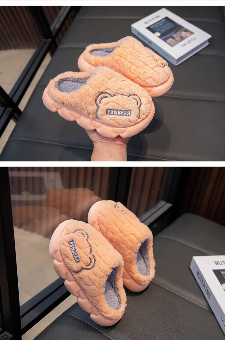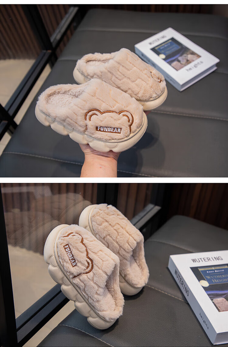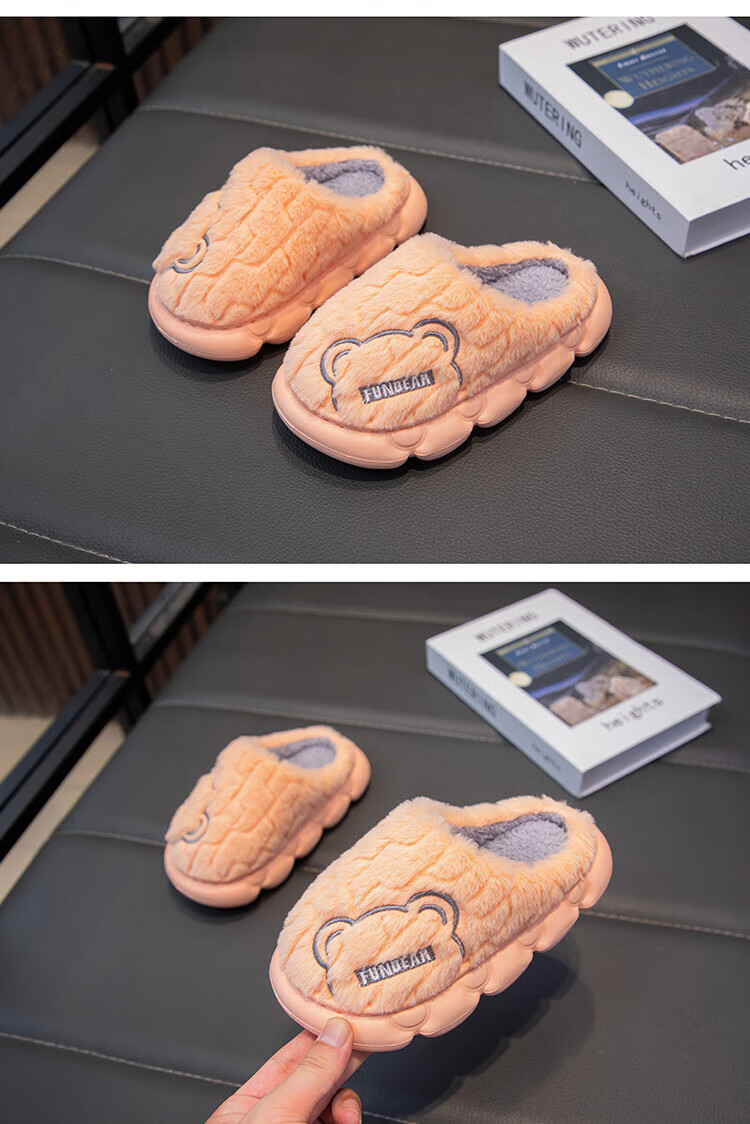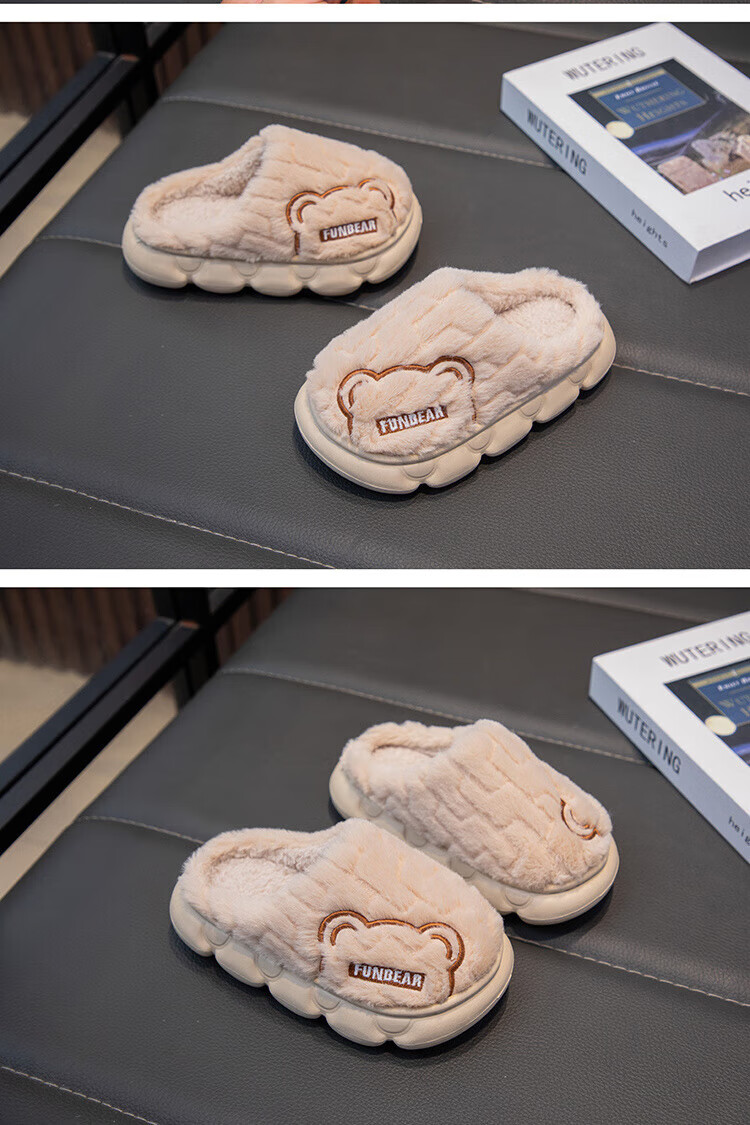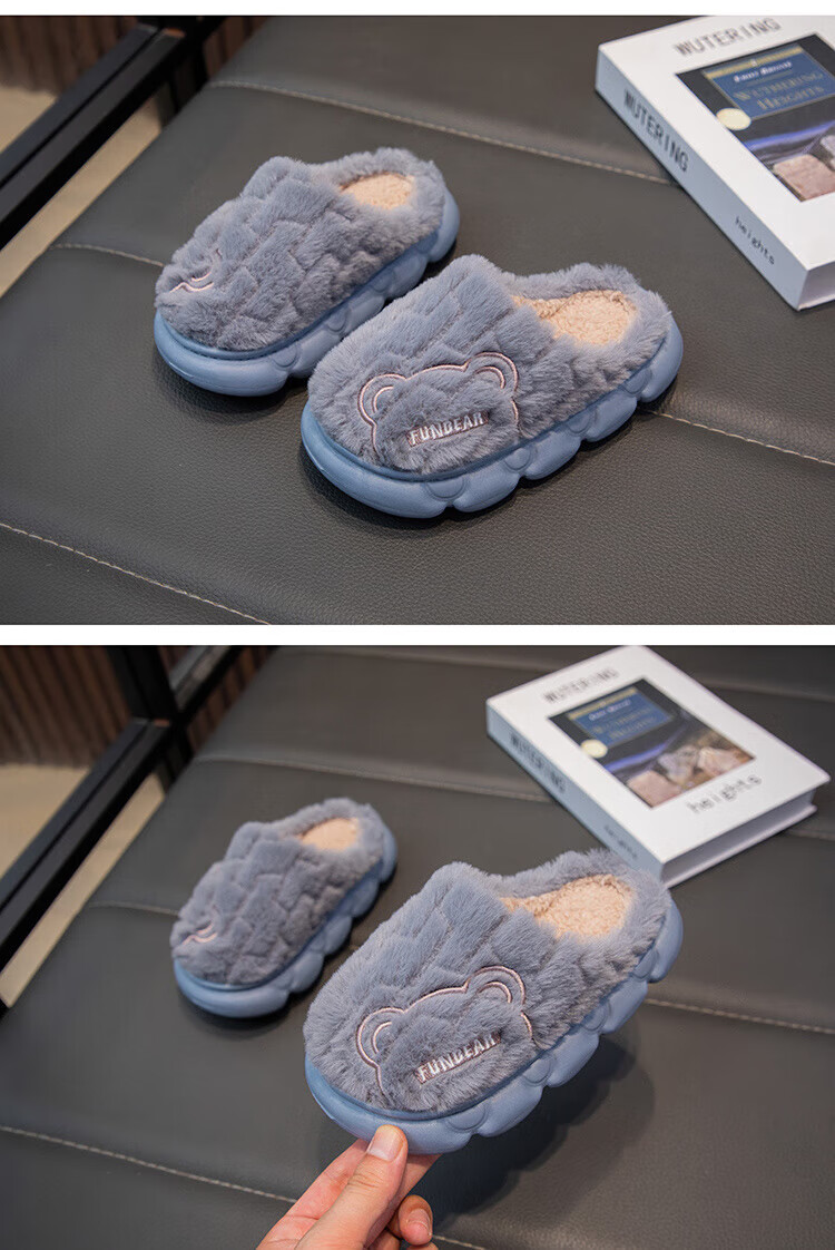 Aya Garden Eagle parent-child winter new cotton slippers for girls, non-slip indoor medium and large children's slippers for boys, soft-soled furry shoes, gray, upgraded and thickened, 21, 35-36 sizes, inner length 21cm