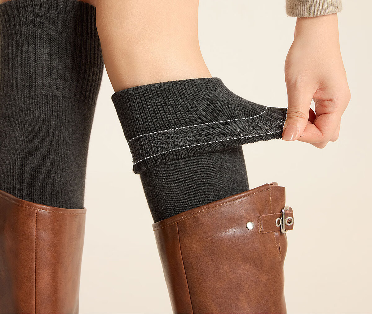 Mianzhuwu over-the-knee stockings for women in autumn and winter, anti-slip and warm, knee-protecting thigh socks, slimming legs, spring and autumn style, black and white high socks, dark gray + black, 2 pairs, one size fits all, 35-39, non-slip and warm