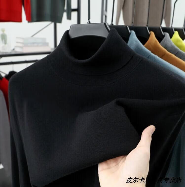Pierre Cardin high-end 100% pure cashmere sweater for men 2025 winter new thickened warm turtleneck cashmere bottoming sweater for men black L recommended 115-130Jin Jin equals 0.5 kg.