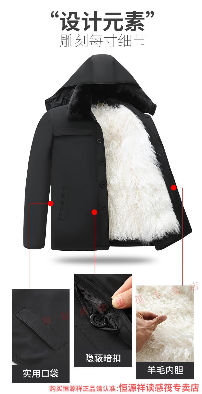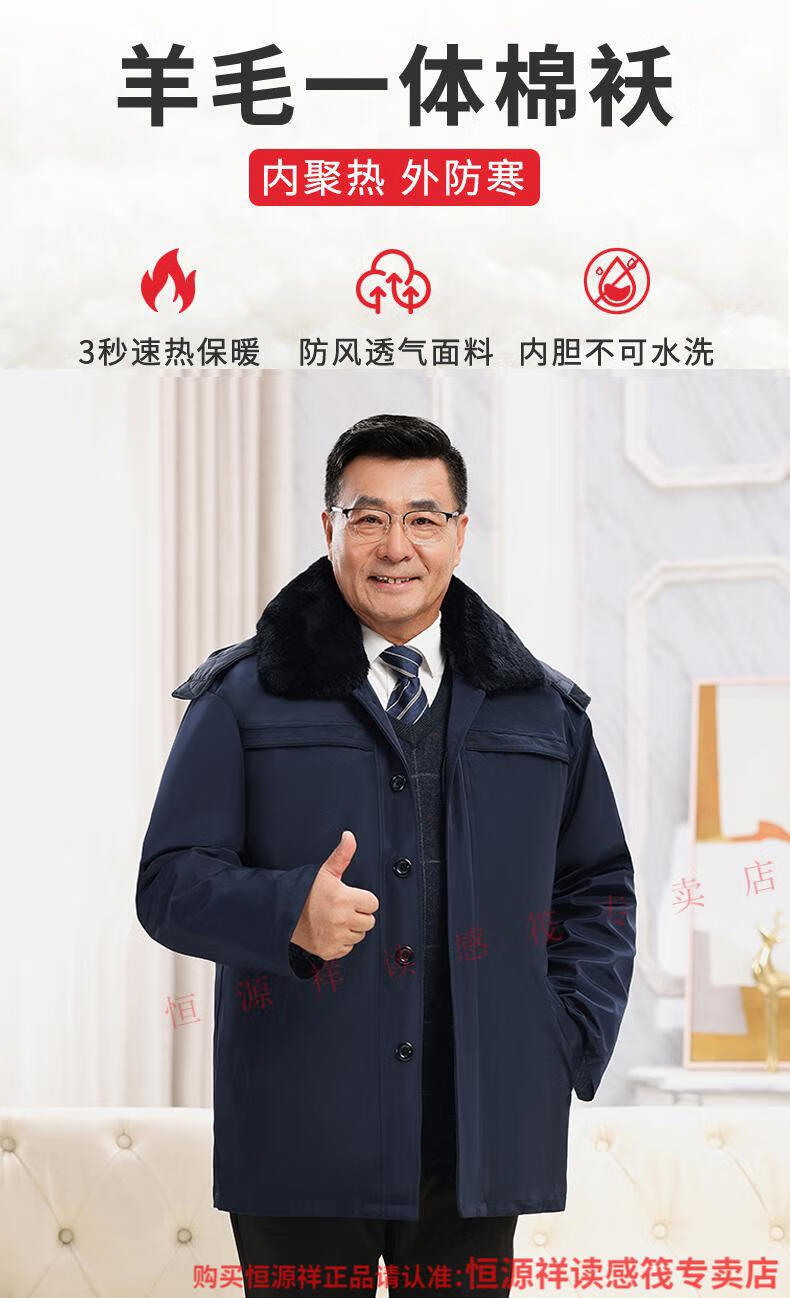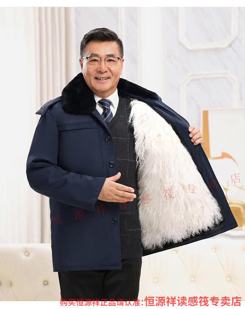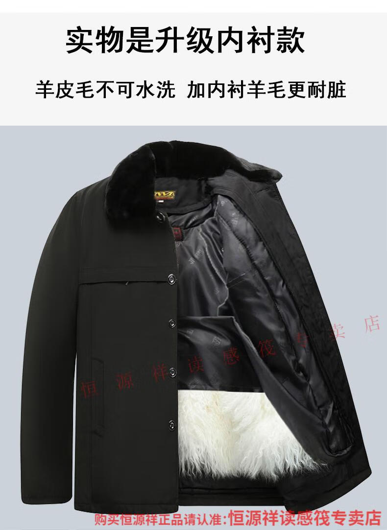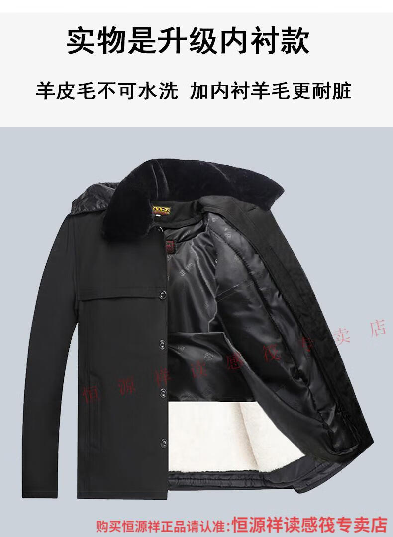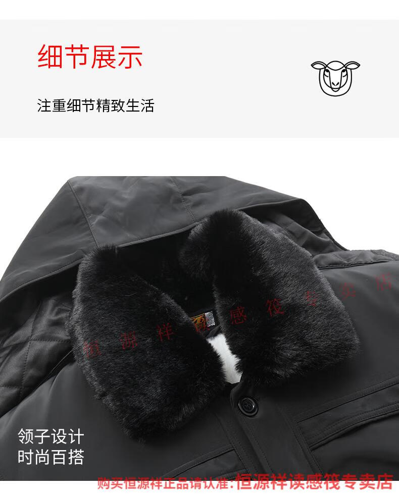 Hengyuanxiang wool and fur all-in-one cotton jacket for men, Northeastern sheepskin jacket, thickened cotton jacket, winter cotton jacket for middle-aged and elderly people, Australian long wool with lining, extended sleeves with wool, 2XL recommended 100-130Jin Jin is equal to 0.5 kg
