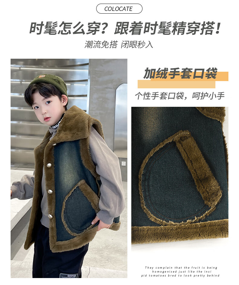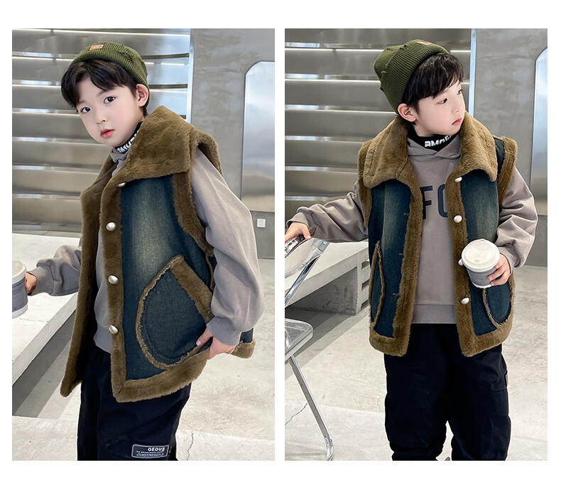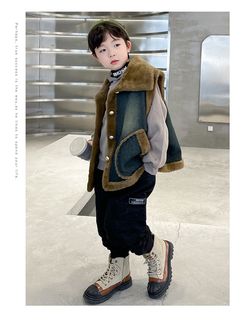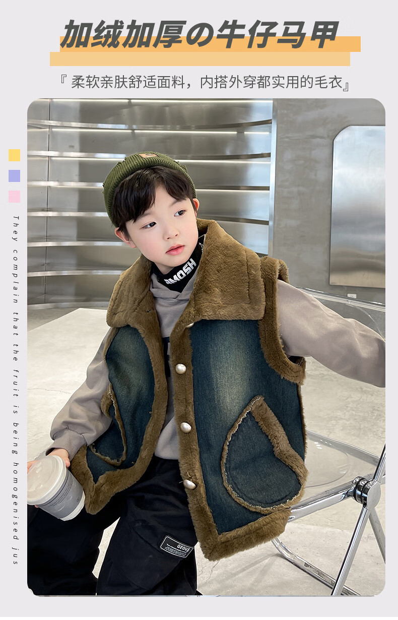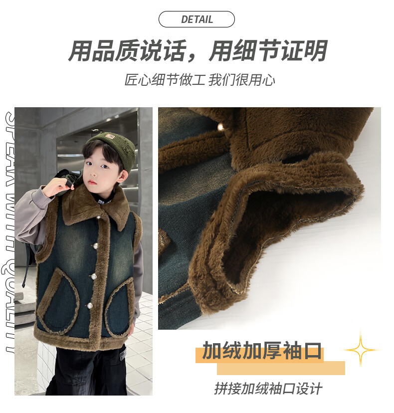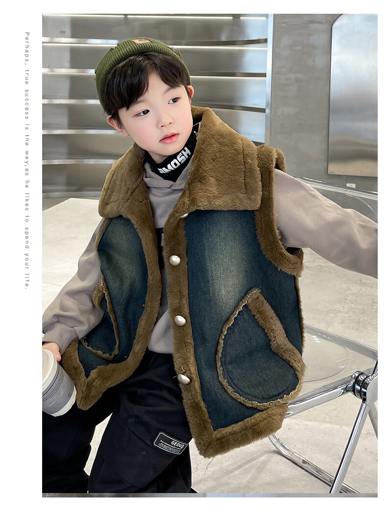 Fairy Tale Classroom Children's Thickened Denim Vest Jacket to Wear 2024 Winter Boys' New Warm Vest for Medium and Large Children Blue 160cm Recommended height is around 145-155cm