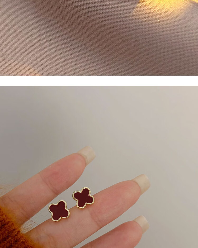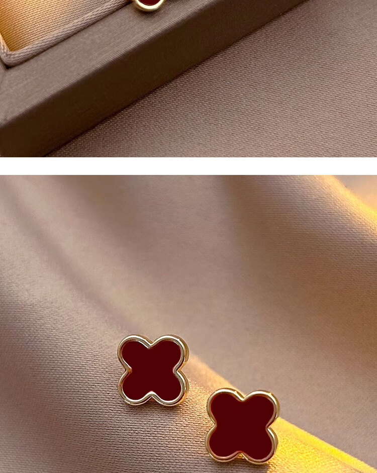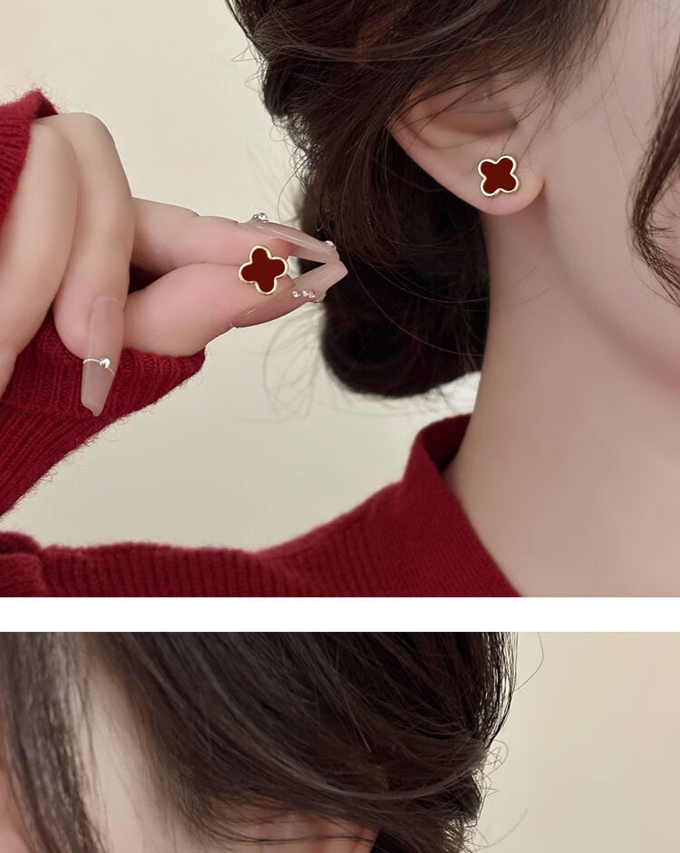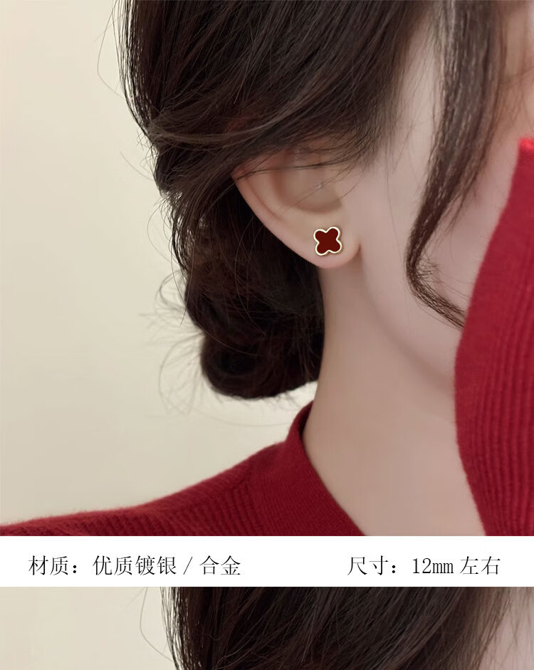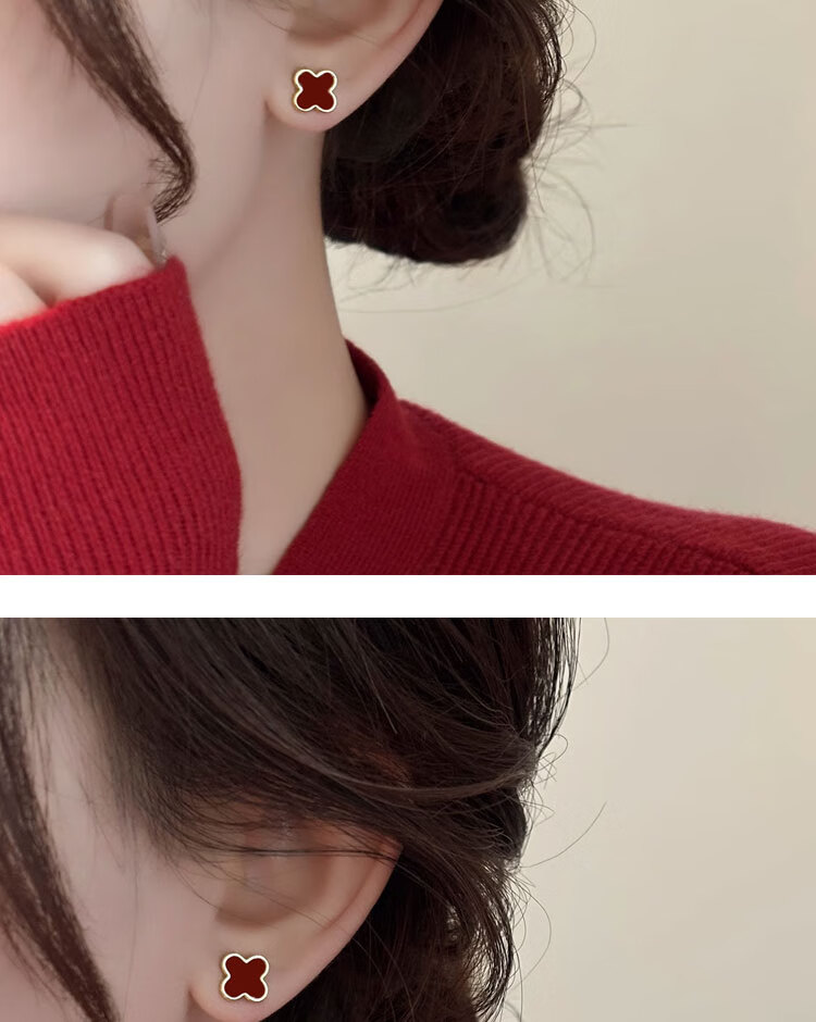 Mansheng Red Four-leaf Clover Earrings Women's Light Luxury High-end Temperament Earrings 2026 New Hot Style Ear Bone Nails as a Gift for Your Girlfriend Red Four-leaf Clover Earrings