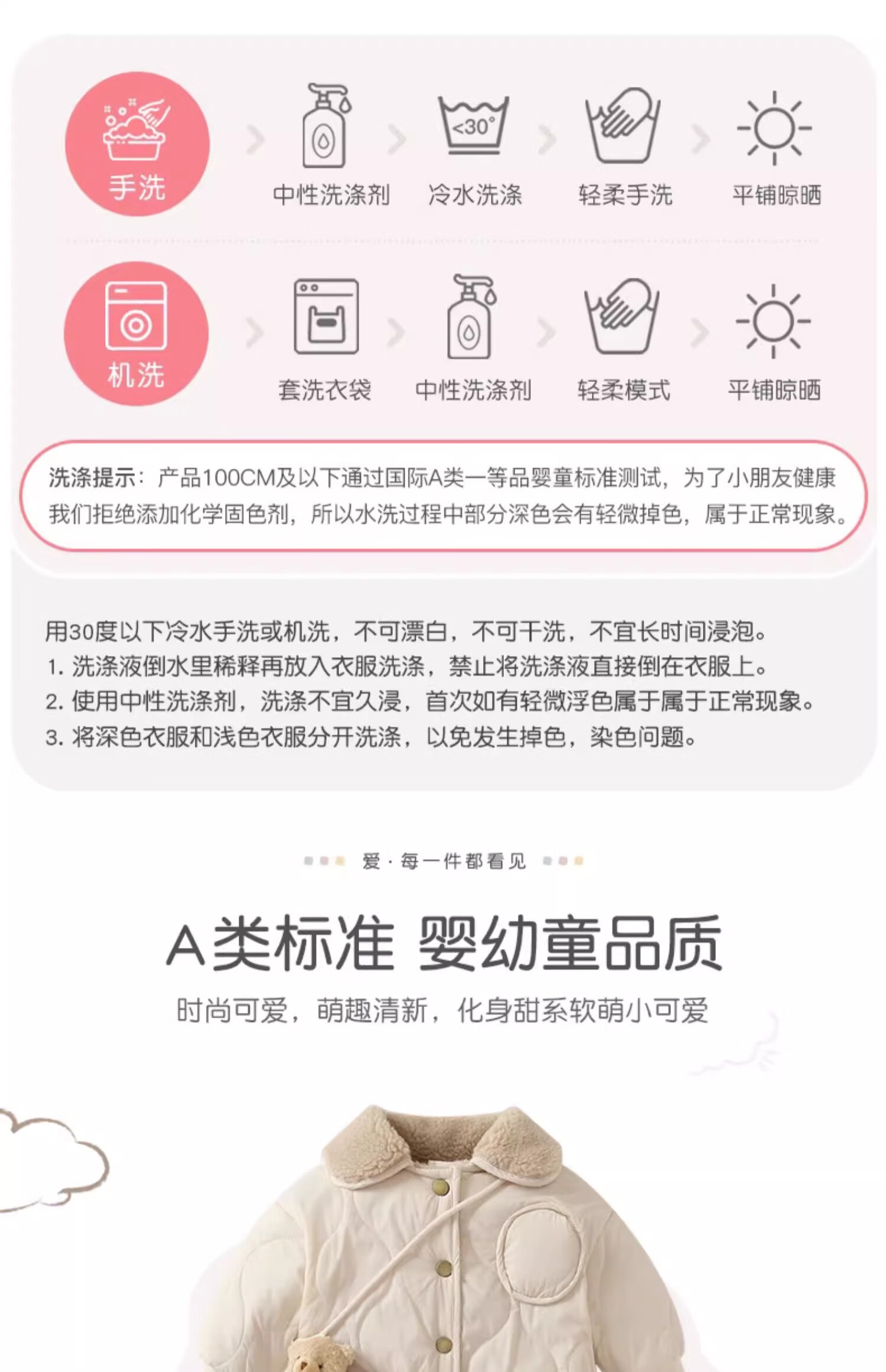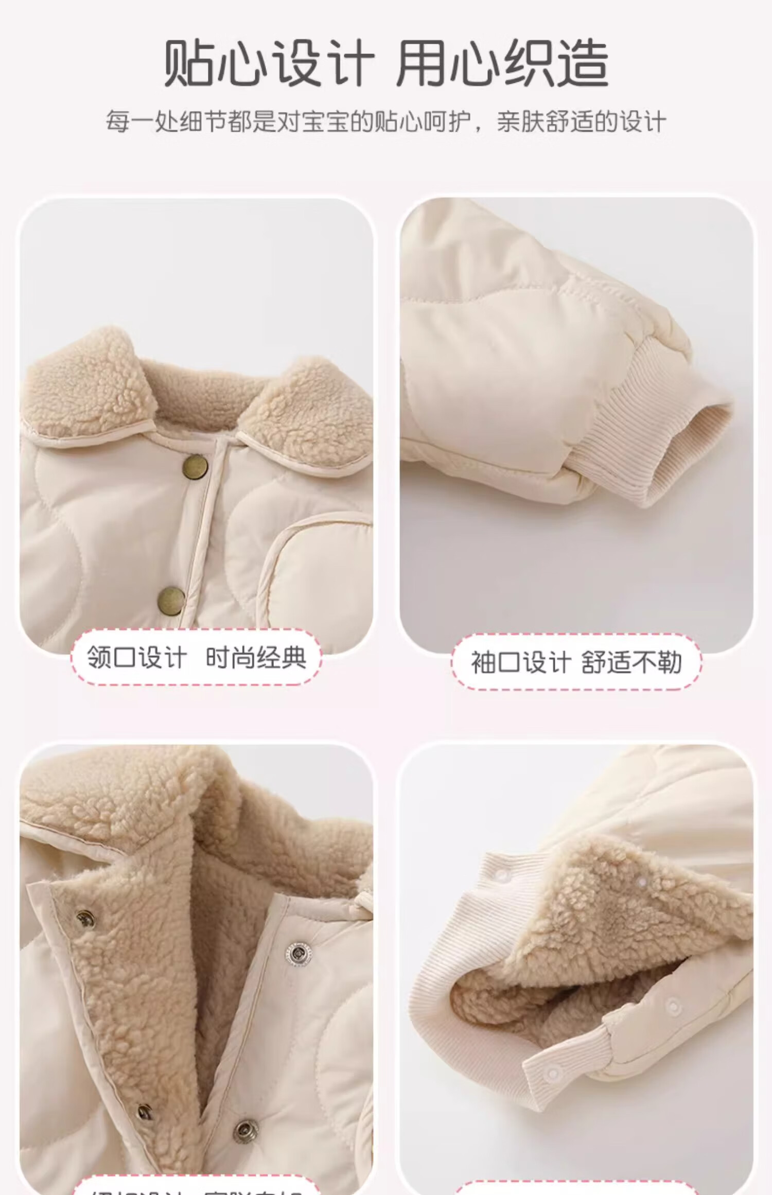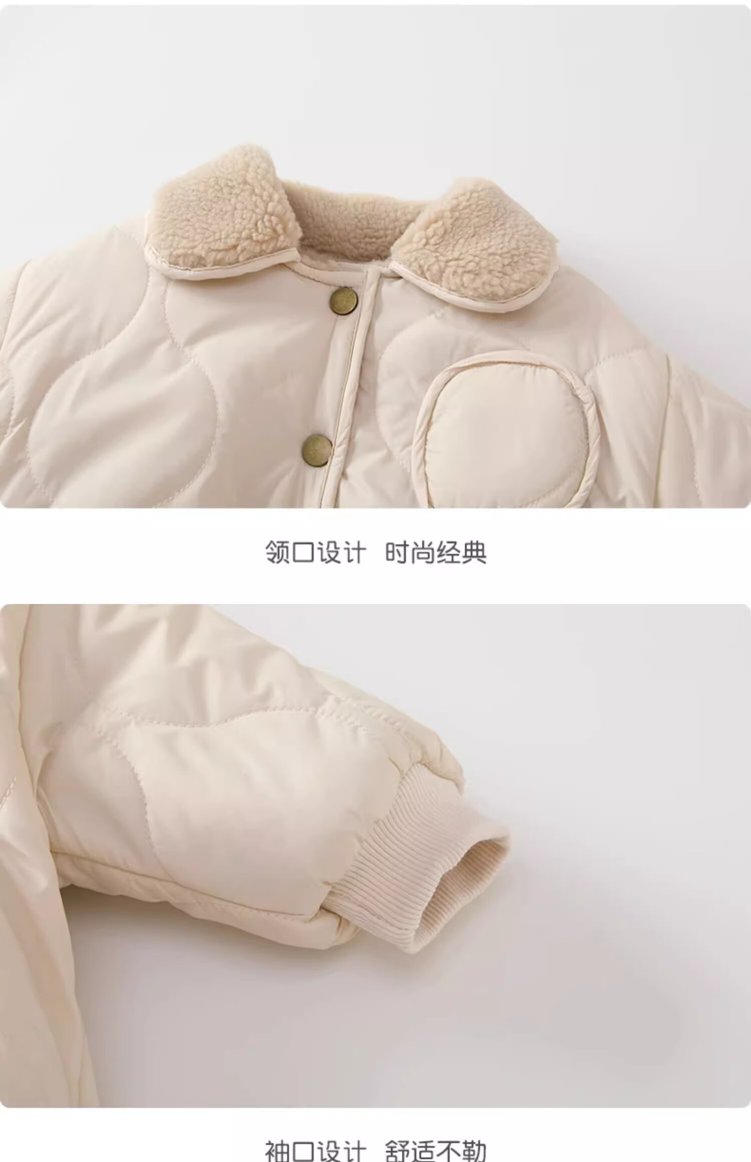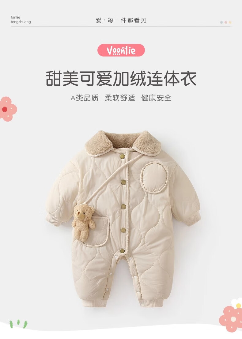 Fanlie baby clothes, winter clothes, newborn boy onesies, full month plus velvet quilted outdoor clothes, winter off-white (without bear accessories) 90cm