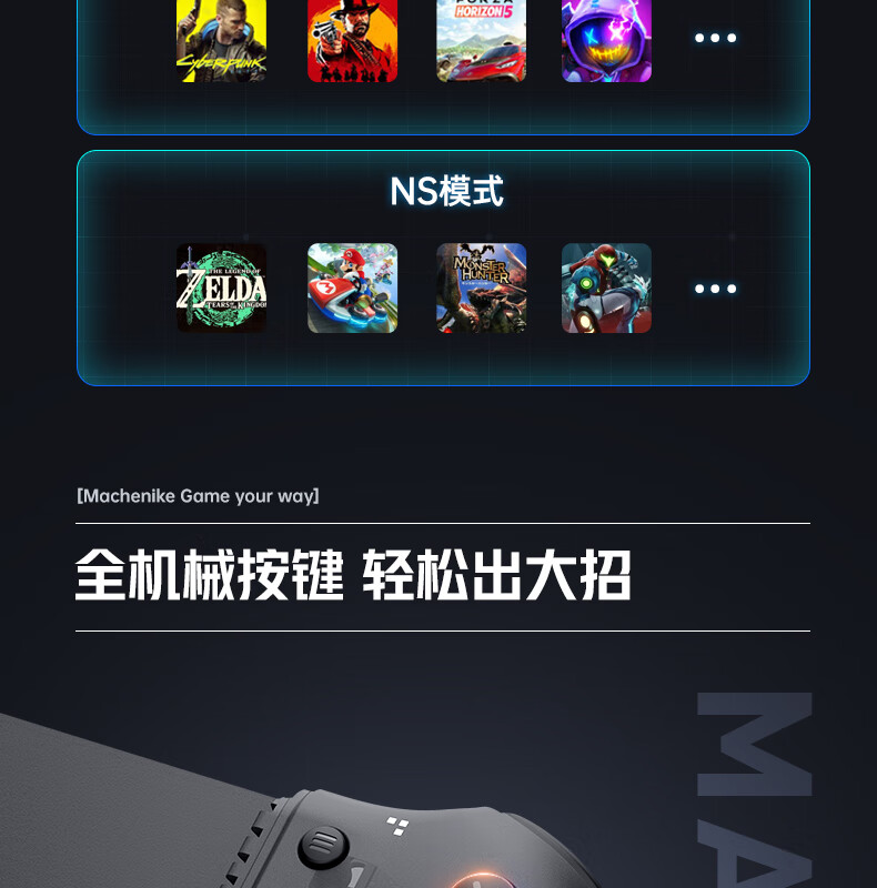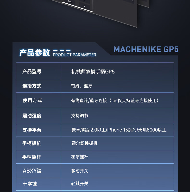 MACHENIKE Dual Mode Game Controller GP5 Black Myth Wukong Controller Bluetooth Wired Controller Somatosensory NS Hall Linear Trigger Switch Computer PC Mobile TV Steam Machenike Dual Mode Game Controller GP5 Gray