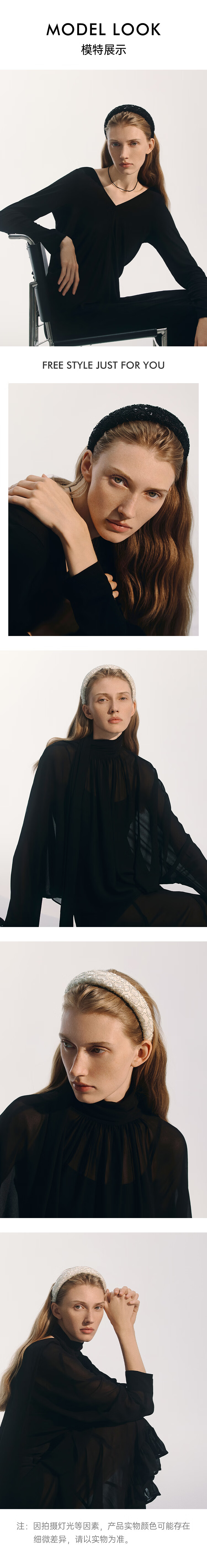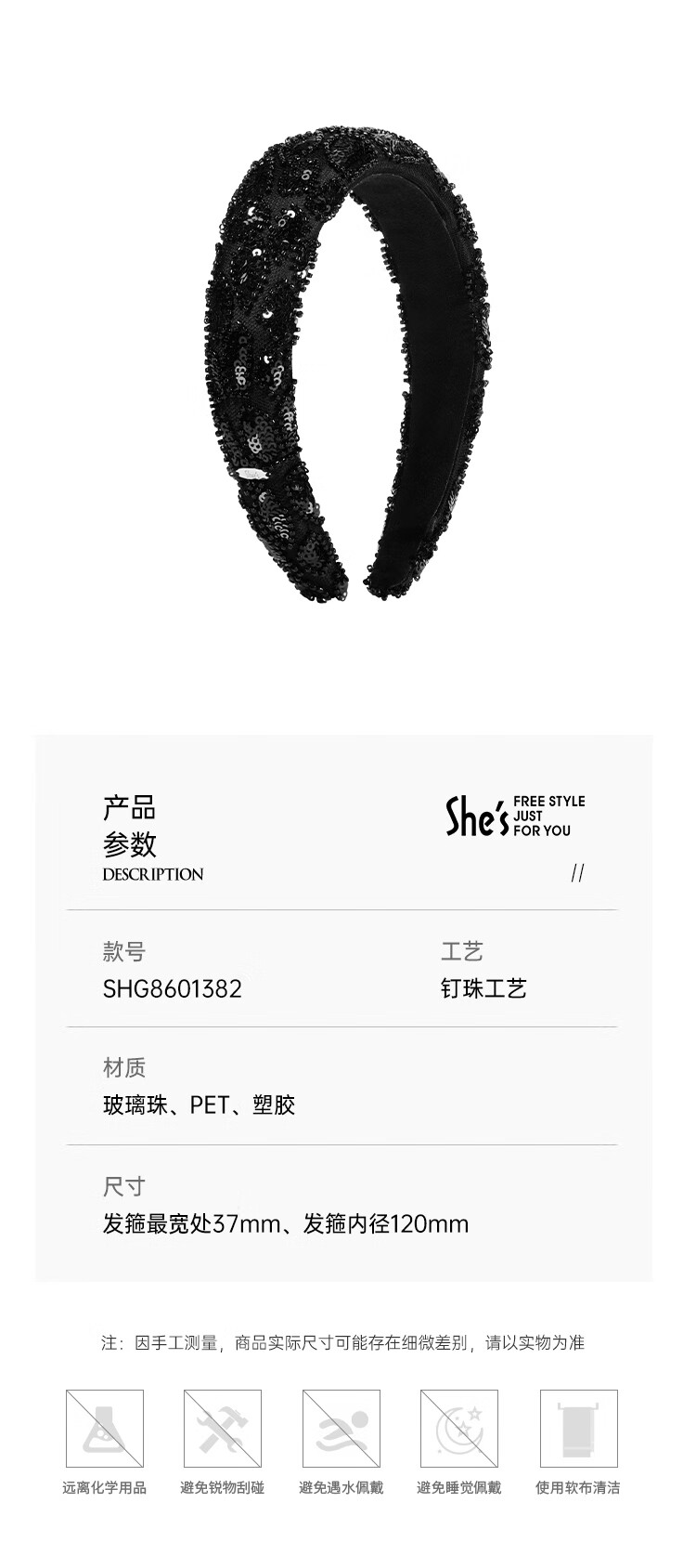 She s Akiko Barbie handmade beaded high skull wide hairband light luxury hairpin headband hair accessories birthday gift for girlfriend black G0