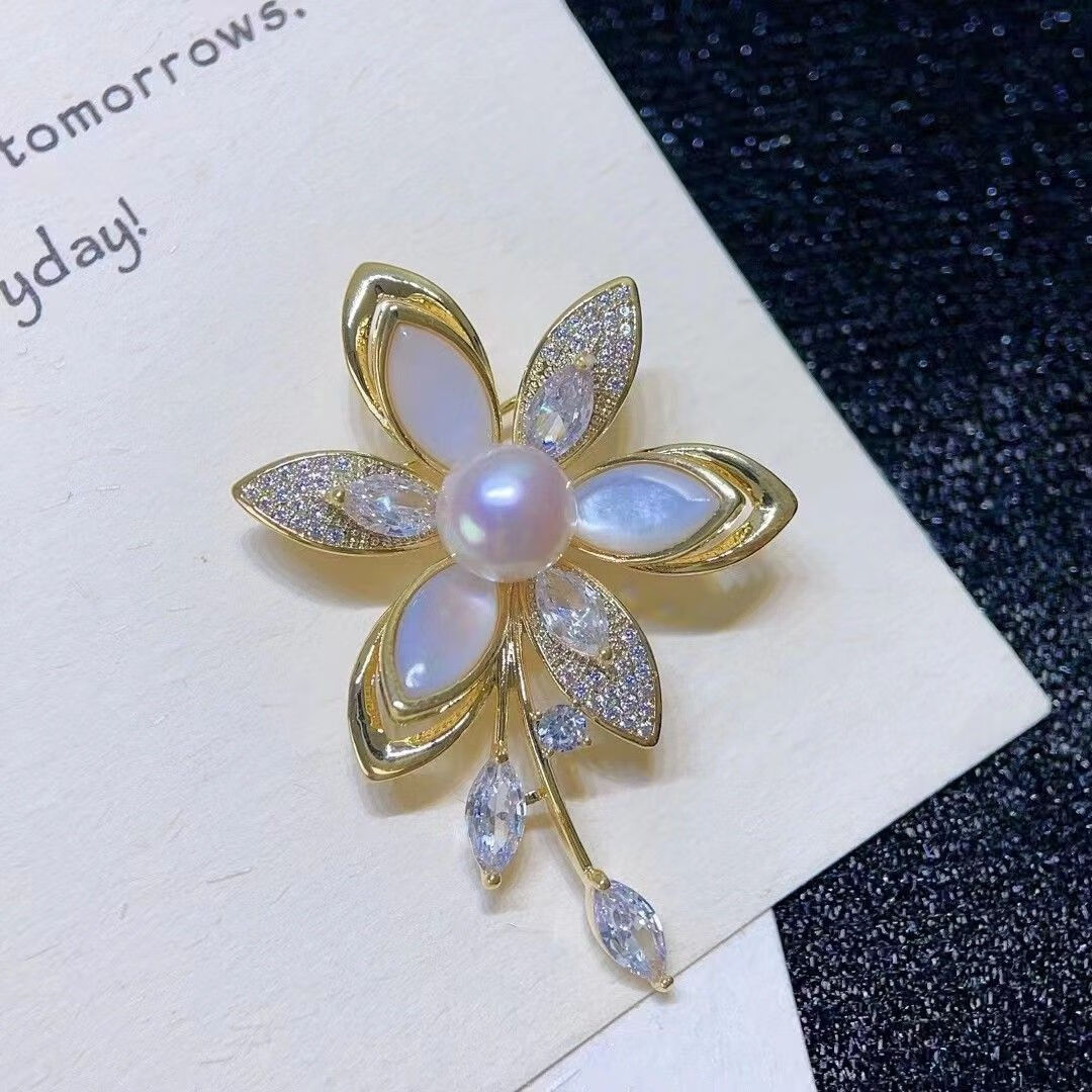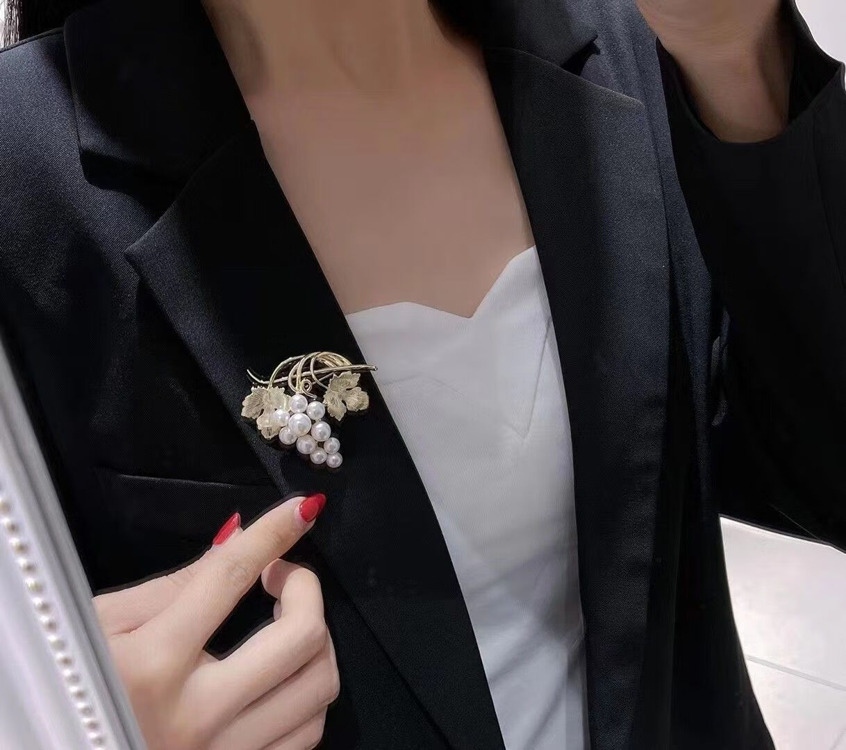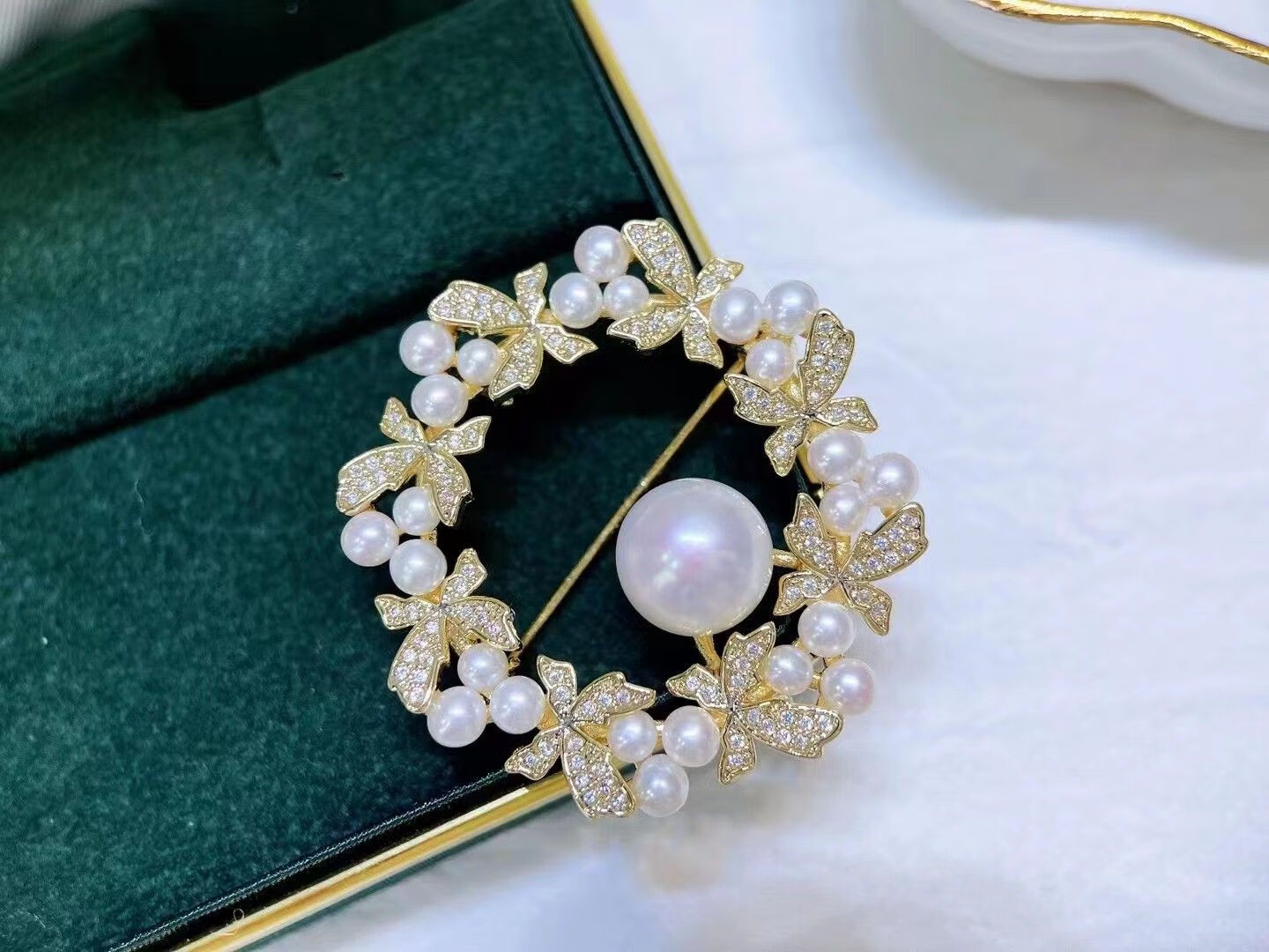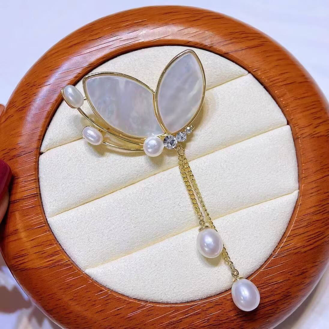 There are 24 types of brooches in the QUAMER gold store, freshwater pearl flower tassels, multi-beads, fashionable and versatile suits for autumn and winter 1