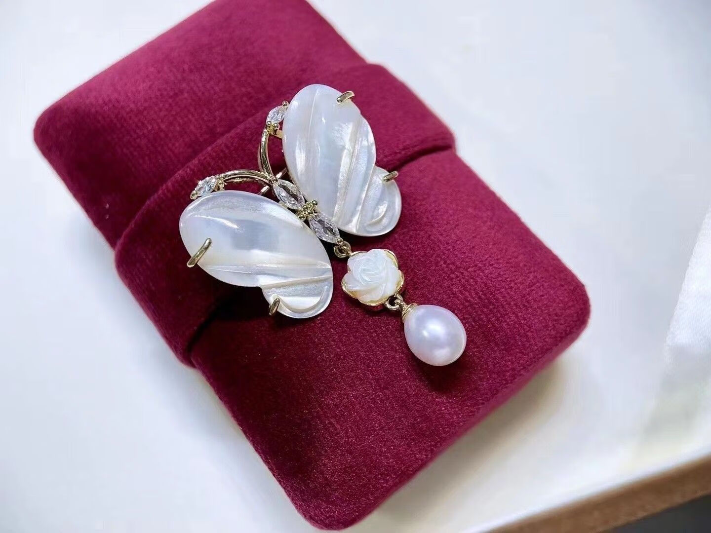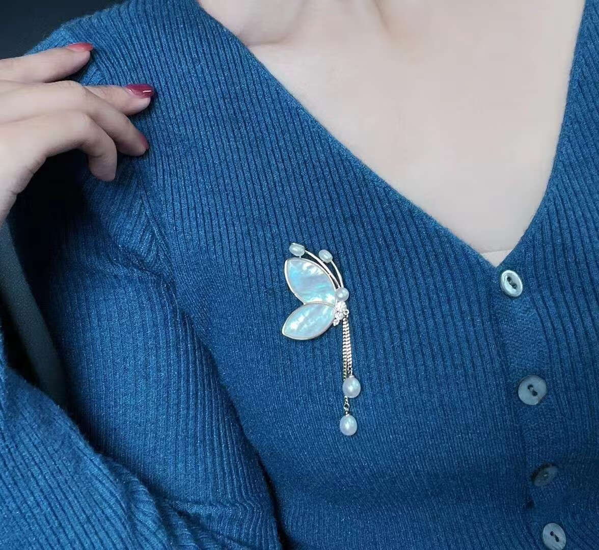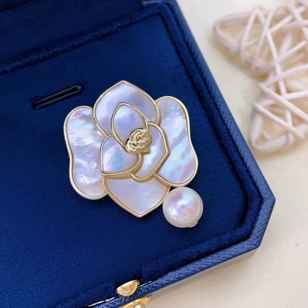 There are 24 types of brooches in the QUAMER gold store, freshwater pearl flower tassels, multi-beads, fashionable and versatile suits for autumn and winter 1