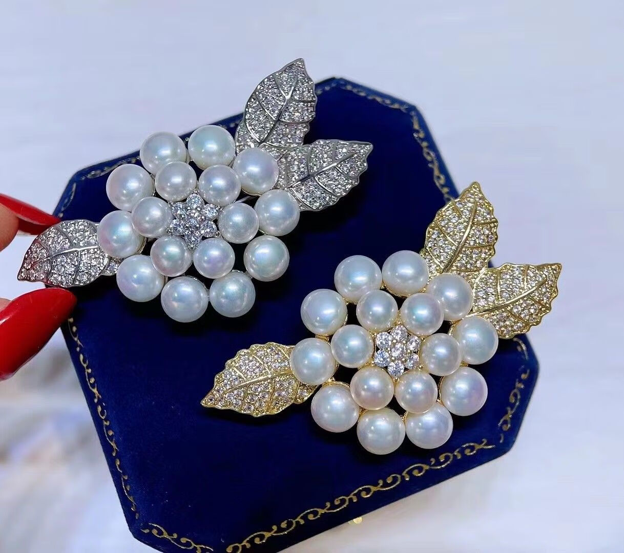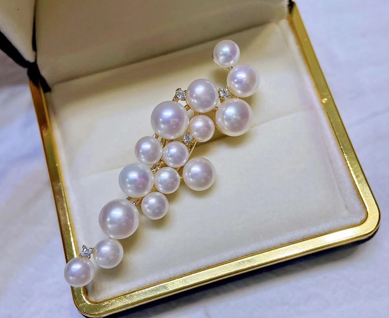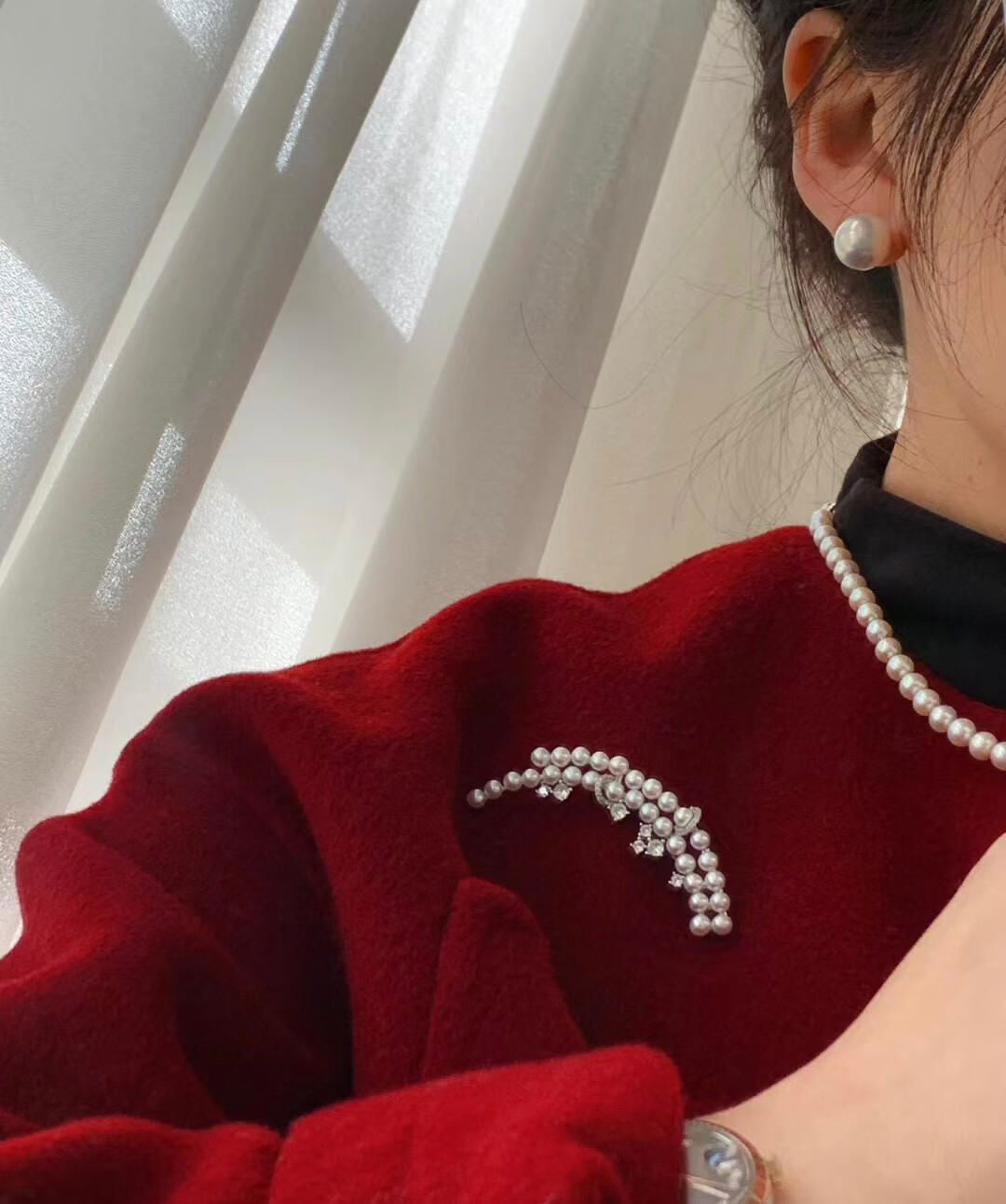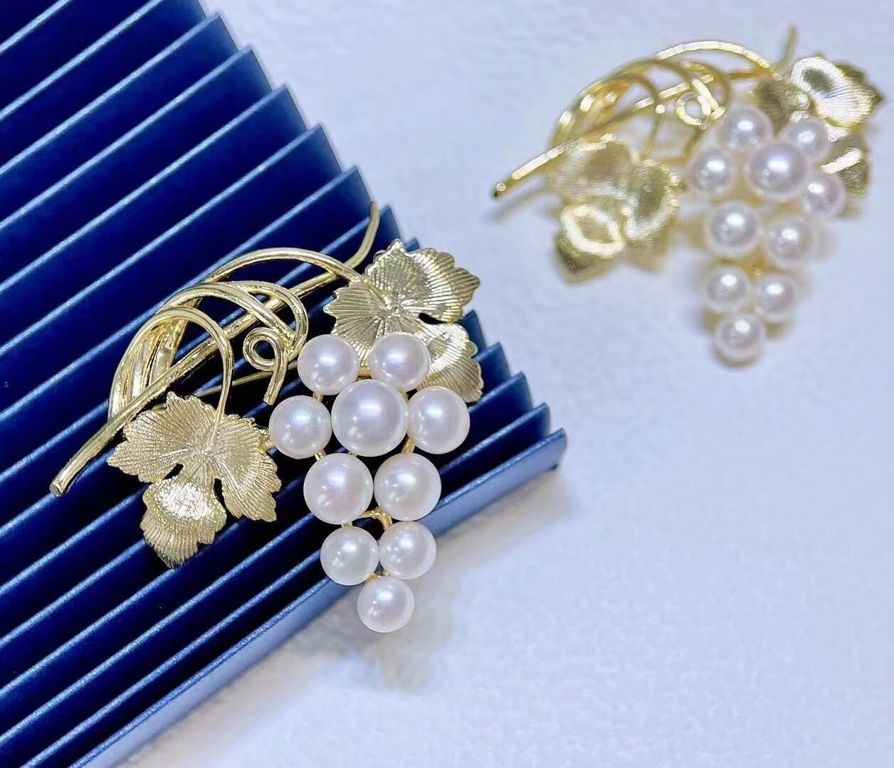 There are 24 types of brooches in the QUAMER gold store, freshwater pearl flower tassels, multi-beads, fashionable and versatile suits for autumn and winter 1