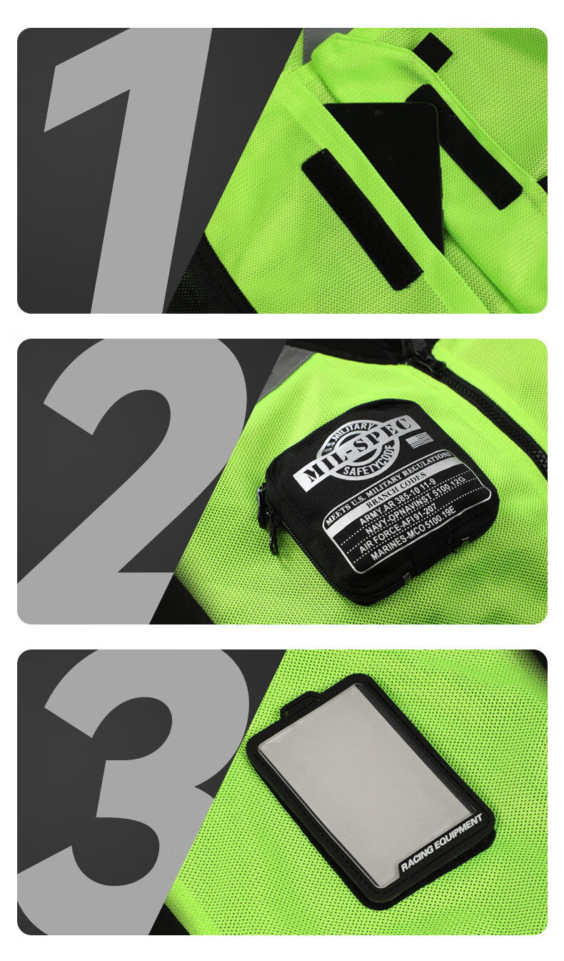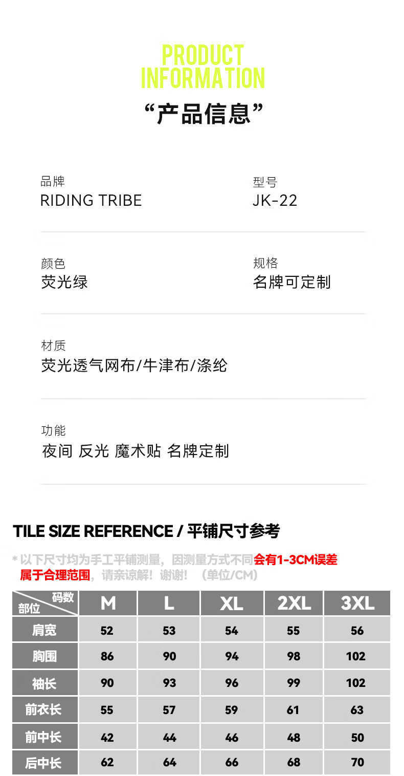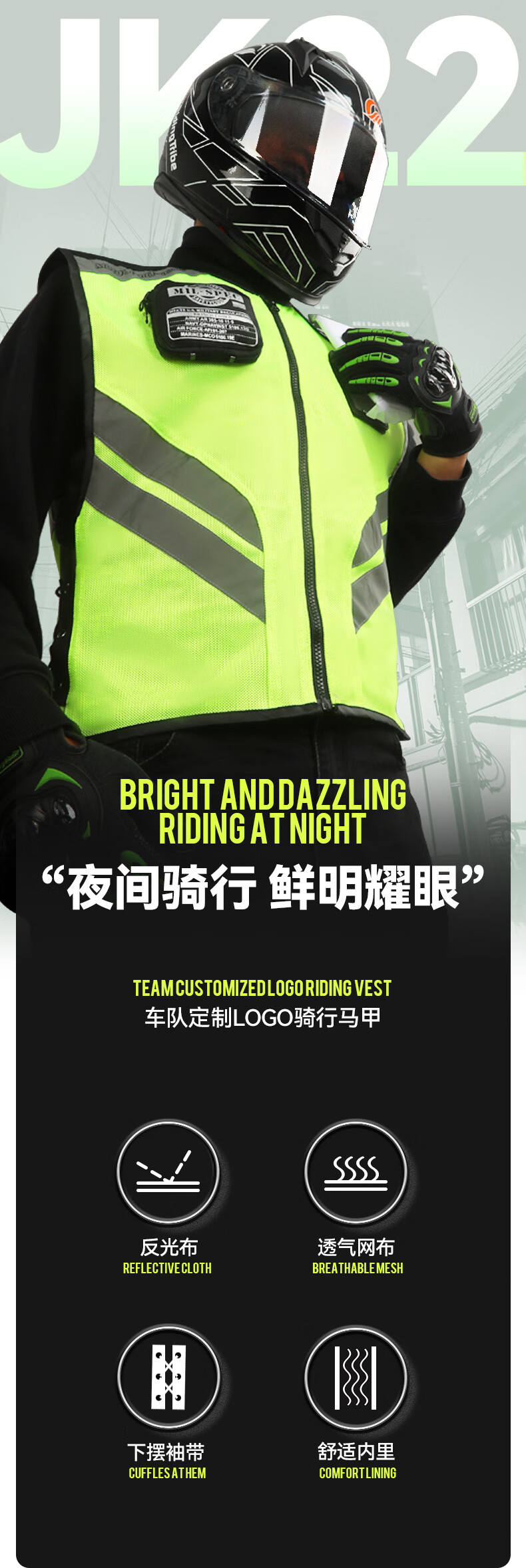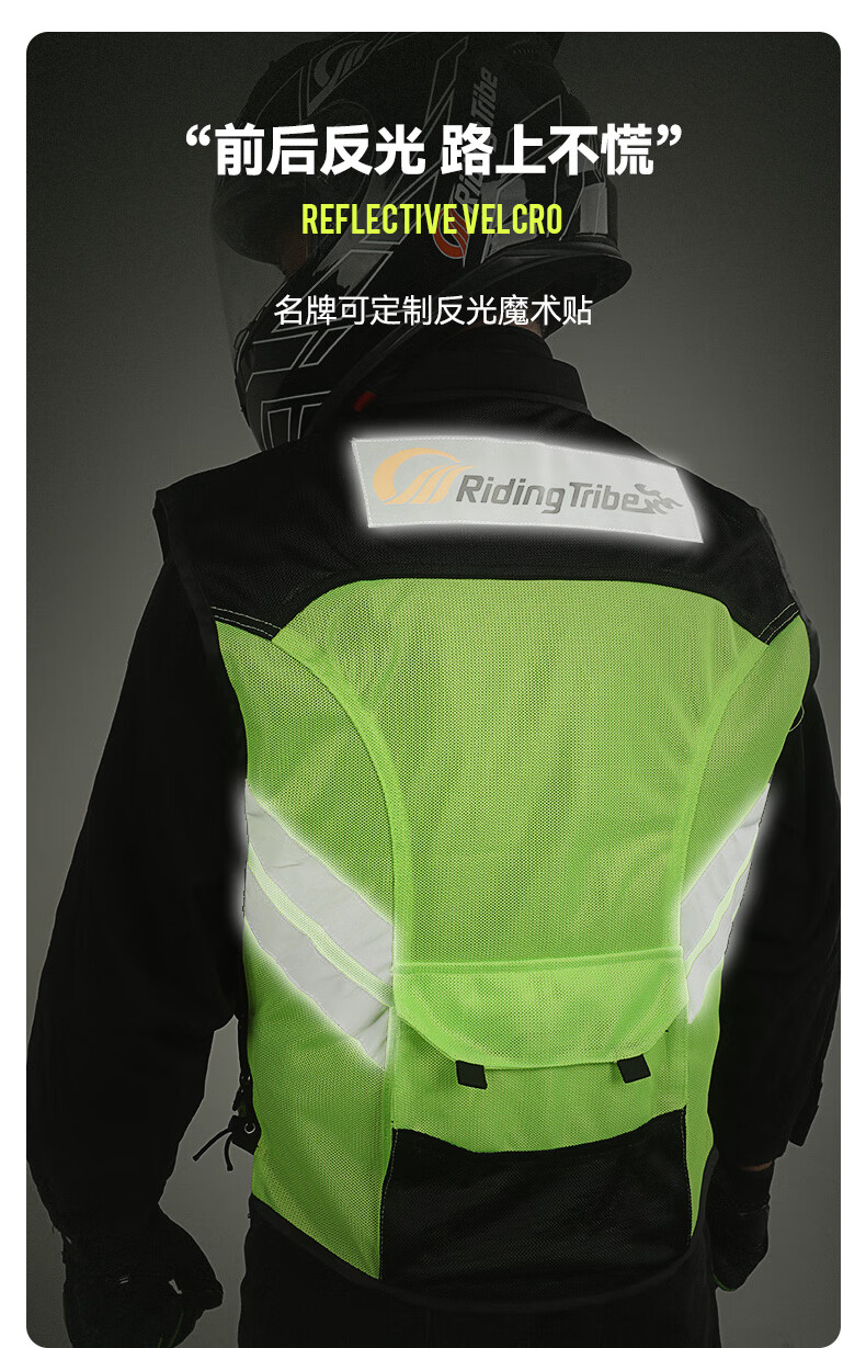 RidingTribe Cycling Tribe Motorcycle Reflective Vest Men's Fluorescent Summer Motorcycle Riding Suit Safety Vest Custom Printed Fluorescent Green Night Reflective/Mesh Breathable Not M