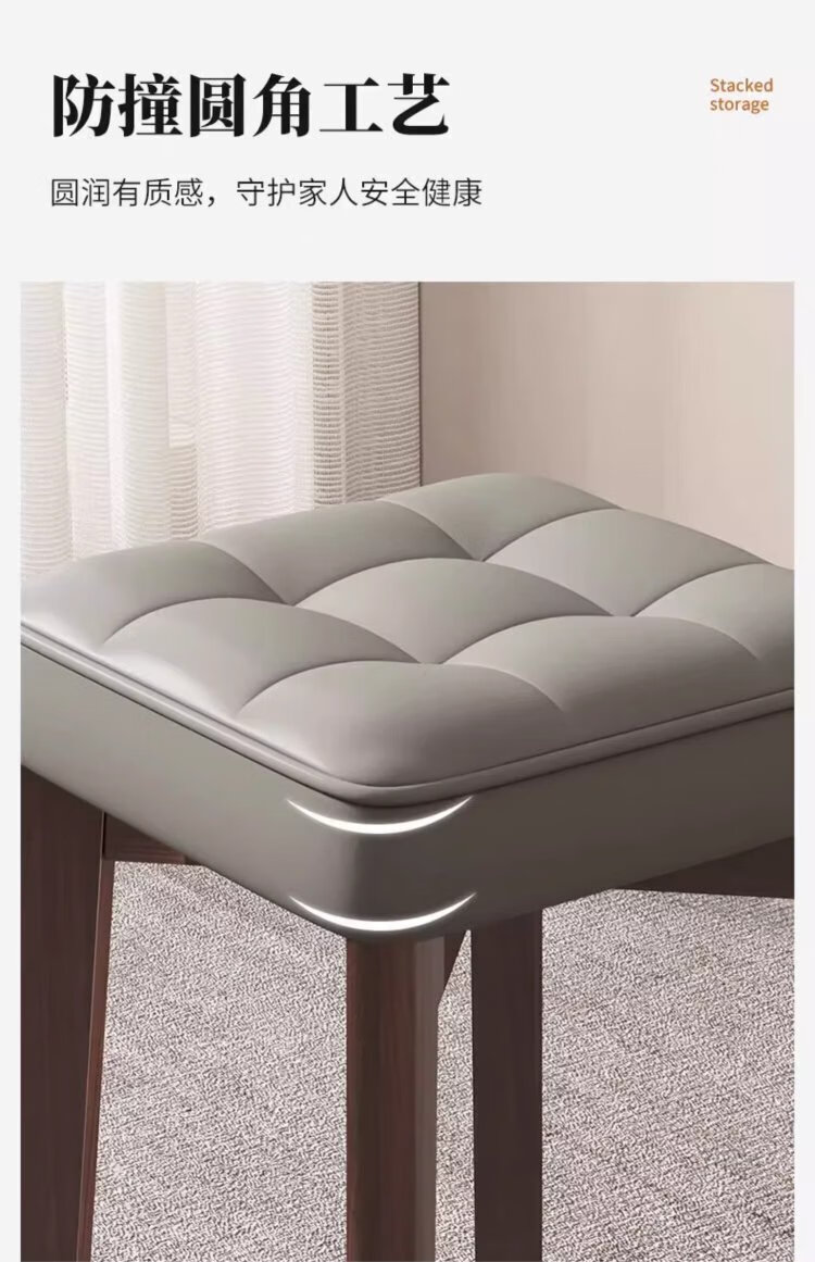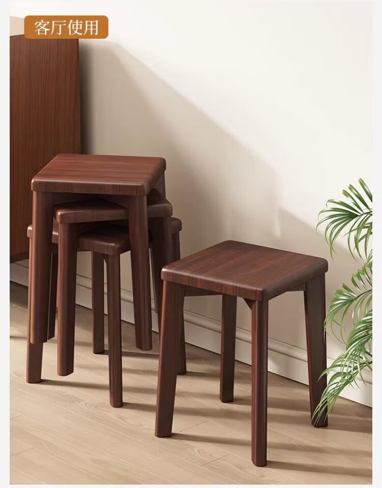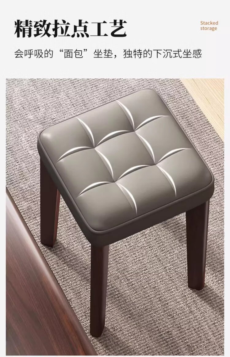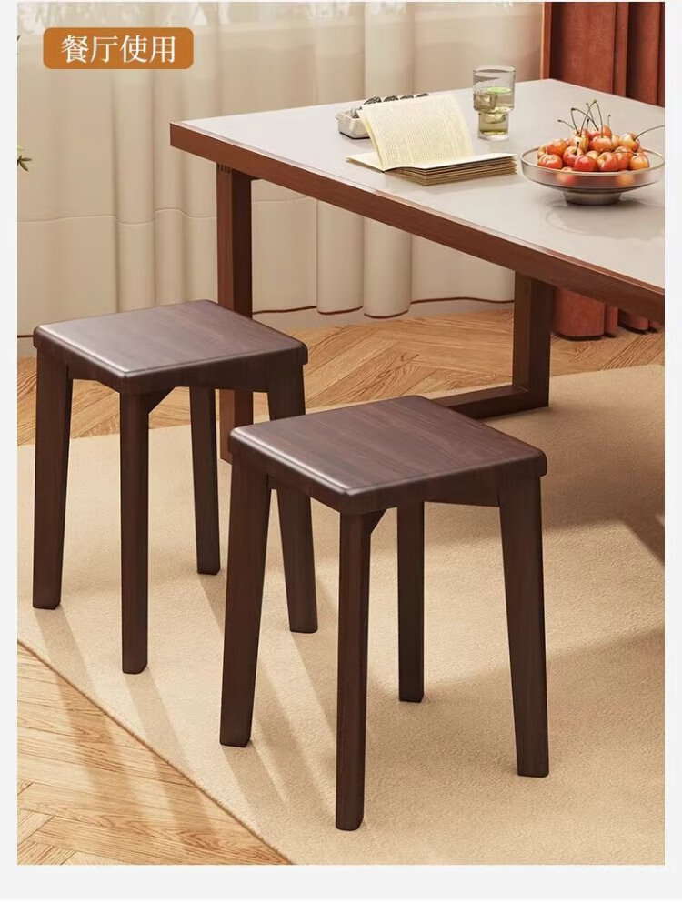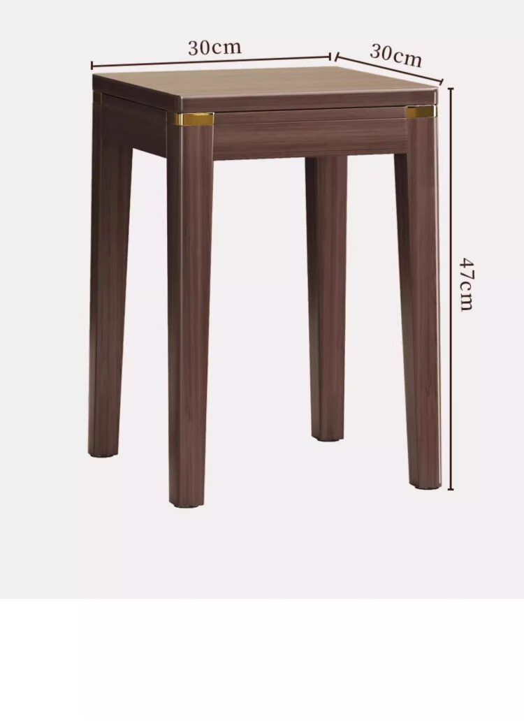 Wang Xingheyue solid wood stool, light luxury and high-end dressing table, home desk, living room dining table and chairs, do not take up space and can be stacked, walnut color, natural beech wood model, large size
