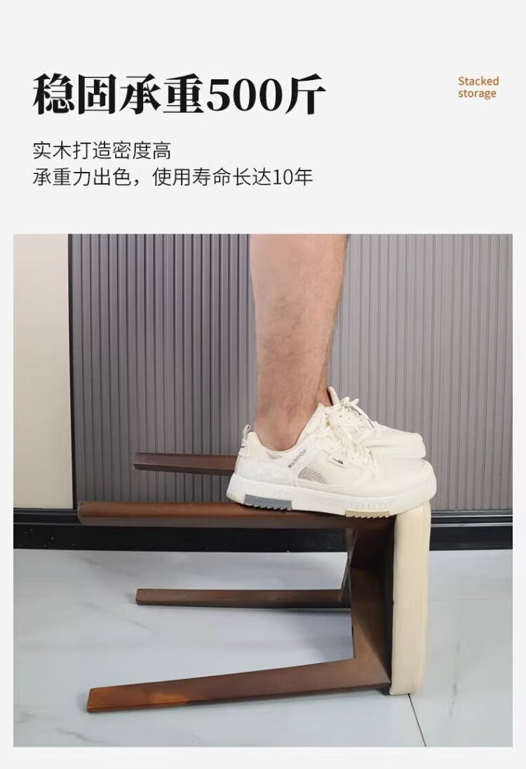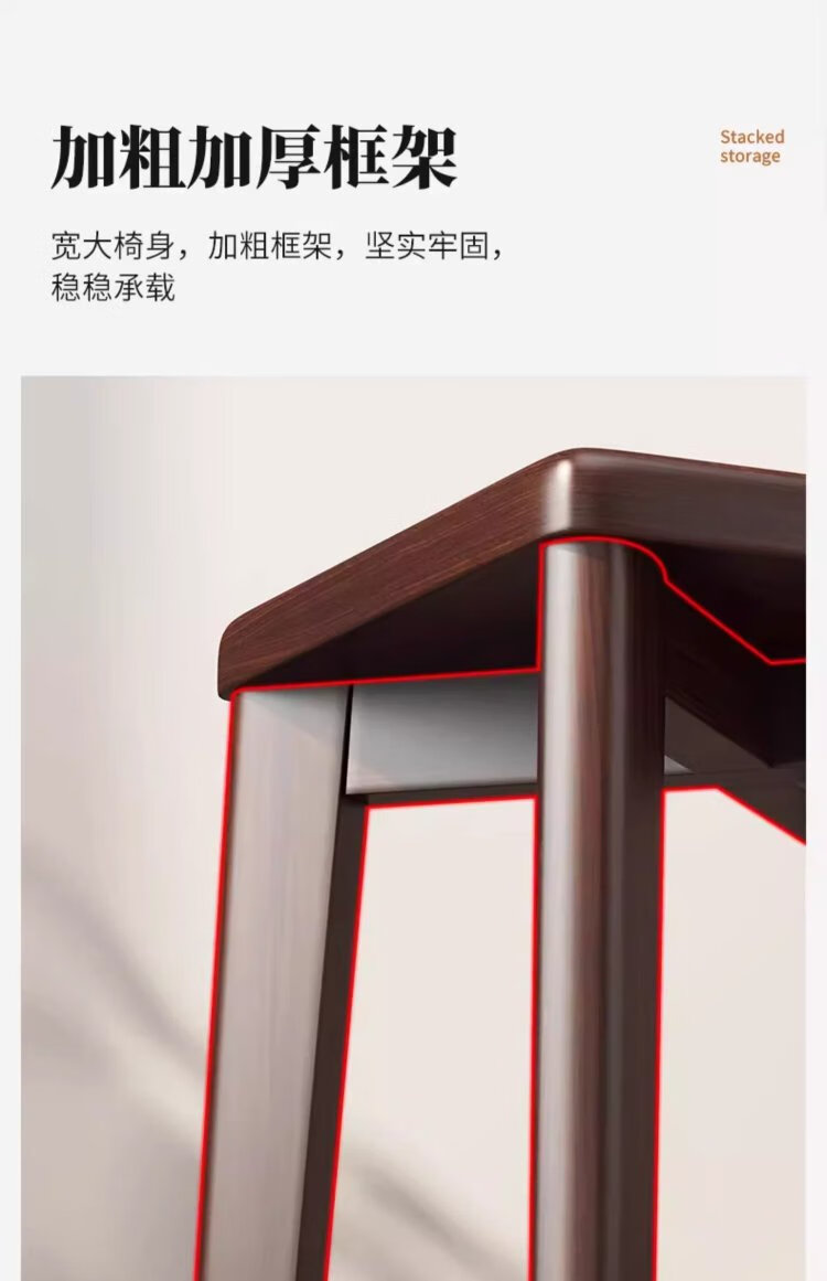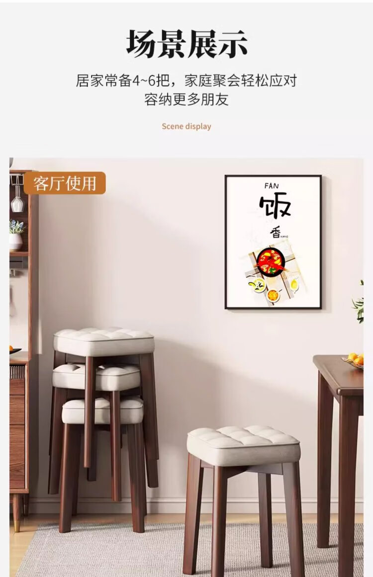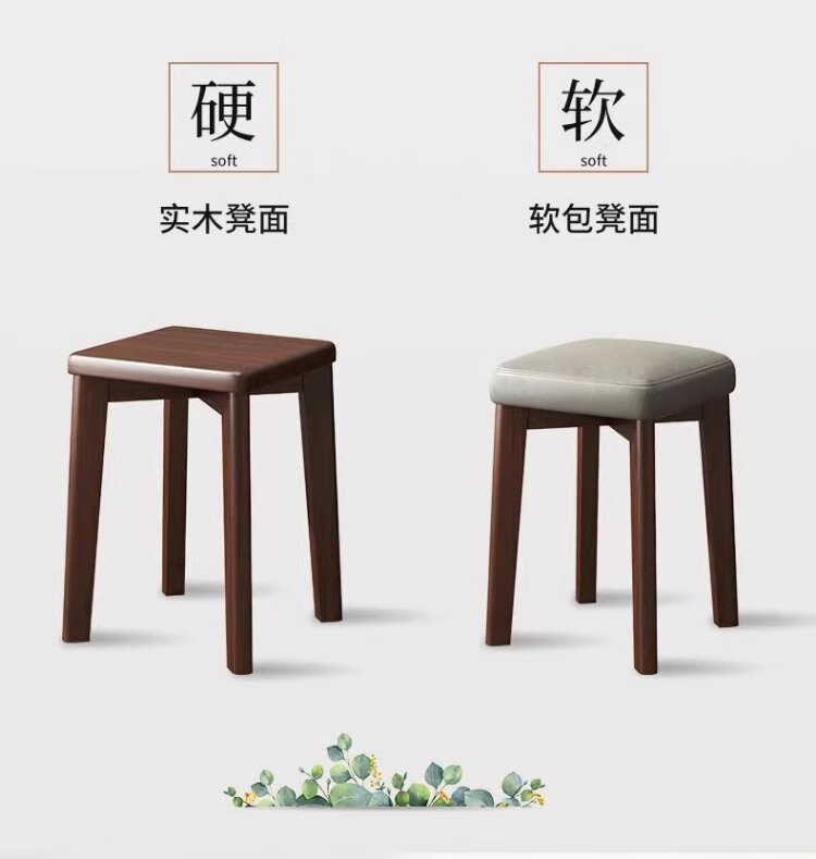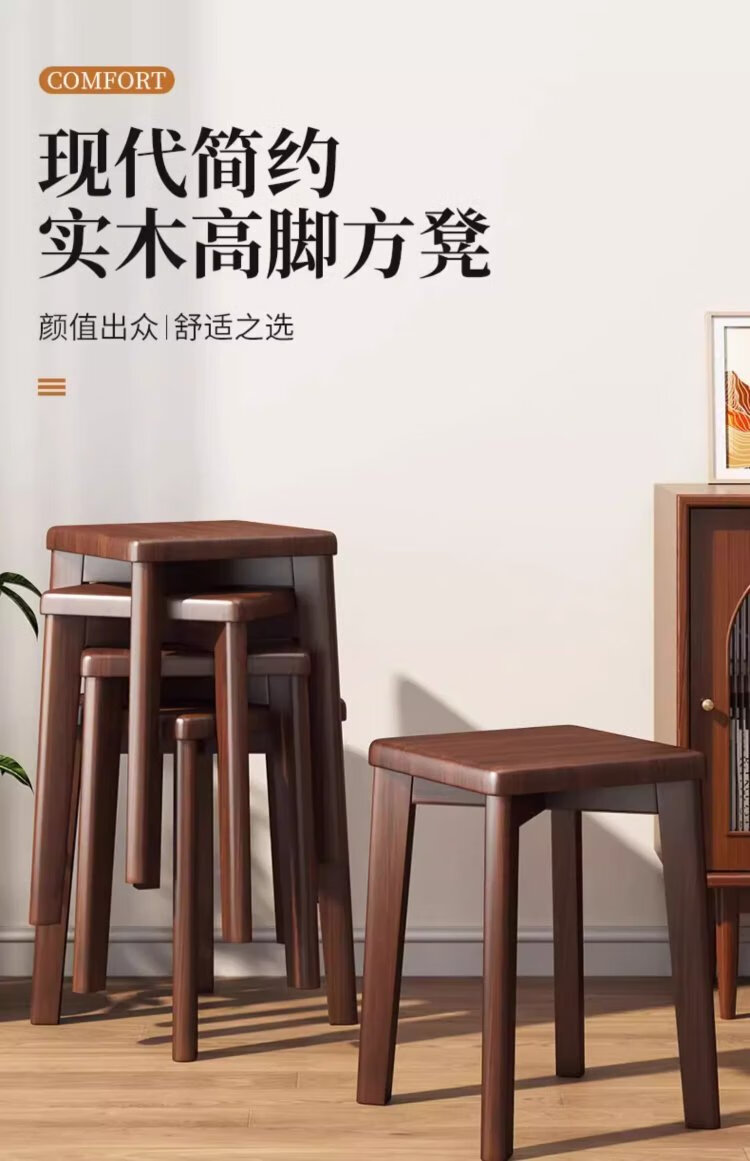 Wang Xingheyue solid wood stool, light luxury and high-end dressing table, home desk, living room dining table and chairs, do not take up space and can be stacked, walnut color, natural beech wood model, large size