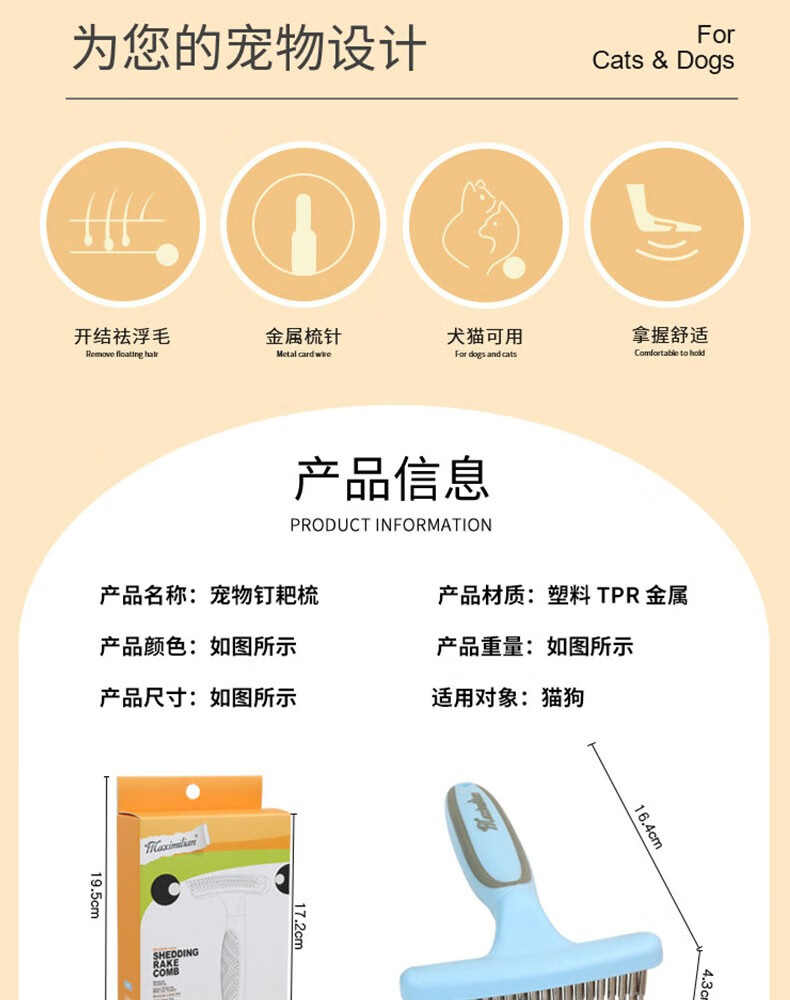 Wami Border Collie special nail rake comb pet knotting comb dog hair removal comb large dog needle comb Yingte beauty comb orange nail rake comb + nail clipper set