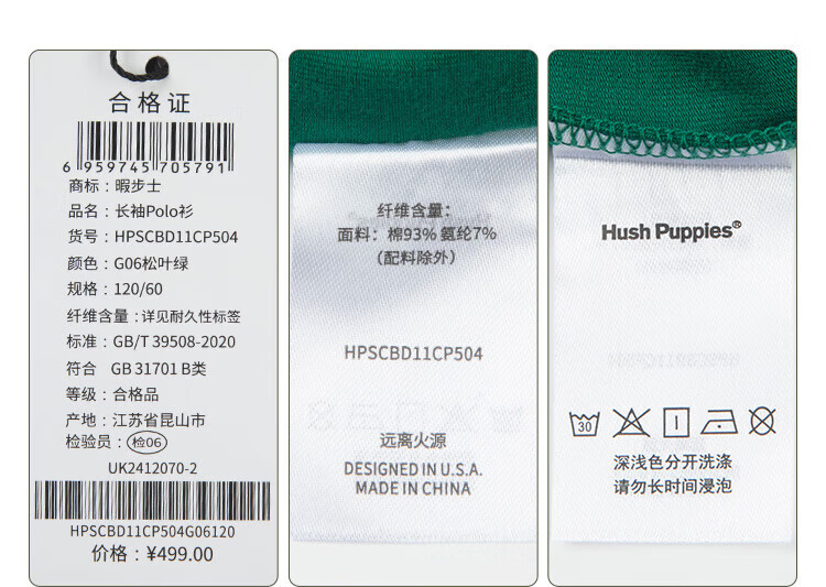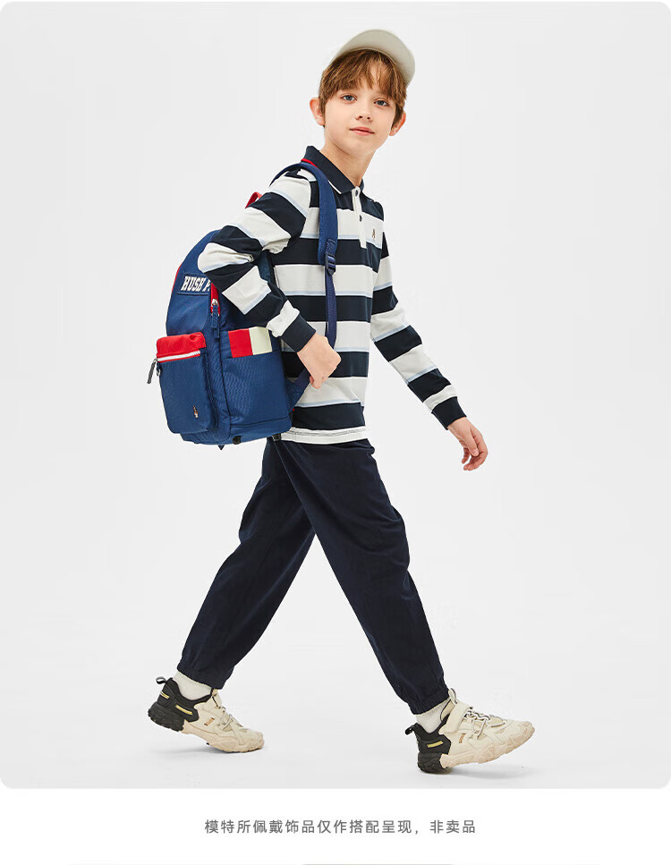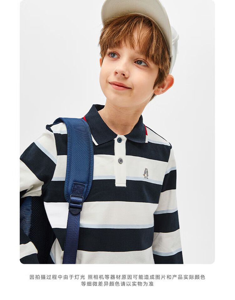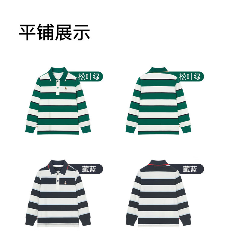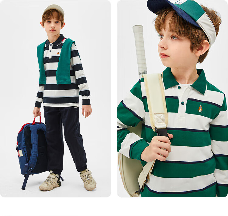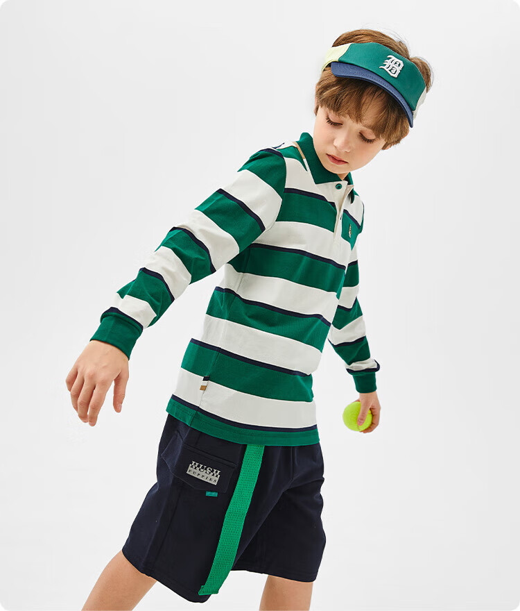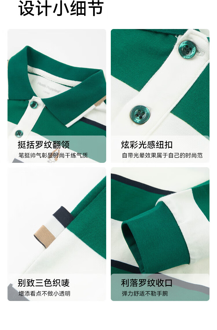 Hush Puppies children's clothing children's boys spring and autumn new spliced striped classic lapel long-sleeved POLO shirt pine leaf green 160 cm (one size larger)