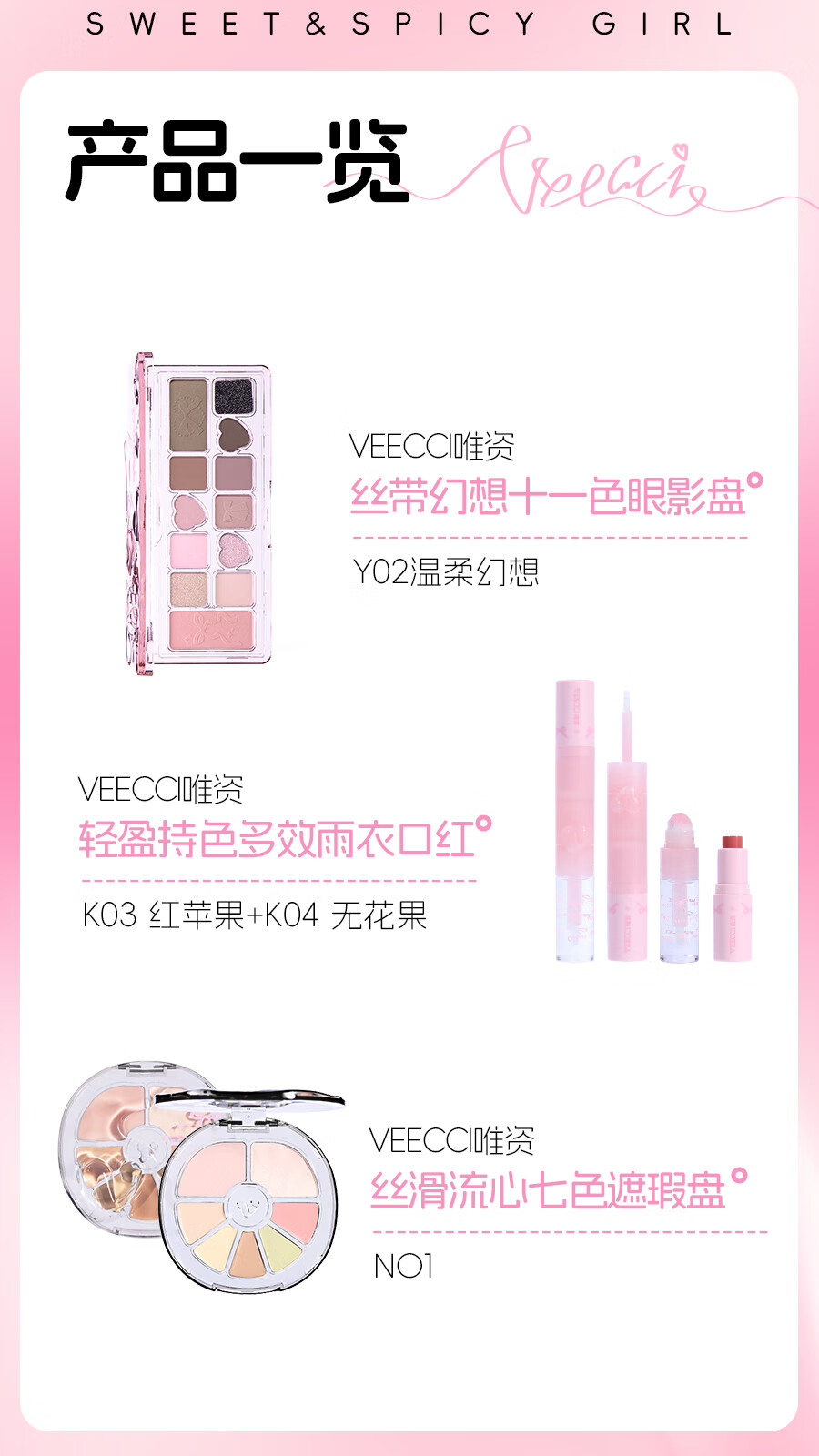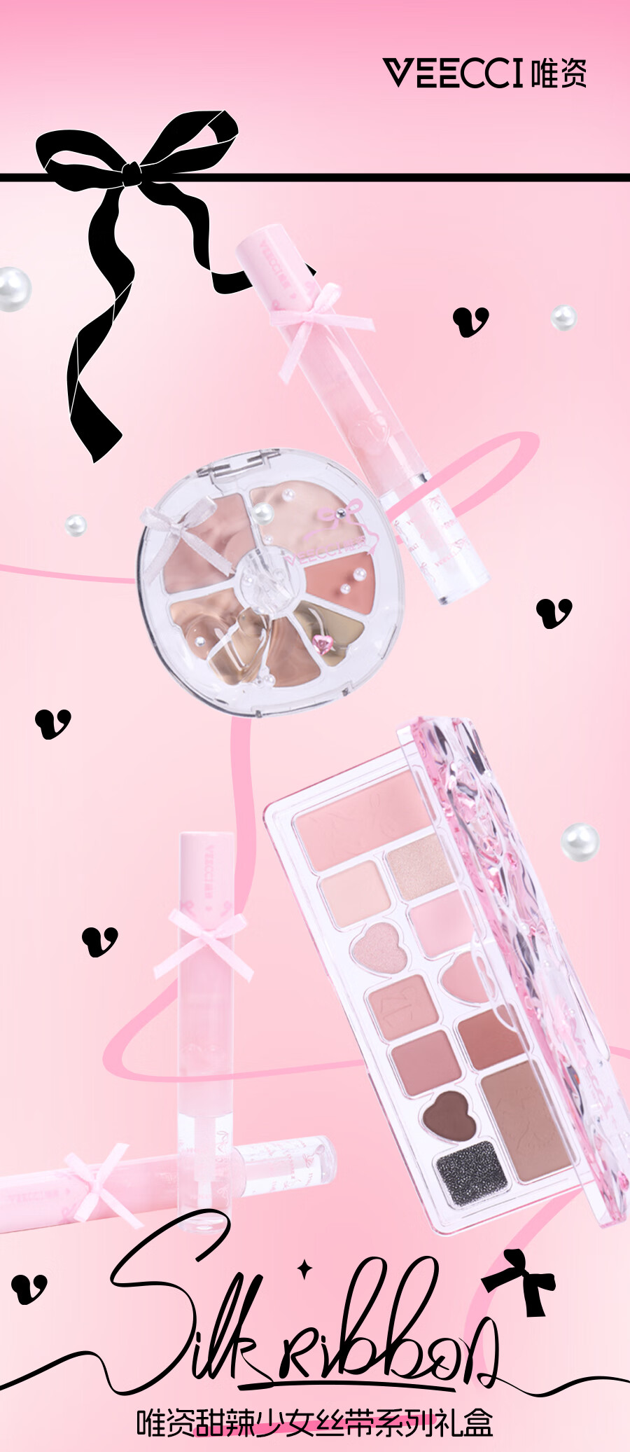 唯资(VEECCI)甜辣少女丝带系列礼盒口红遮瑕盘眼影盘彩妆化妆品新年礼物 甜辣少女丝带礼盒