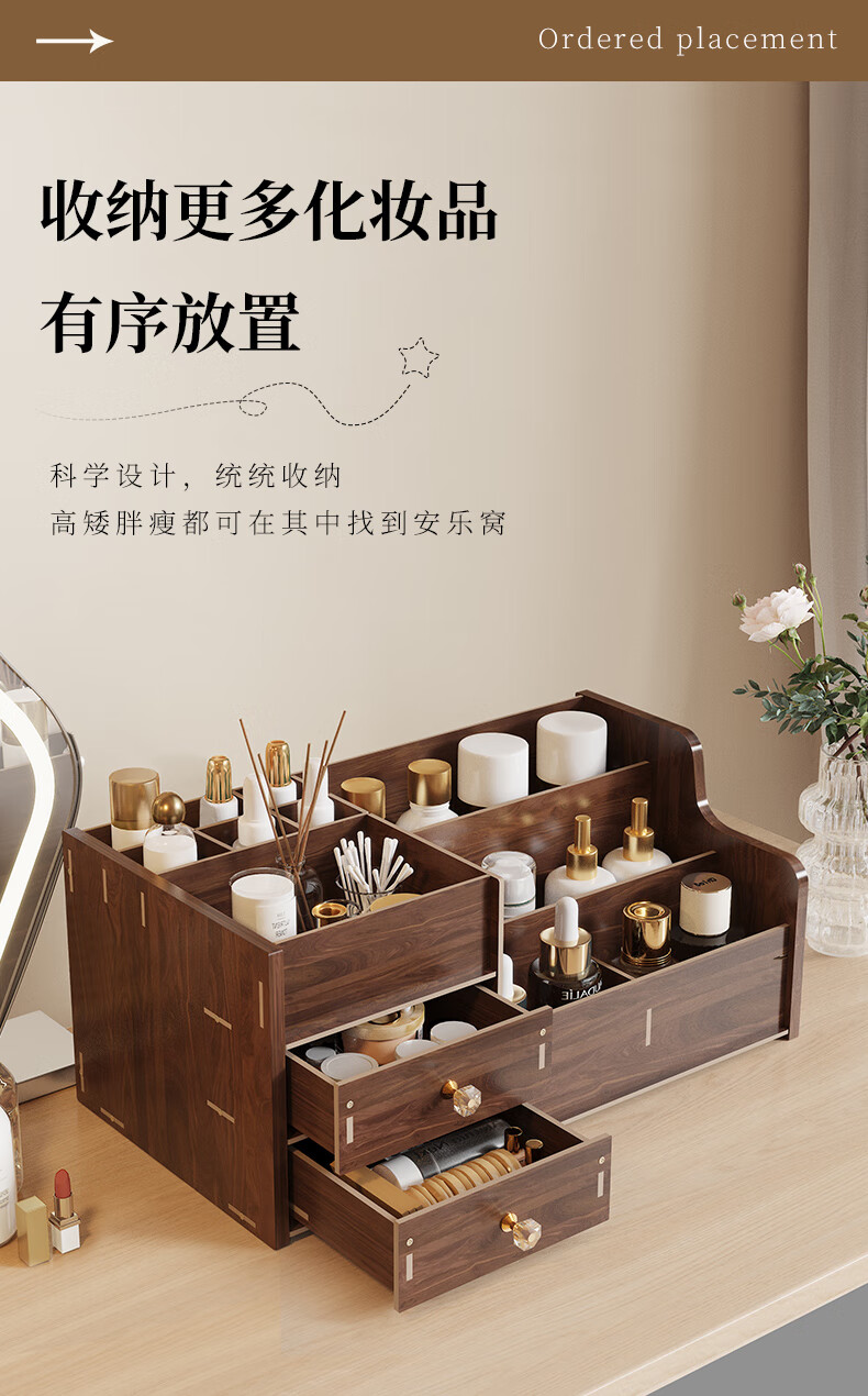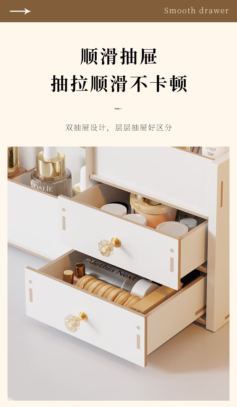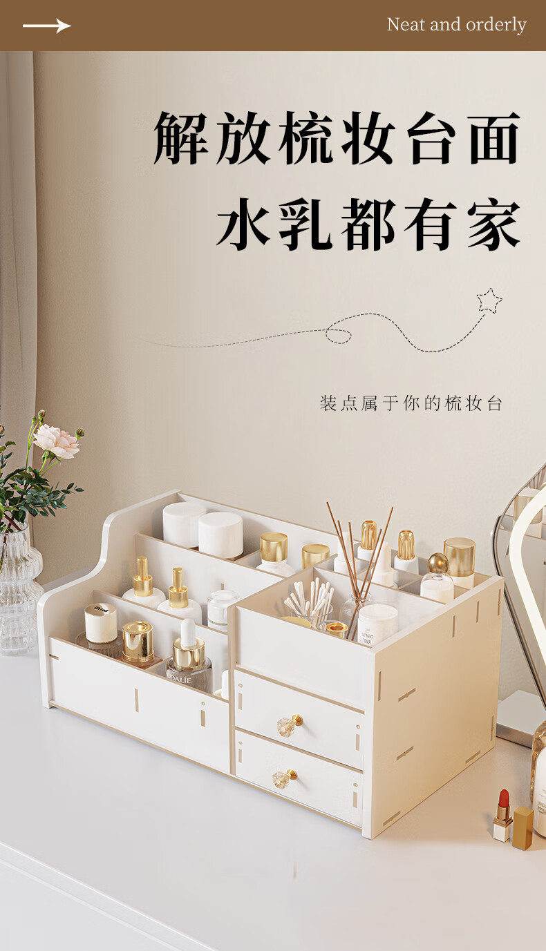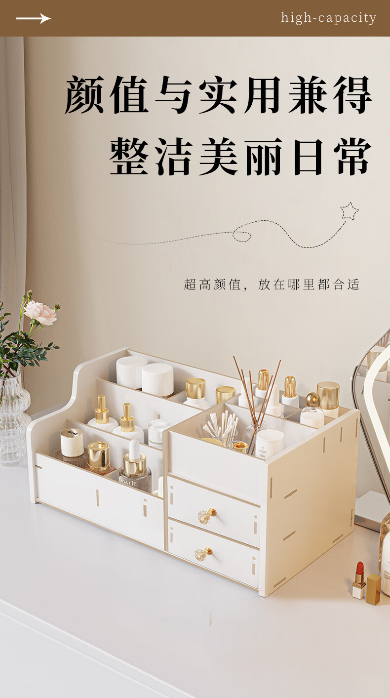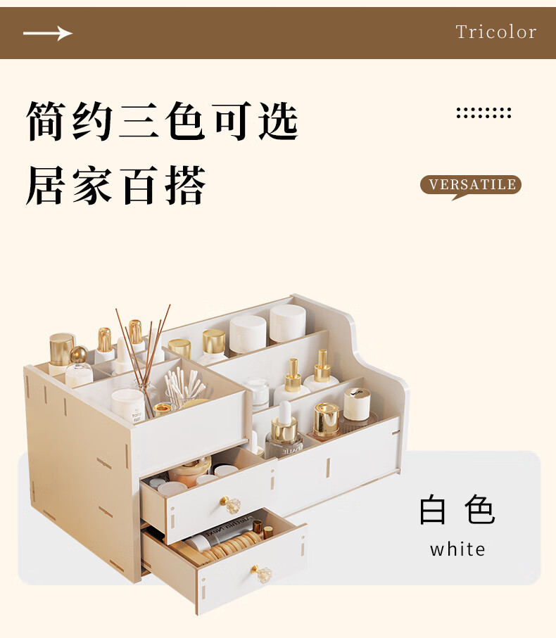 Positive Youth Large Wooden Cosmetic Storage Box Drawer-Type Home Desktop Lipstick Skin Care Product Organizer Dressing Shelves 24 Styles Thickened - 3 Layers Multi-Gate 2 Drawers White