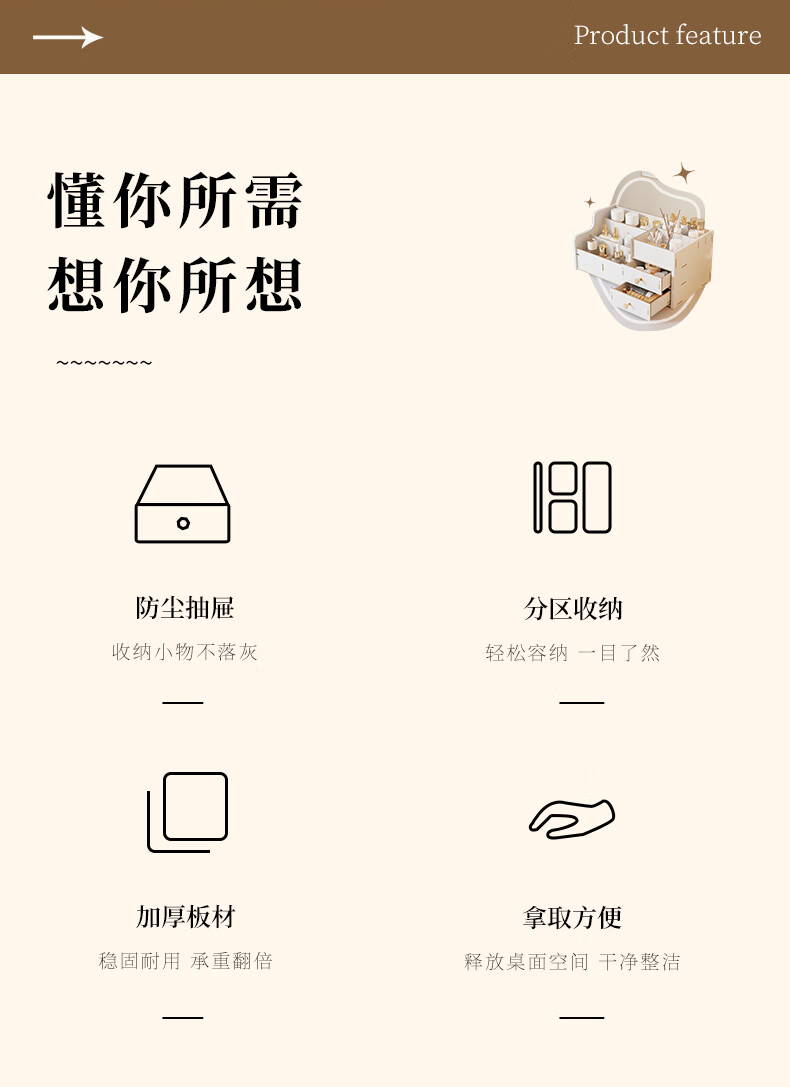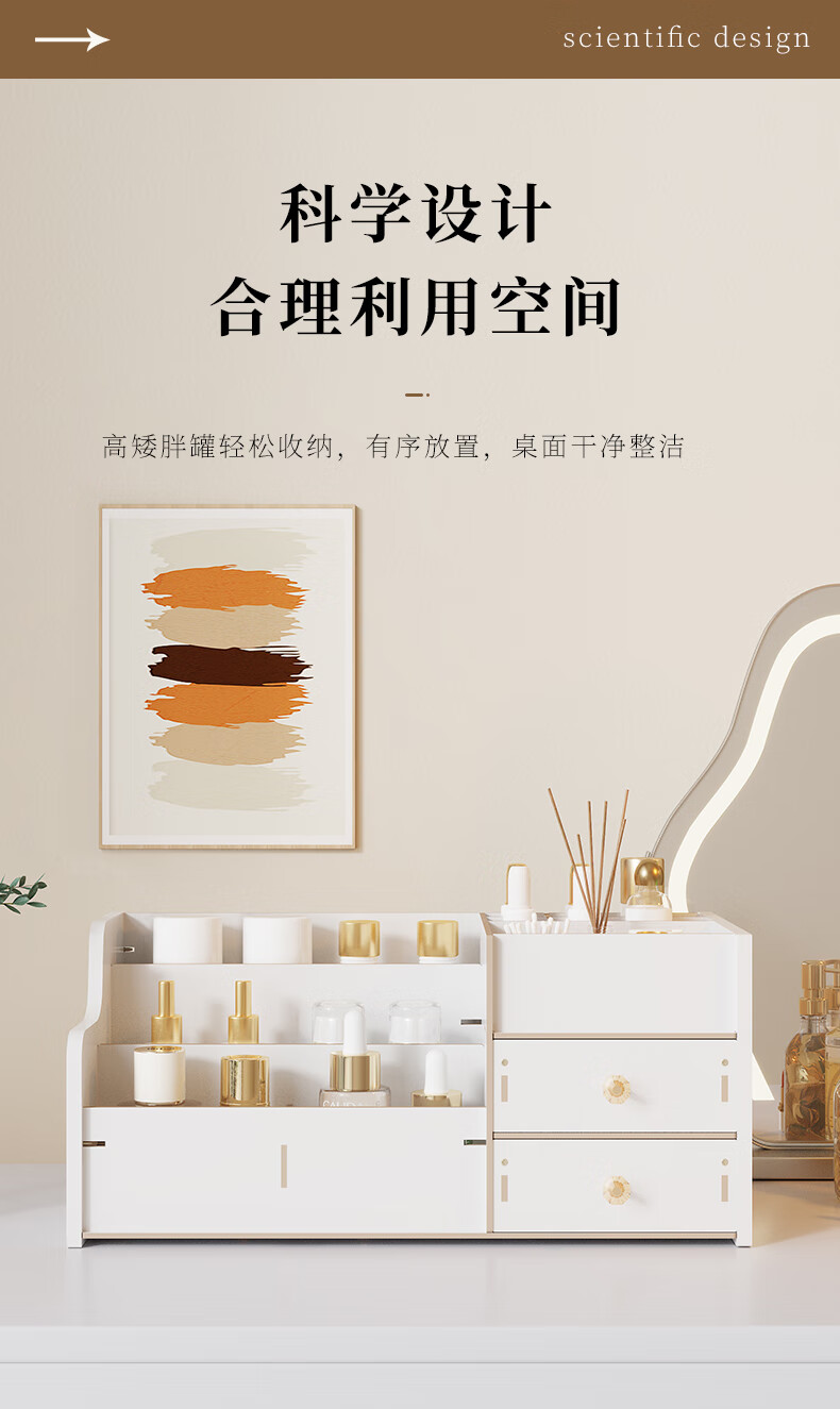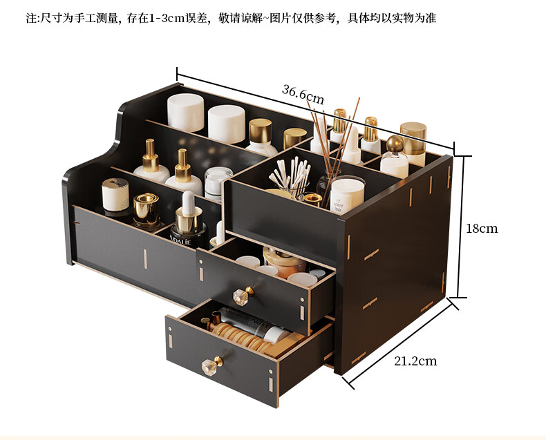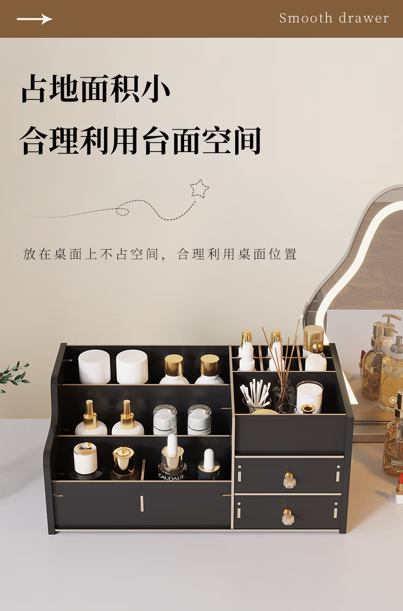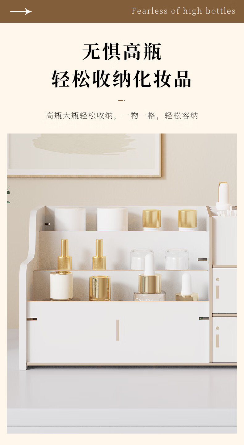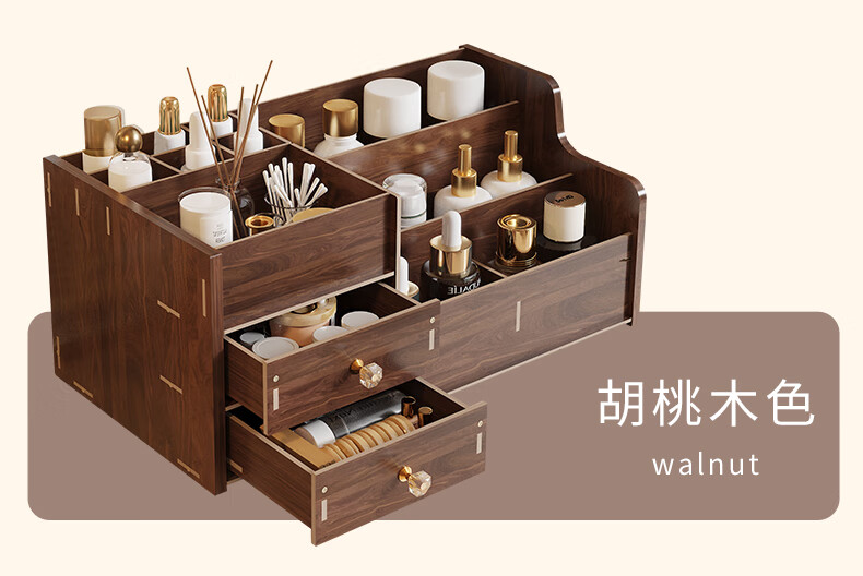Positive Youth Large Wooden Cosmetic Storage Box Drawer-Type Home Desktop Lipstick Skin Care Product Organizer Dressing Shelves 24 Styles Thickened - 3 Layers Multi-Gate 2 Drawers White