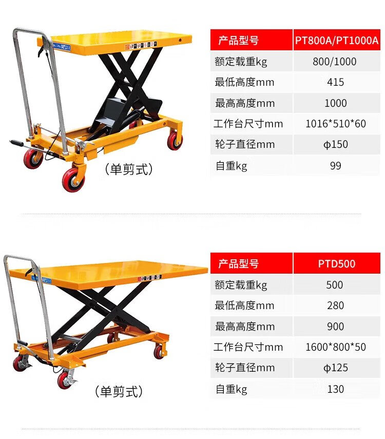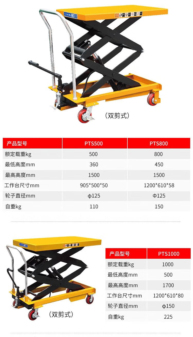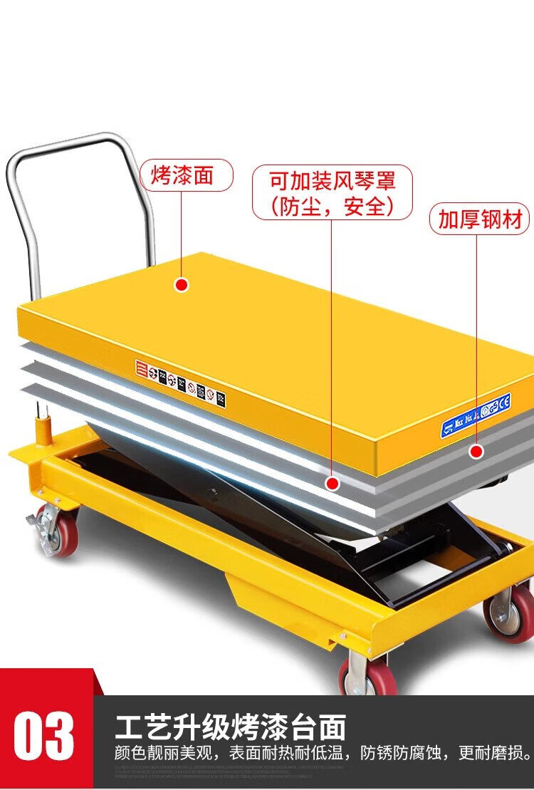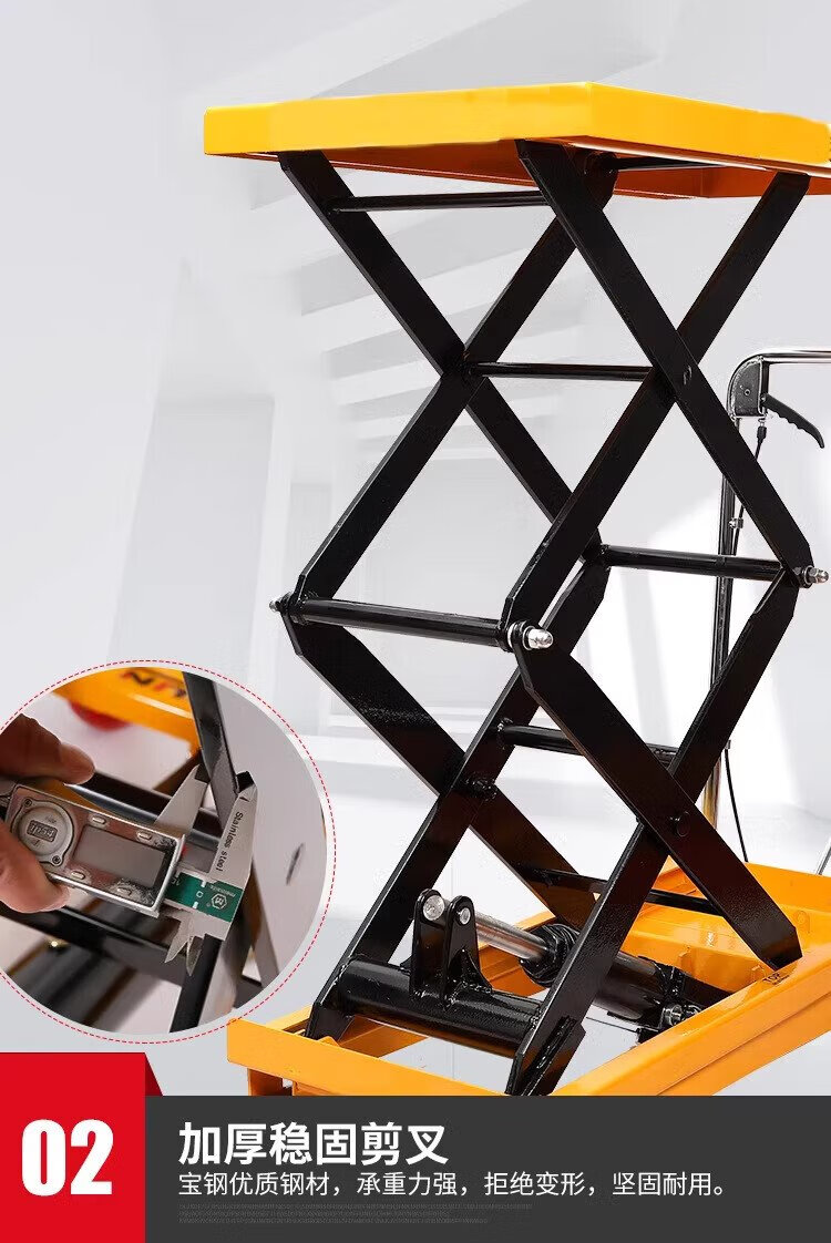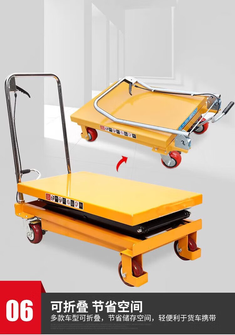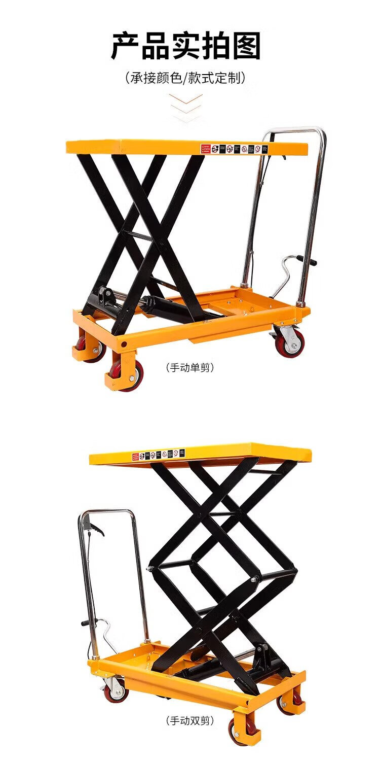 Guanhang manual hydraulic lifting platform truck mobile electric lift small lift simple trolley 350KG Liter 1.3m table 500-920