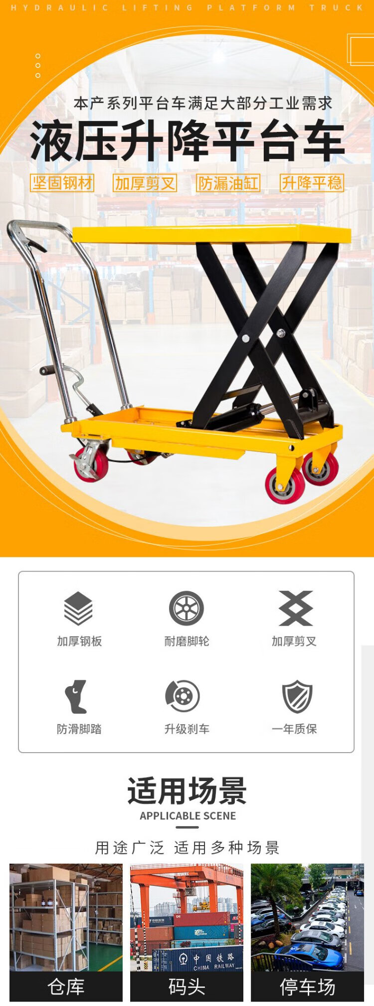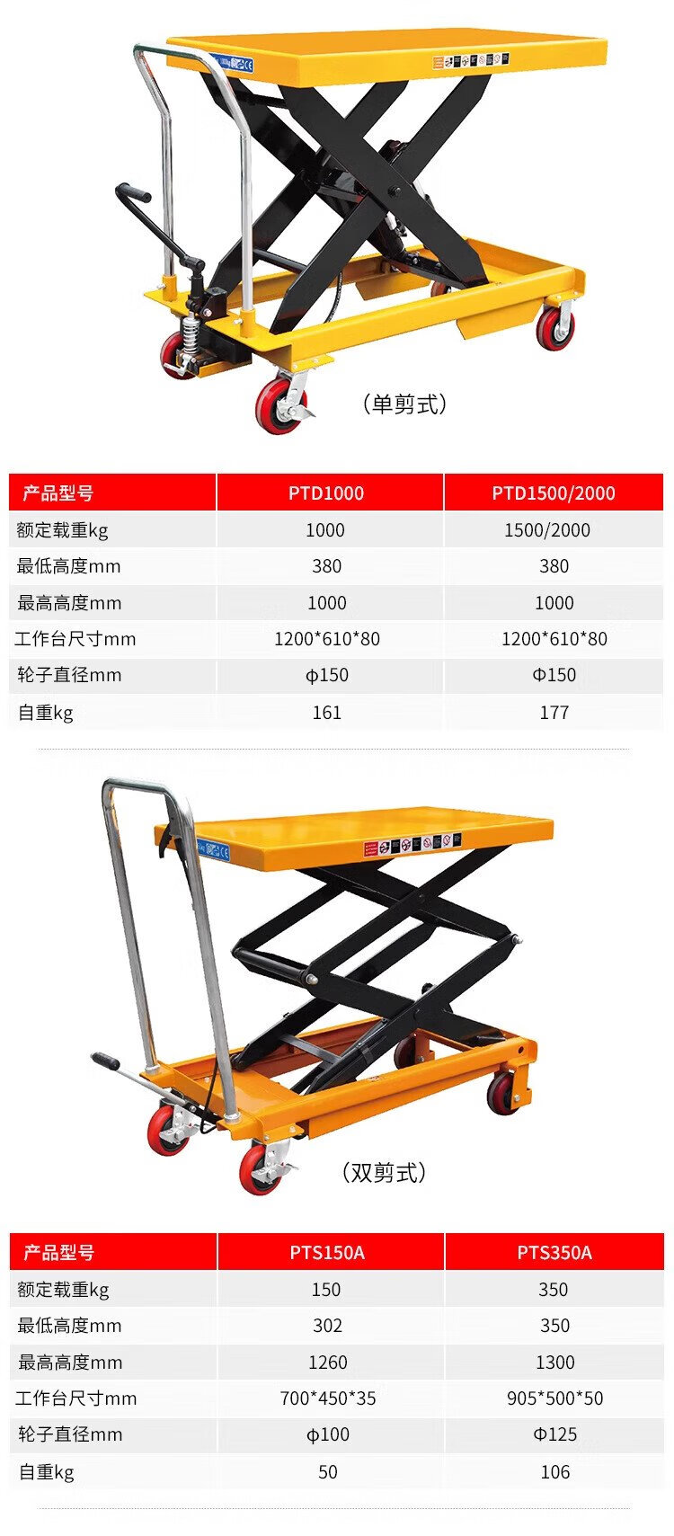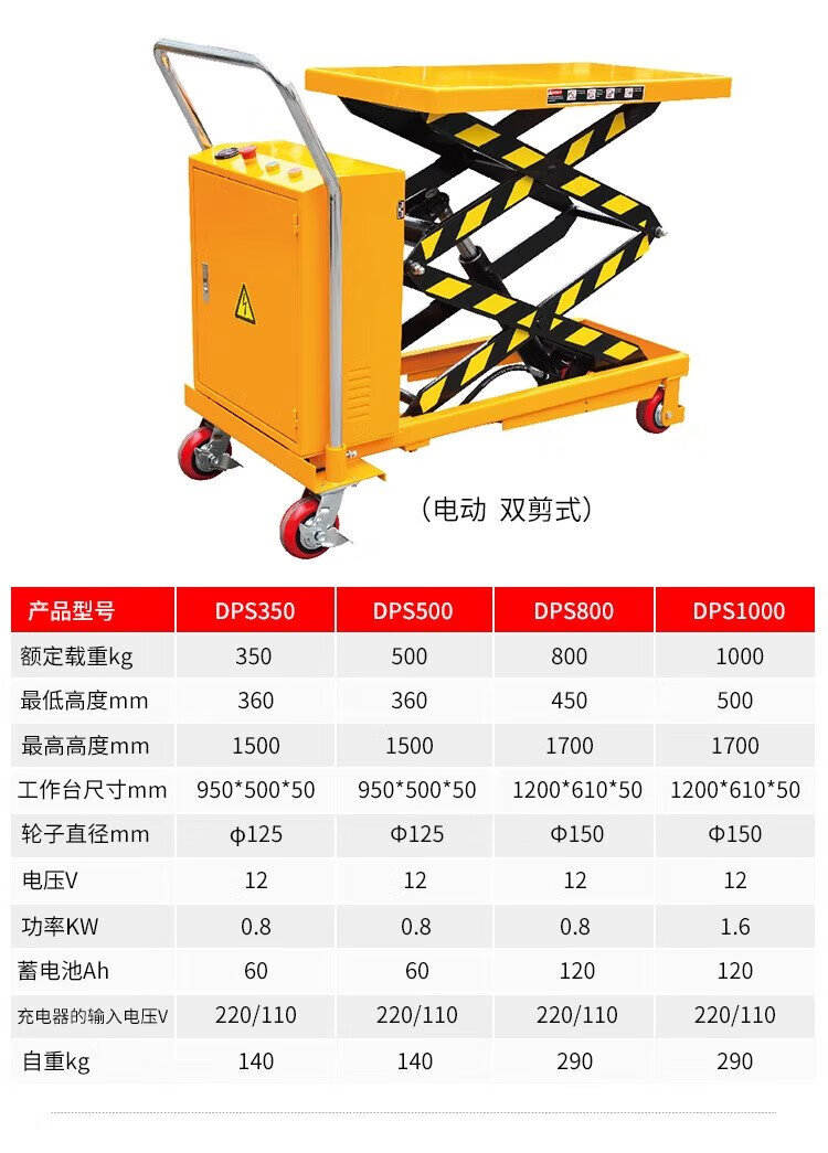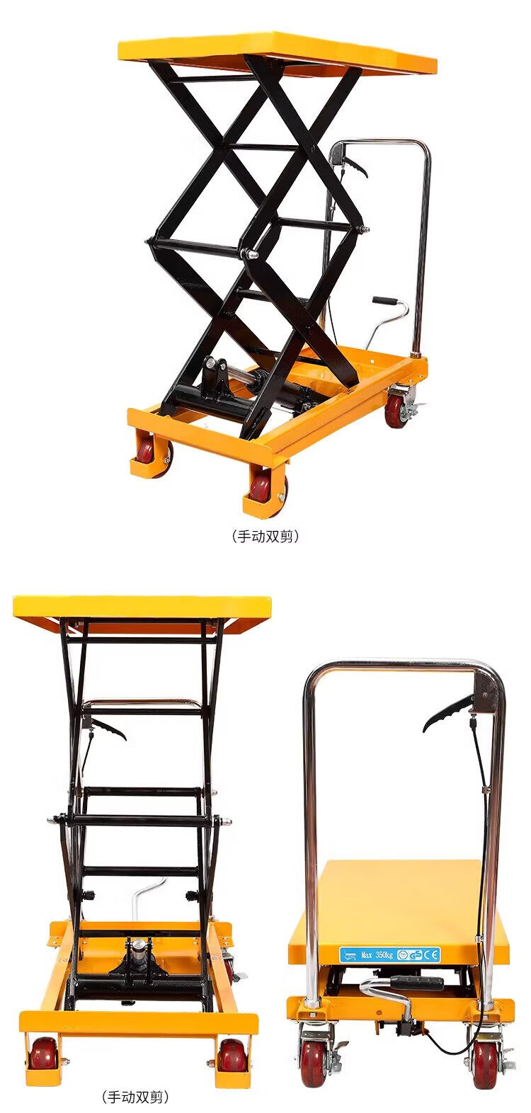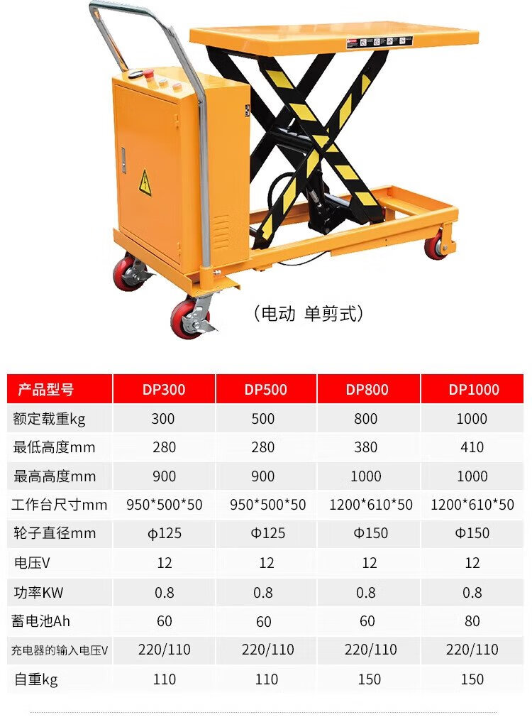 Guanhang manual hydraulic lifting platform truck mobile electric lift small lift simple trolley 350KG Liter 1.3m table 500-920