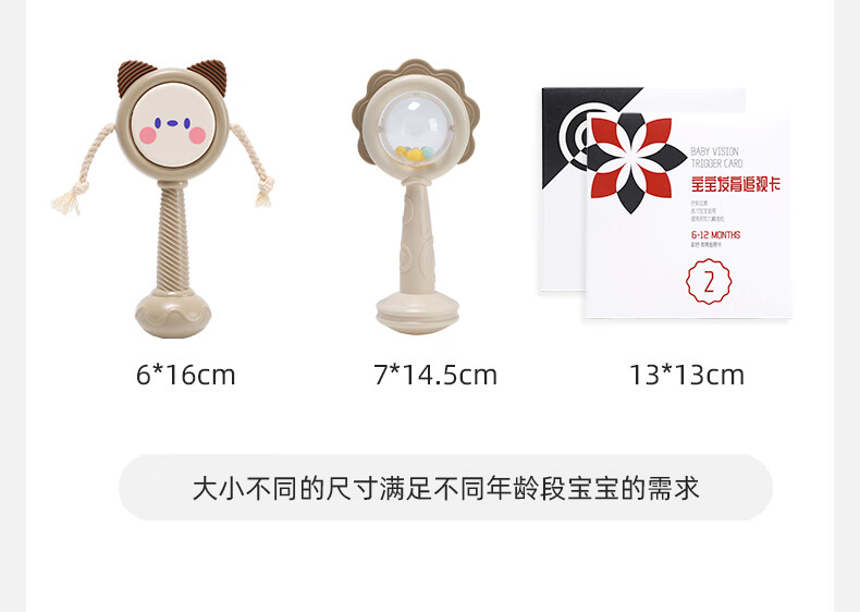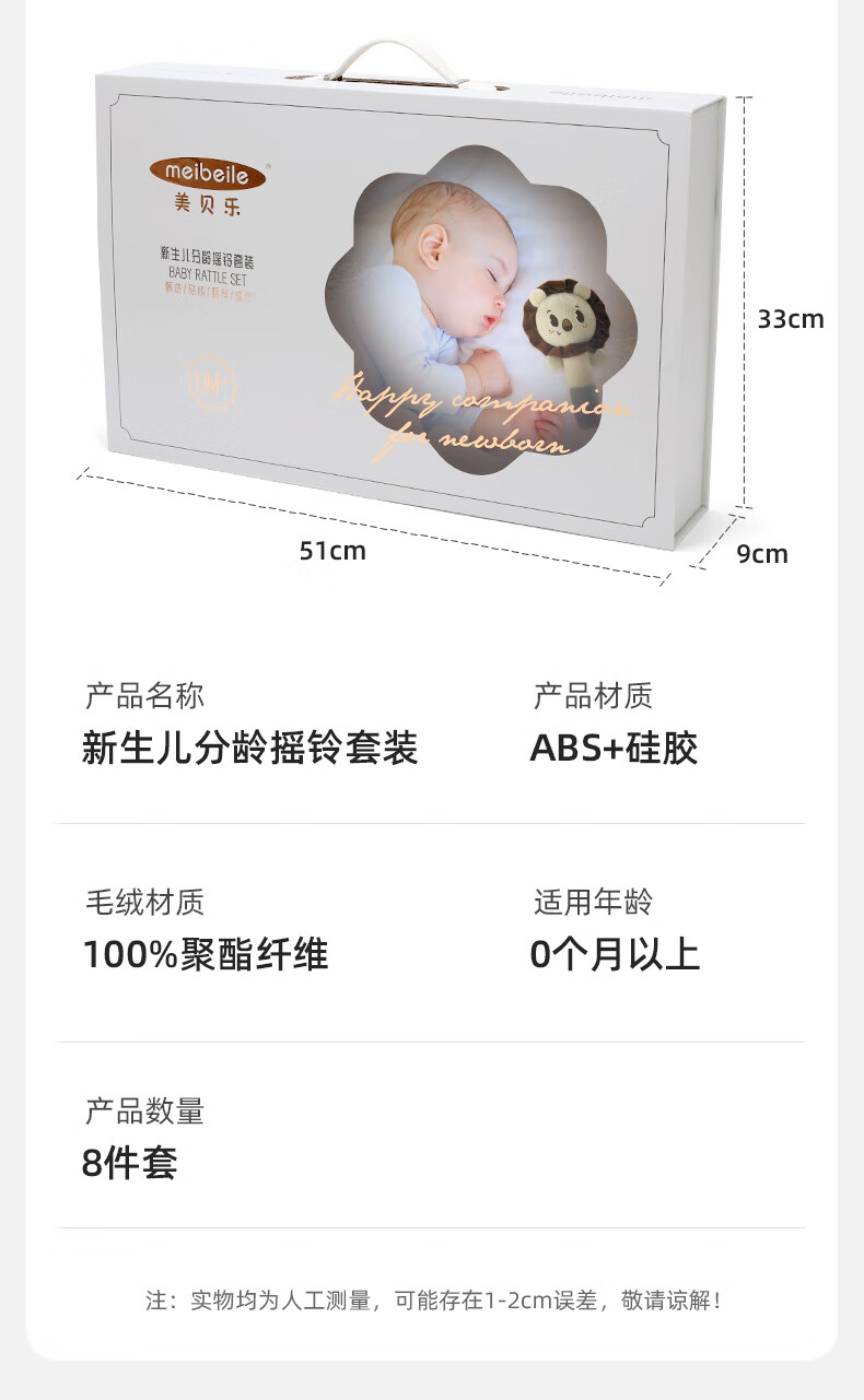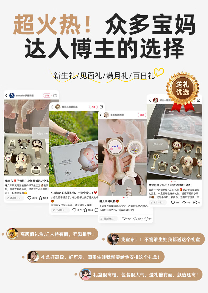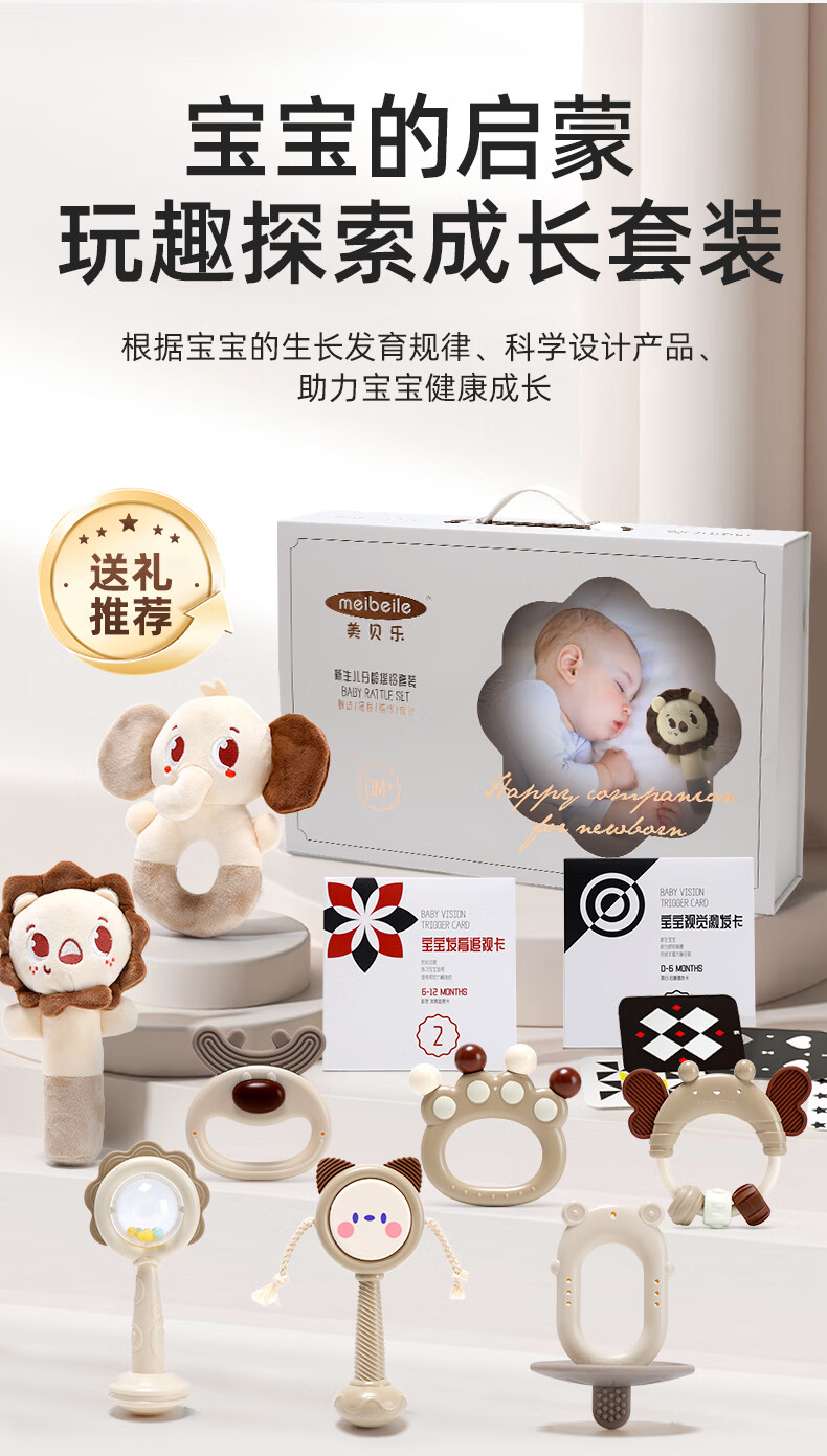 Mengshi baby toys newborn meeting gift box 0-6 months baby comfort rattle 1 year old 100 days full moon birthday gift rattle set of 10 pieces gift box + visual stimulation card