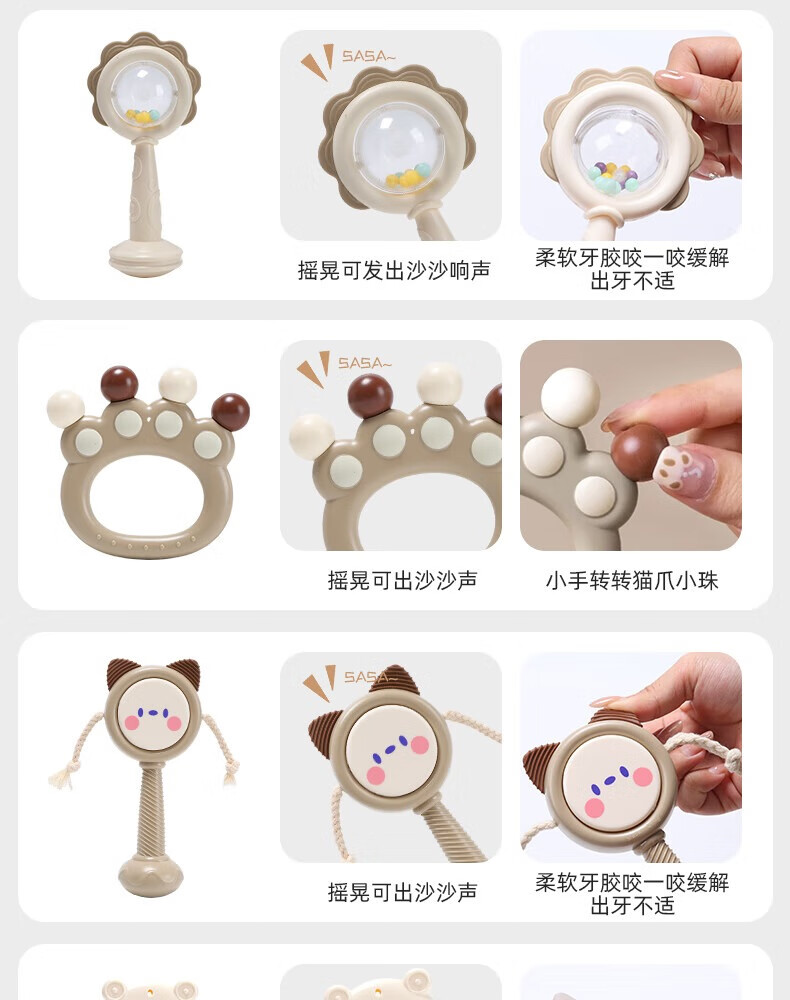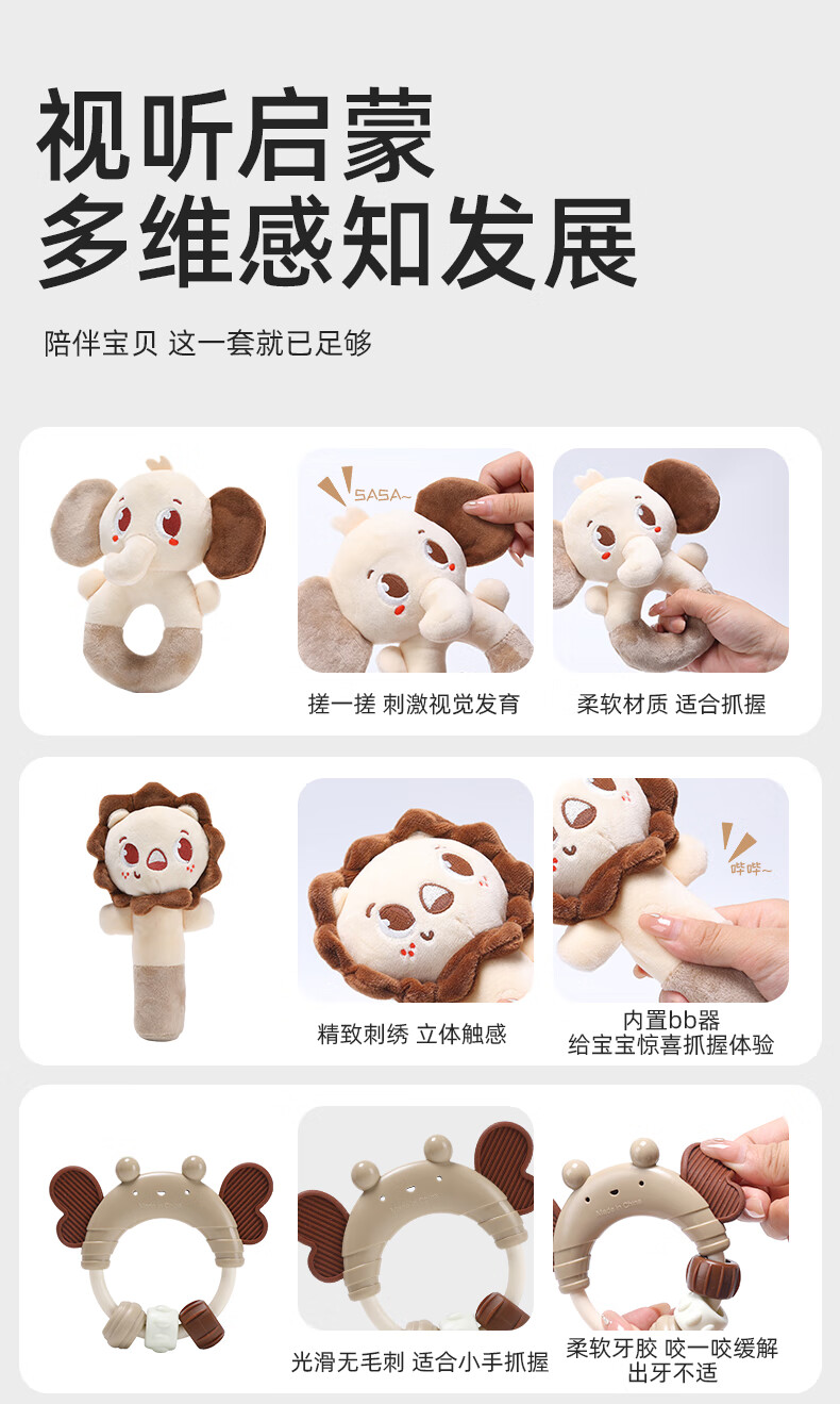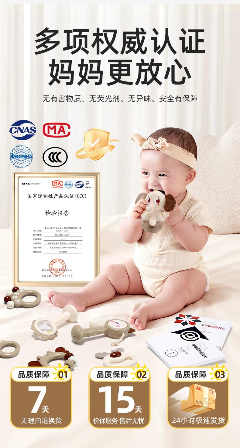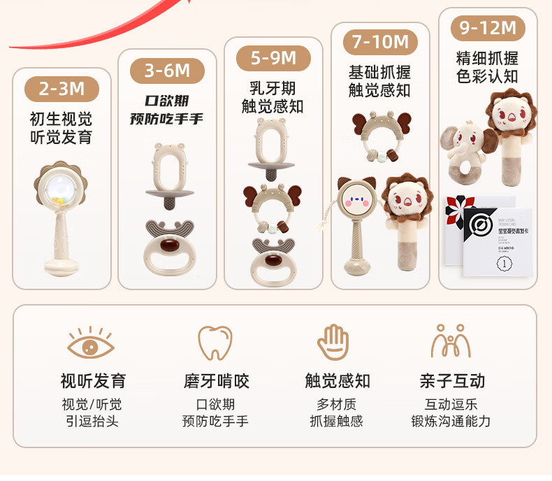 Mengshi baby toys newborn meeting gift box 0-6 months baby comfort rattle 1 year old 100 days full moon birthday gift rattle set of 10 pieces gift box + visual stimulation card