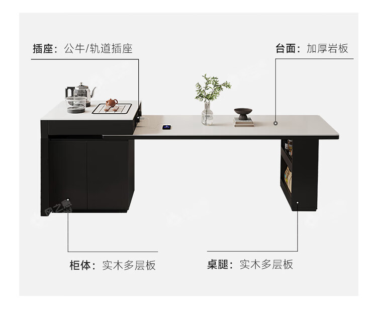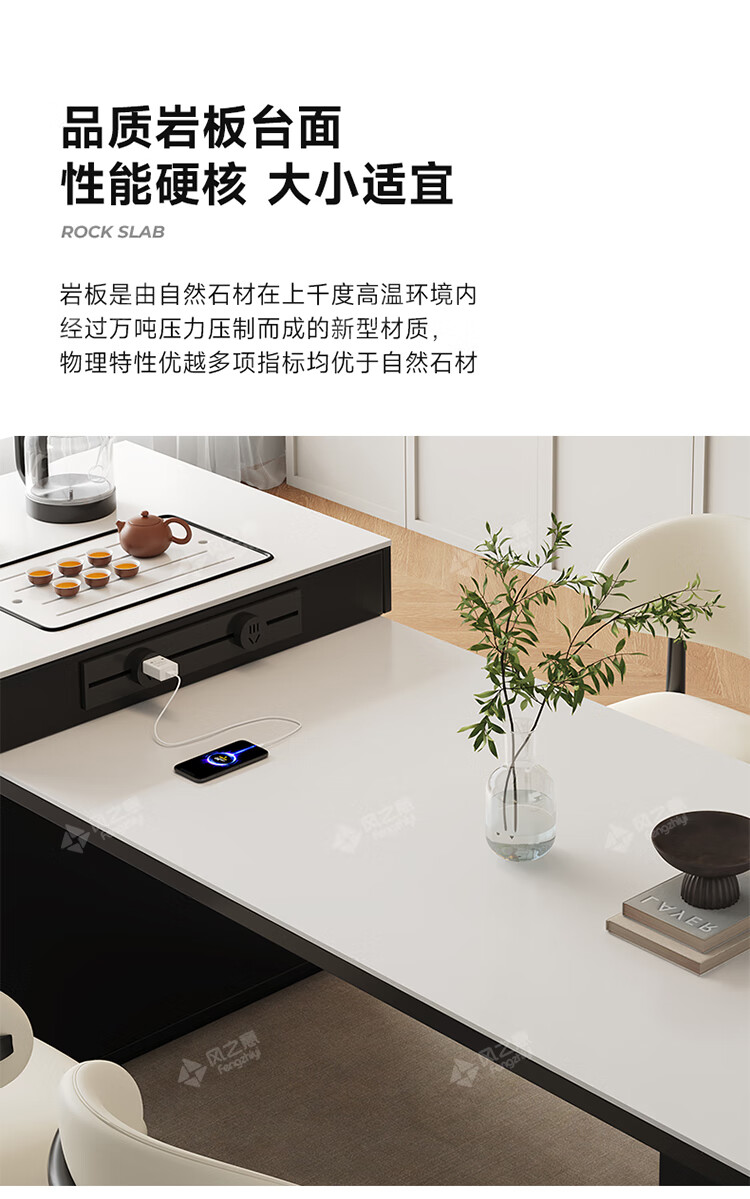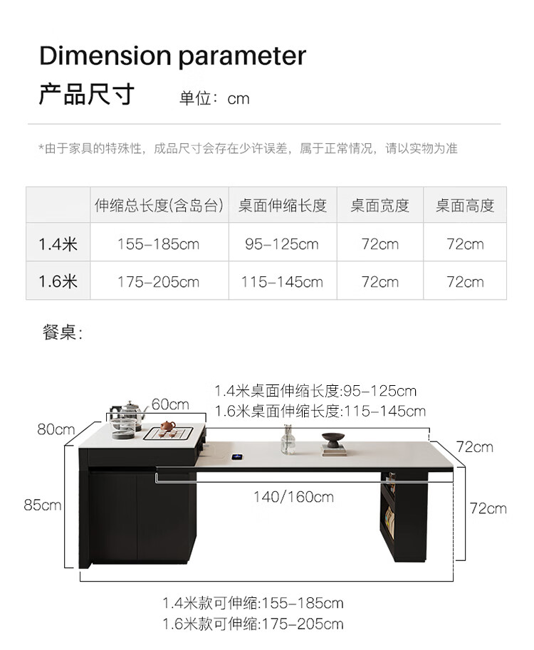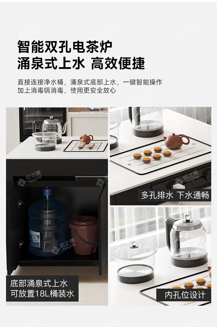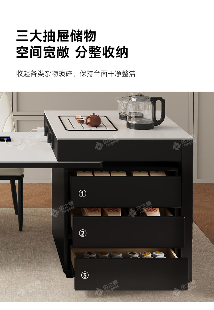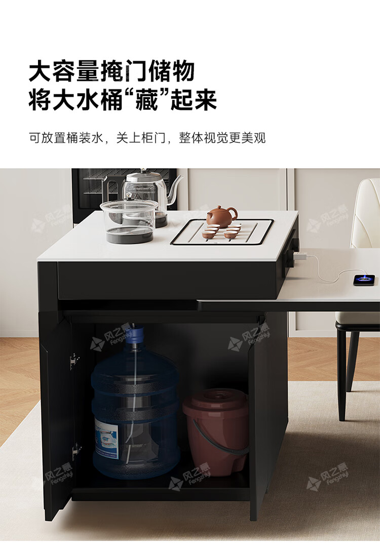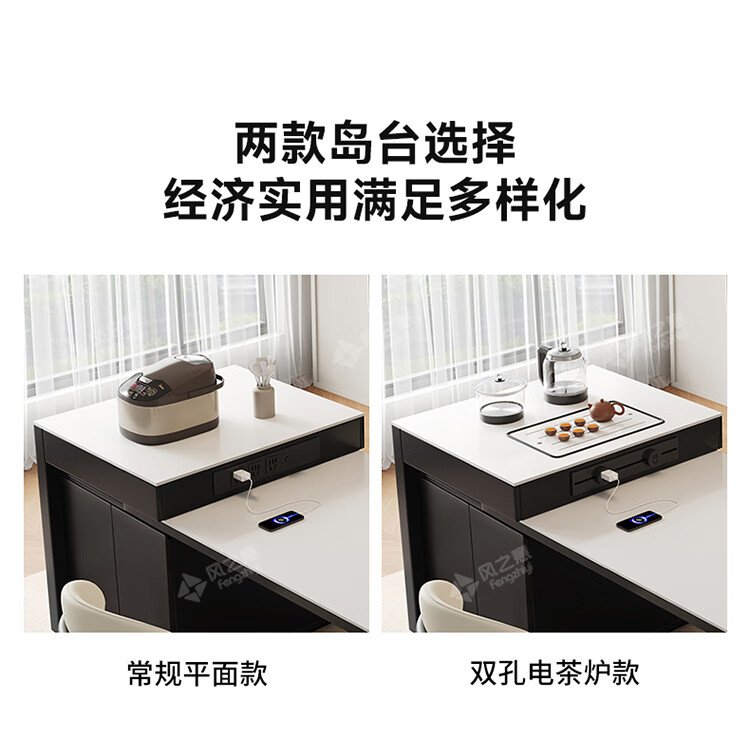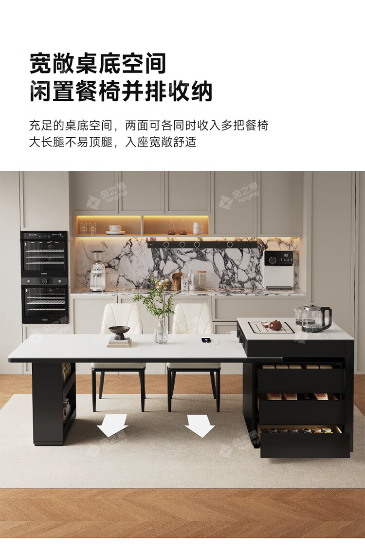 Fengzhiyi solid wood island dining table integrated multi-functional medieval style retractable dining table living room kitchen high-end central guide table LJ-633 retractable island (including cabinet) + horn chair * 4 1.6m (slide rail socket + double hole tea stove)