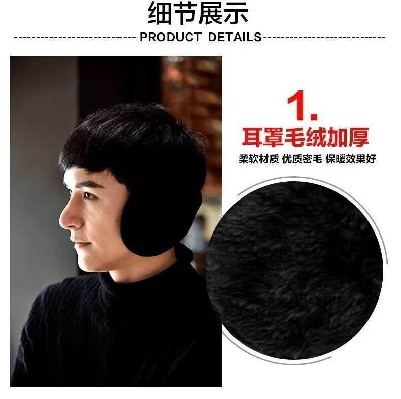 Rovelite earmuffs men's winter earmuffs plus velvet thickened plush warm earbags solid color cold-proof back-worn earmuffs suede black