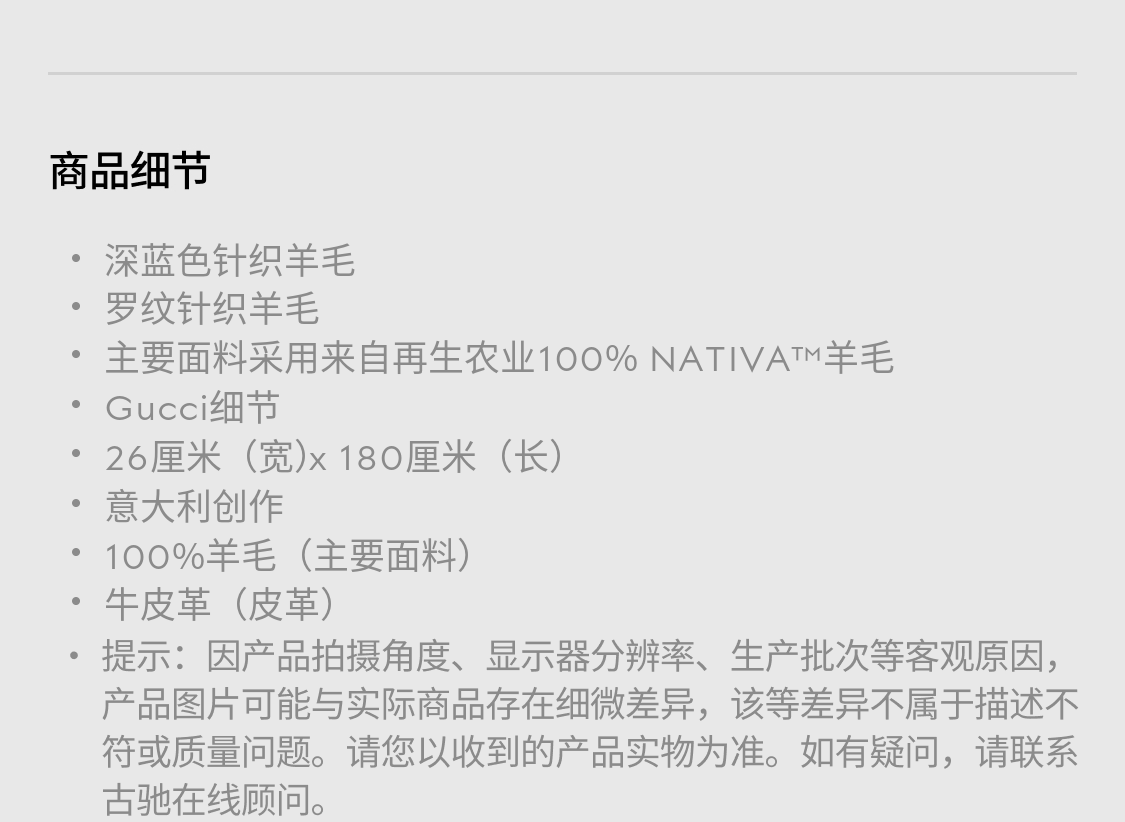 GUCCI brand logo knitted wool scarf gift dark blue one size