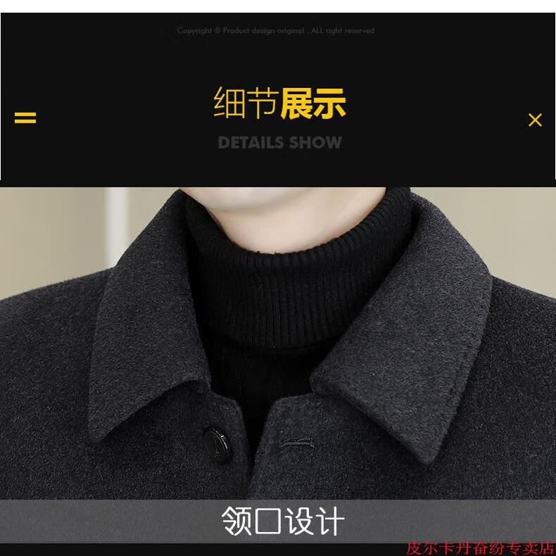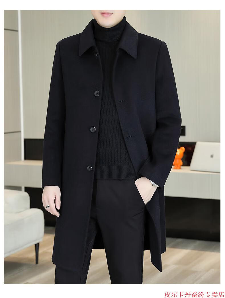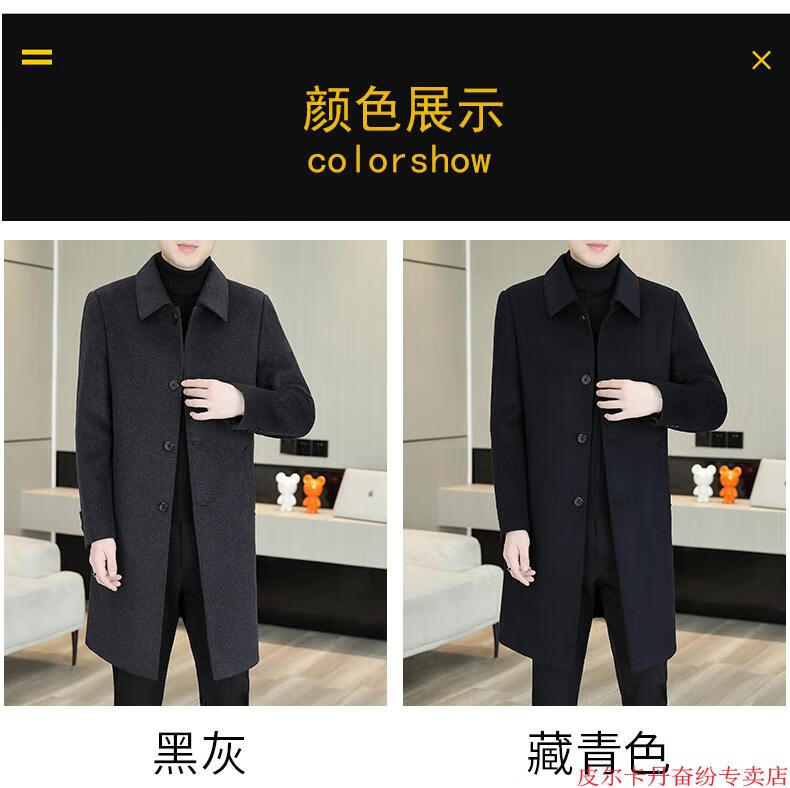 Pierre Cardin autumn and winter woolen woolen coat men's mid-length thickened down woolen coat men's lapel double-sided woolen windbreaker black double-sided woolen removable down liner XL suitable for 130-150Jin Jin equals 0.5 kg