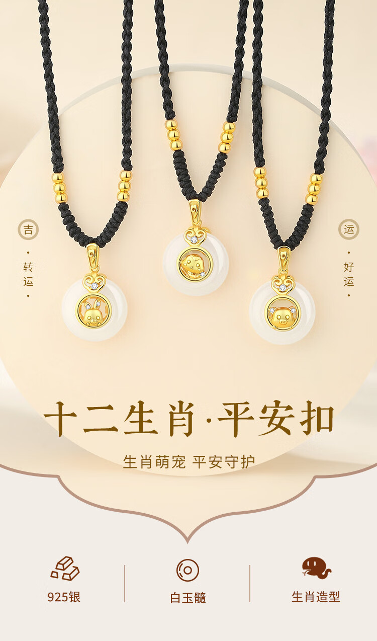 Gin Qianhui 925 silver necklace female zodiac safety buckle pendant animal year pendant Valentine's Day birthday gift for girlfriend auspicious zodiac snake