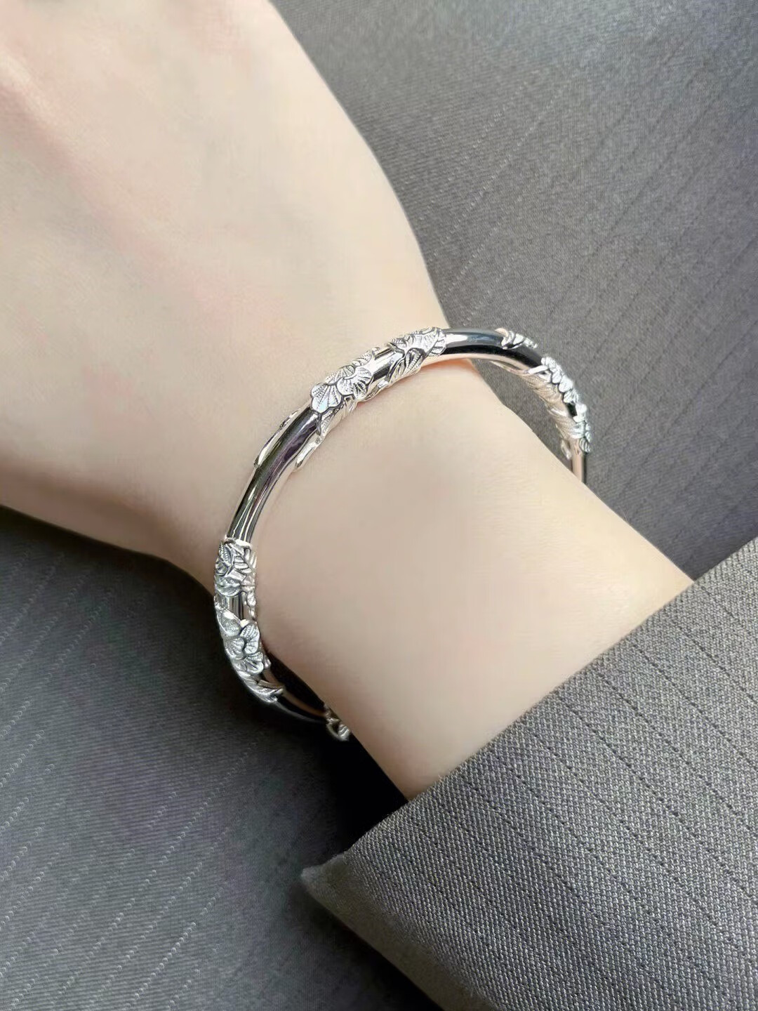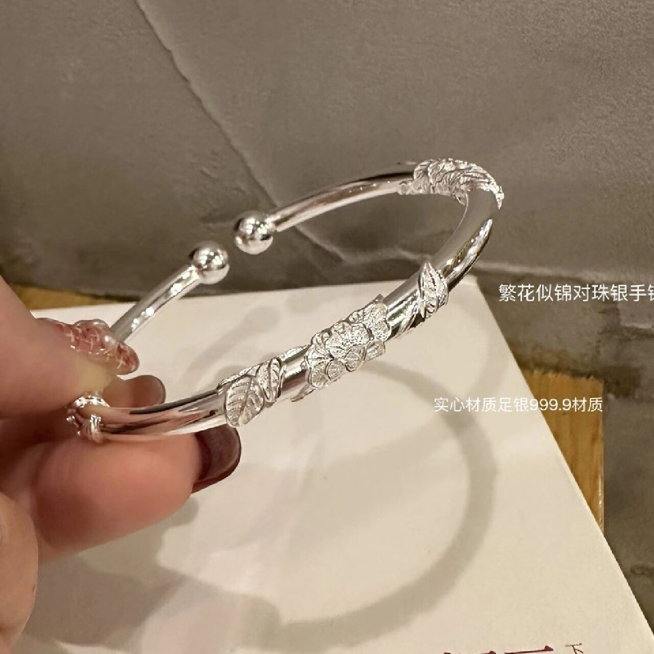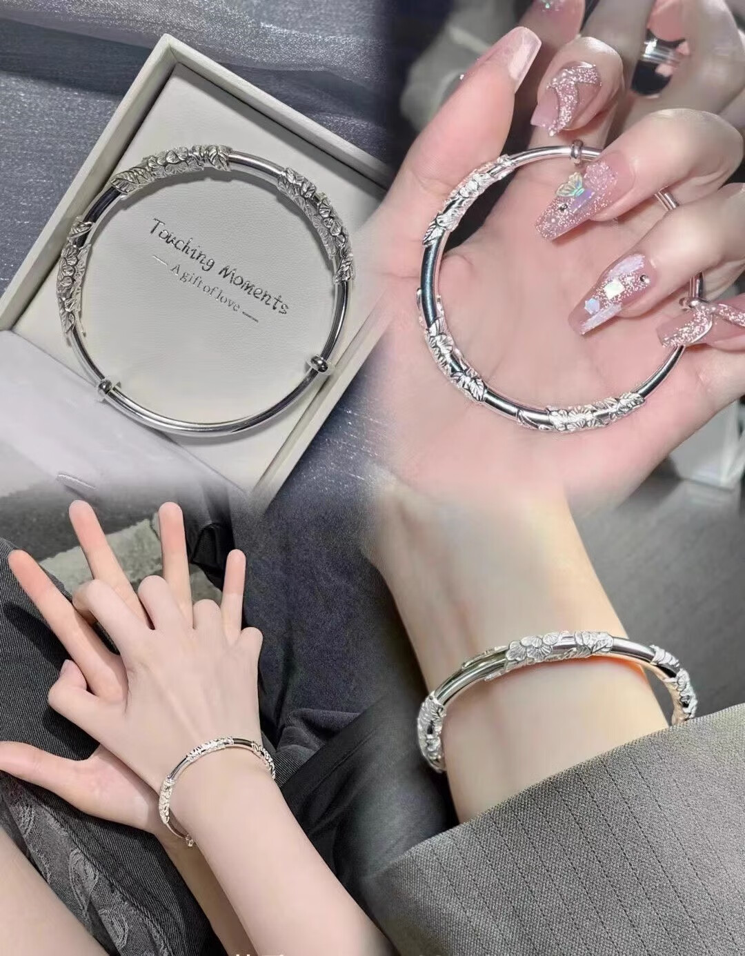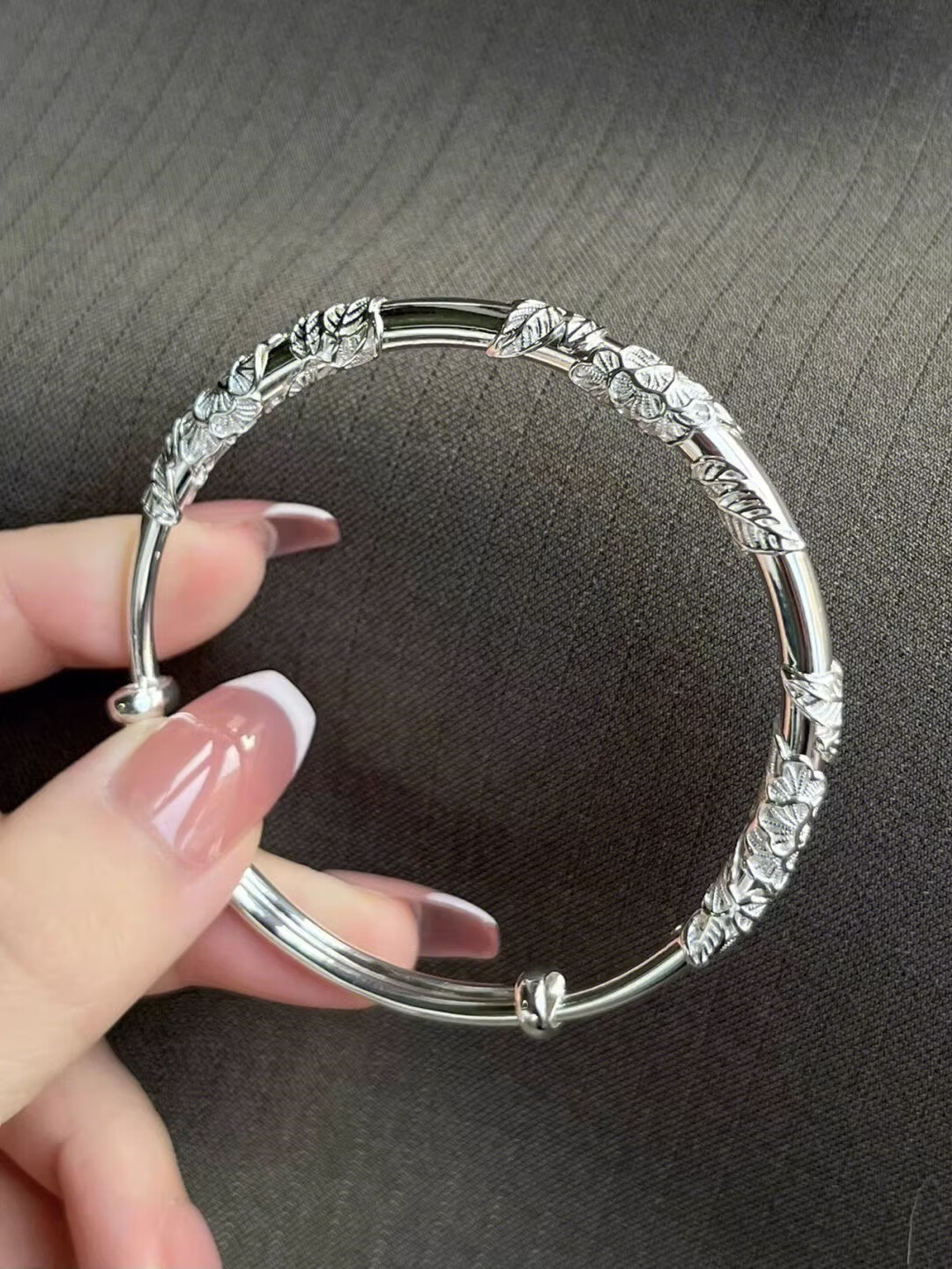 Shixi Flowers sterling silver bracelet for women s999 pure silver bracelet solid bracelet for girlfriend Chinese Valentine's Day birthday gift 30g blooming flowers + butterfly stamens