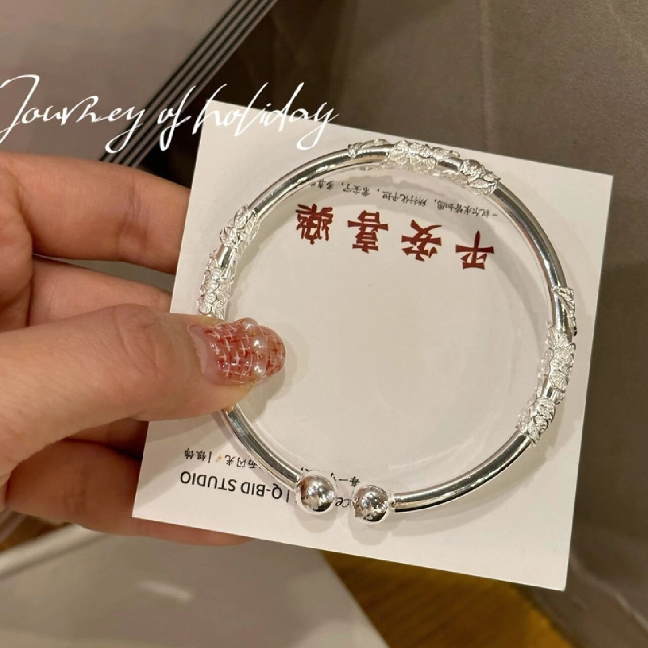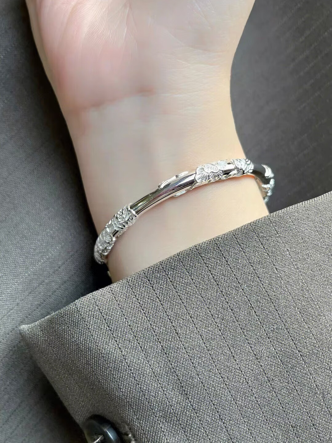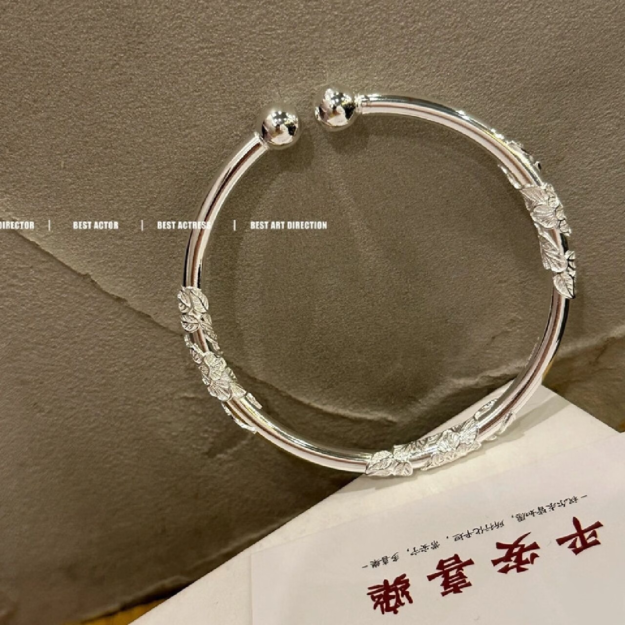 Shixi Flowers sterling silver bracelet for women s999 pure silver bracelet solid bracelet for girlfriend Chinese Valentine's Day birthday gift 30g blooming flowers + butterfly stamens