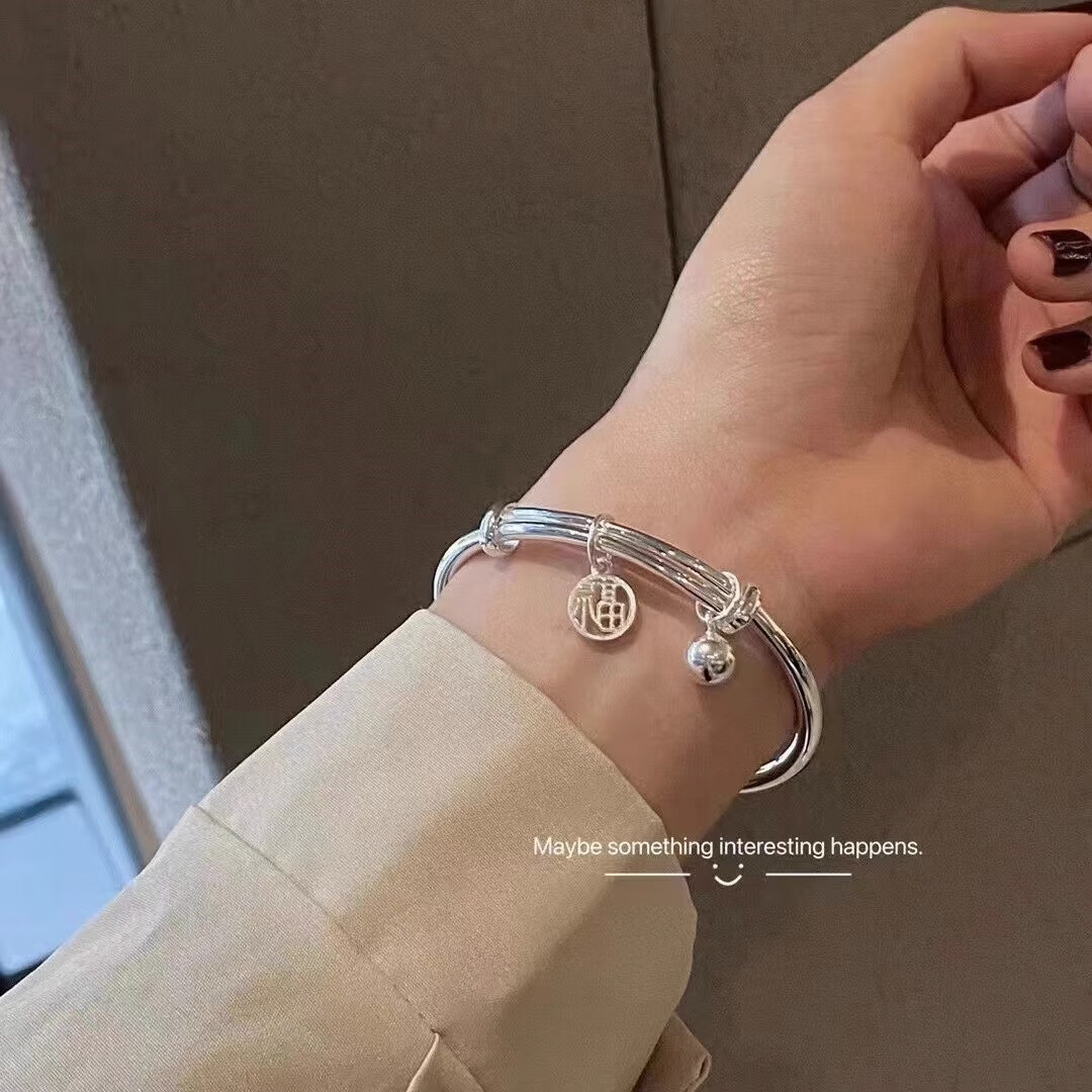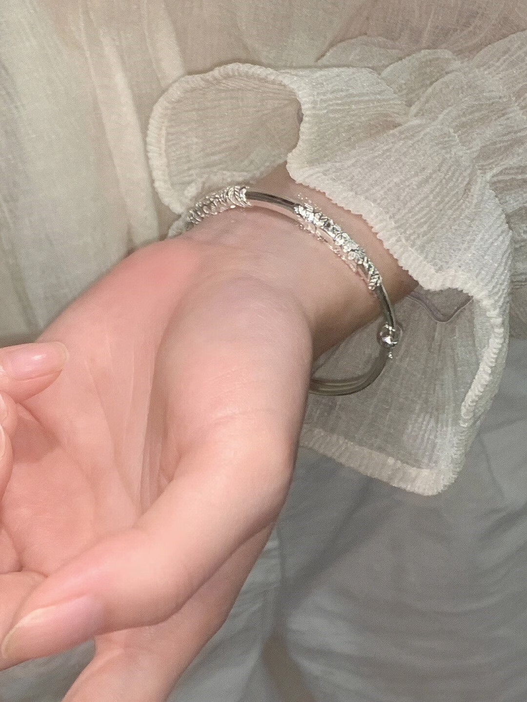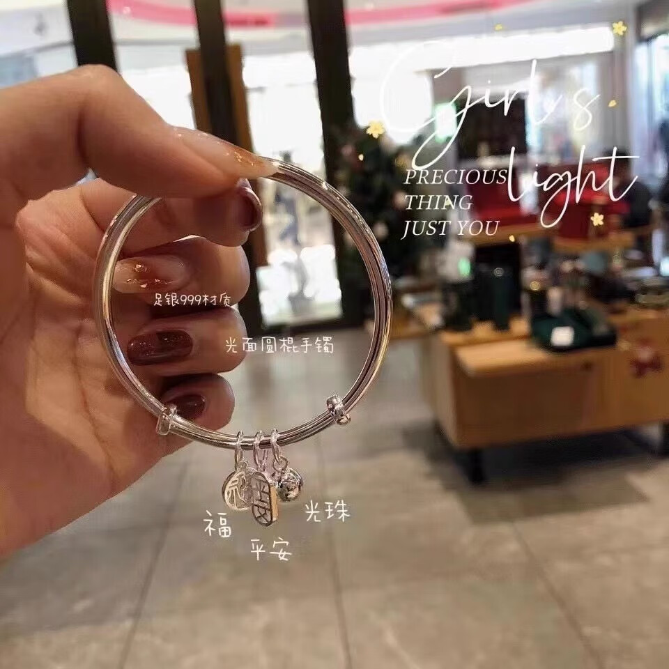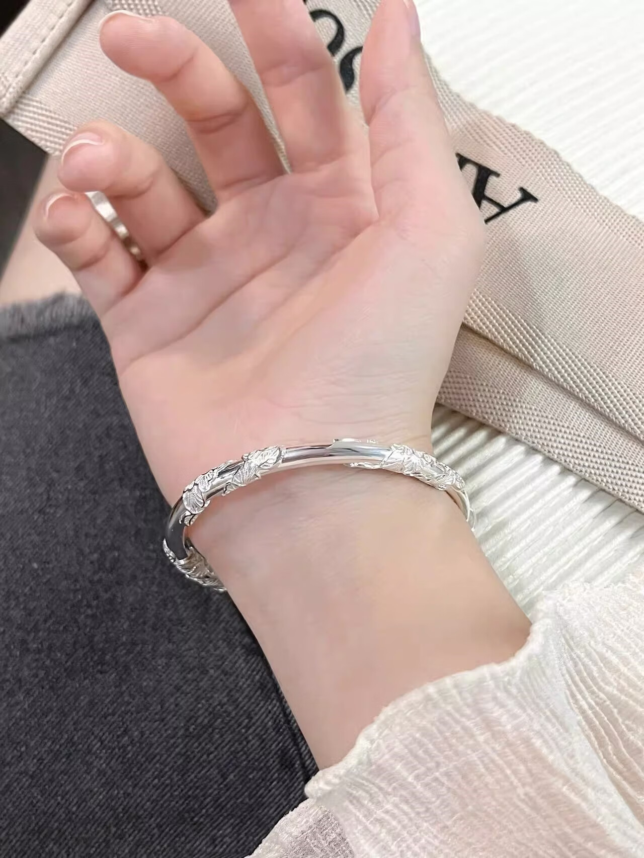 Shixi Flowers sterling silver bracelet for women s999 pure silver bracelet solid bracelet for girlfriend Chinese Valentine's Day birthday gift 30g blooming flowers + butterfly stamens