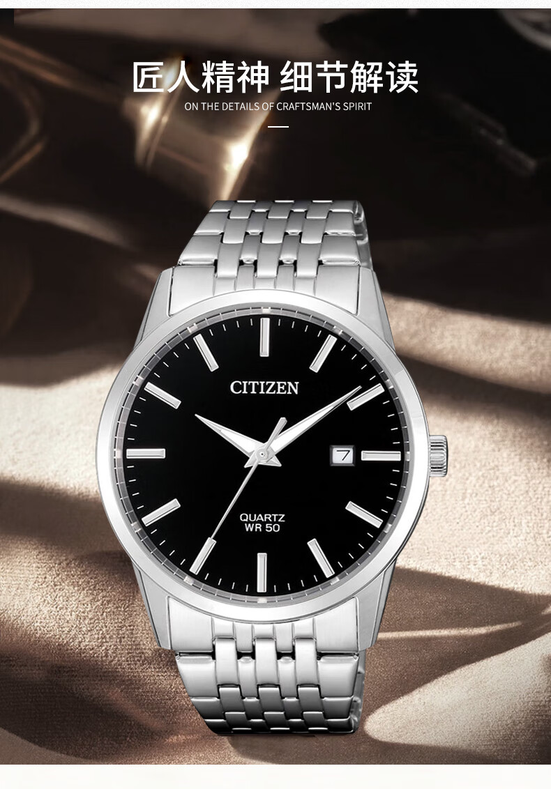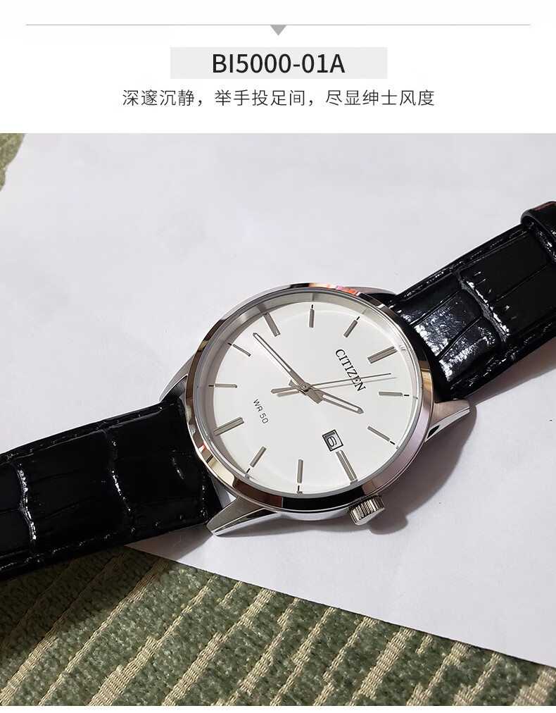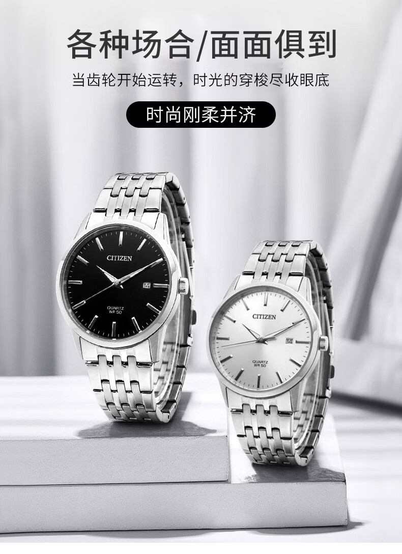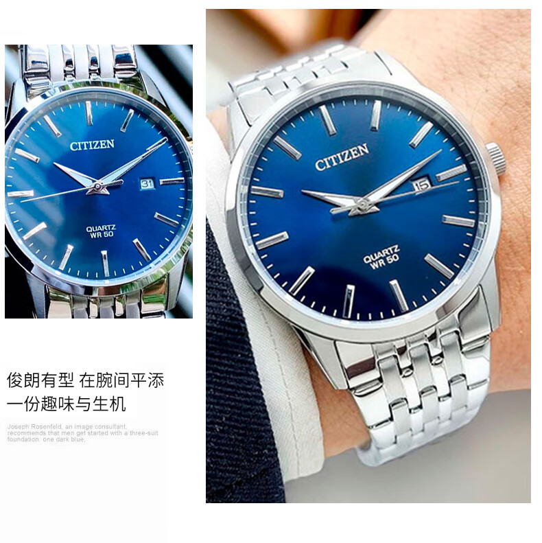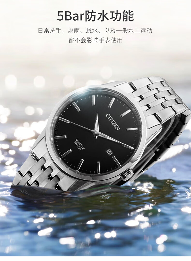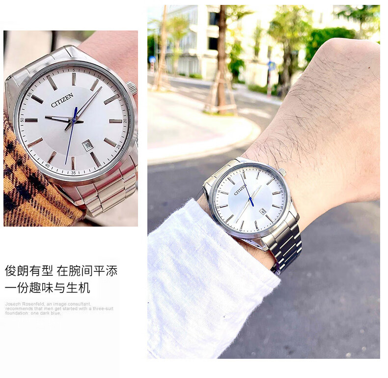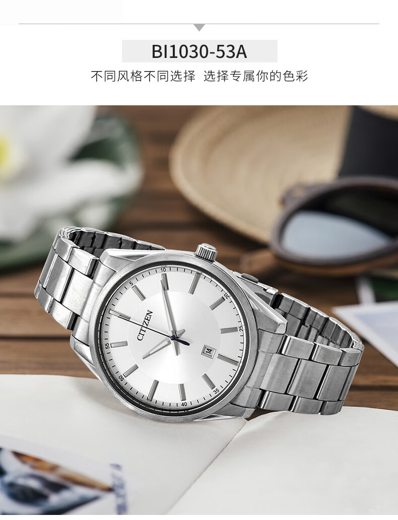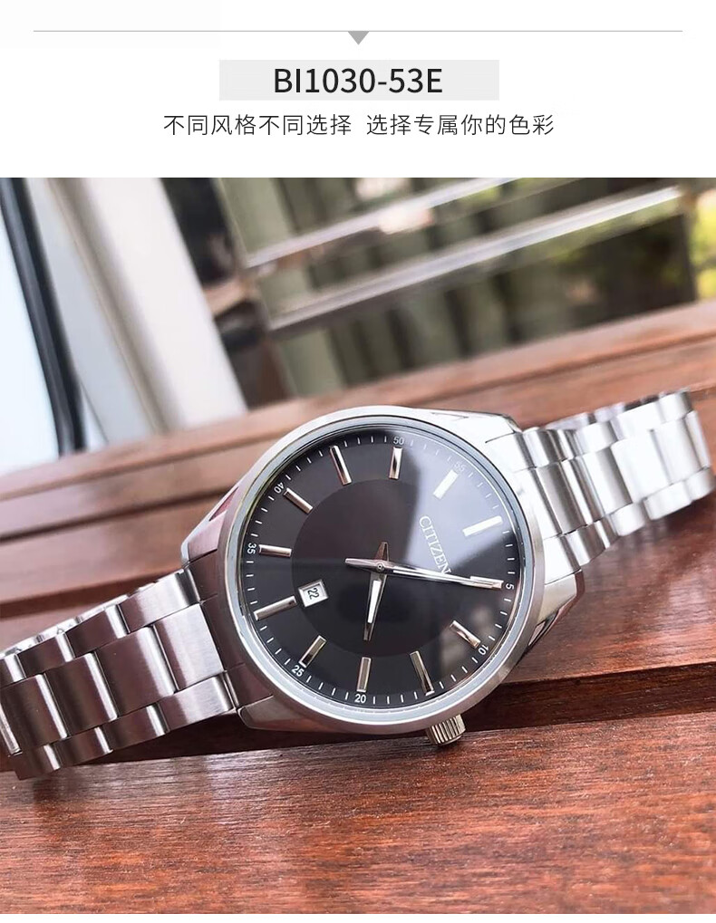 CITIZEN watch men's quartz movement series luminous waterproof watch date display men's watch birthday gift BI1030-53A silver plate steel belt