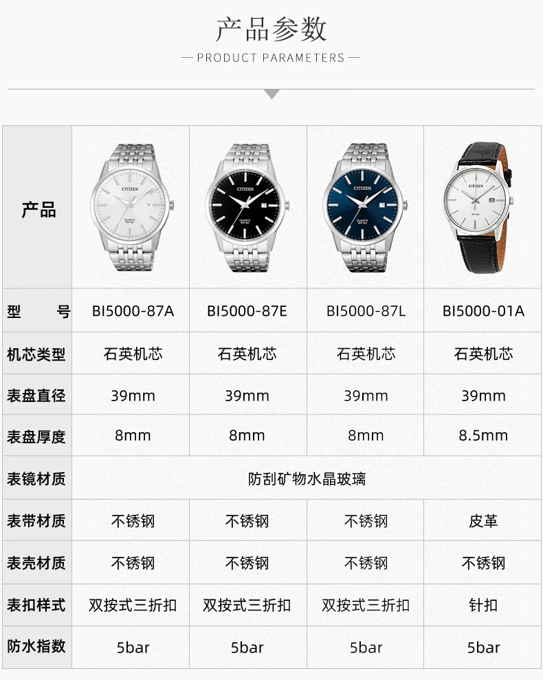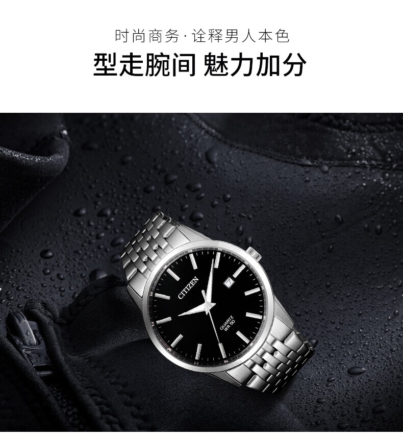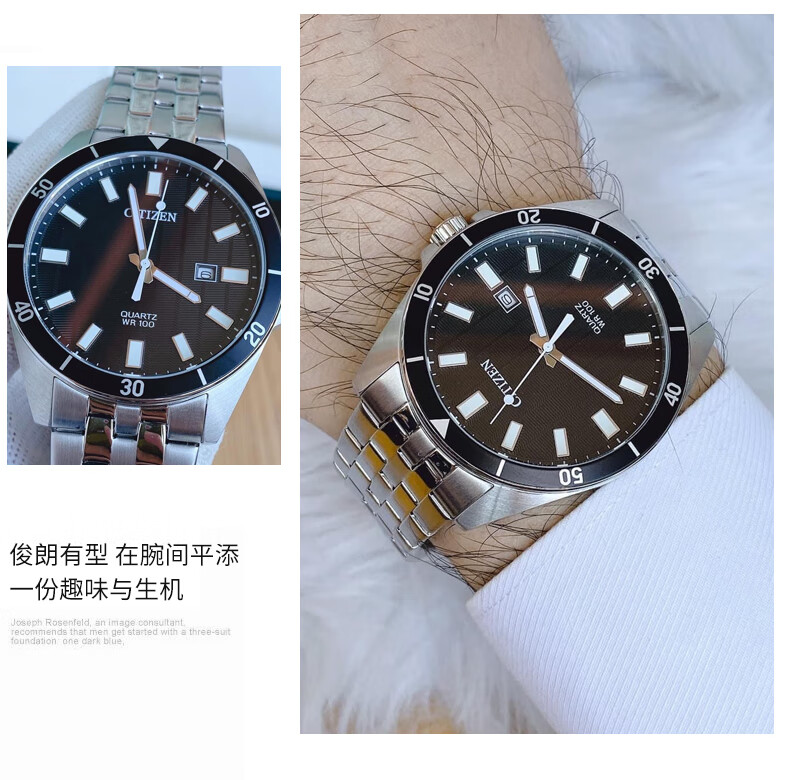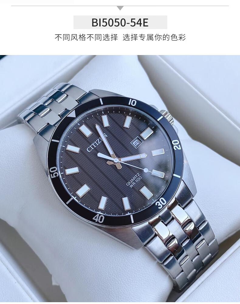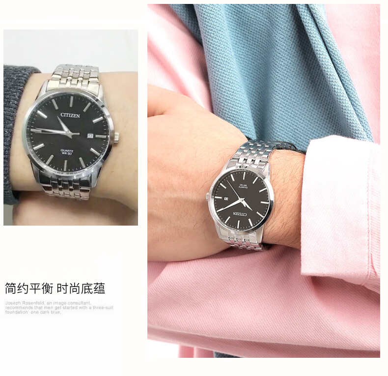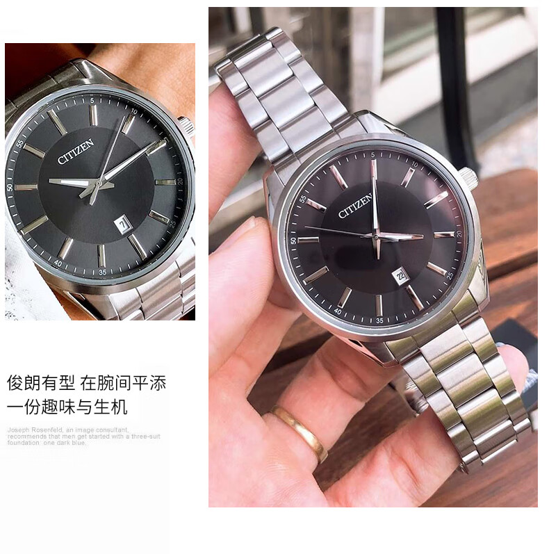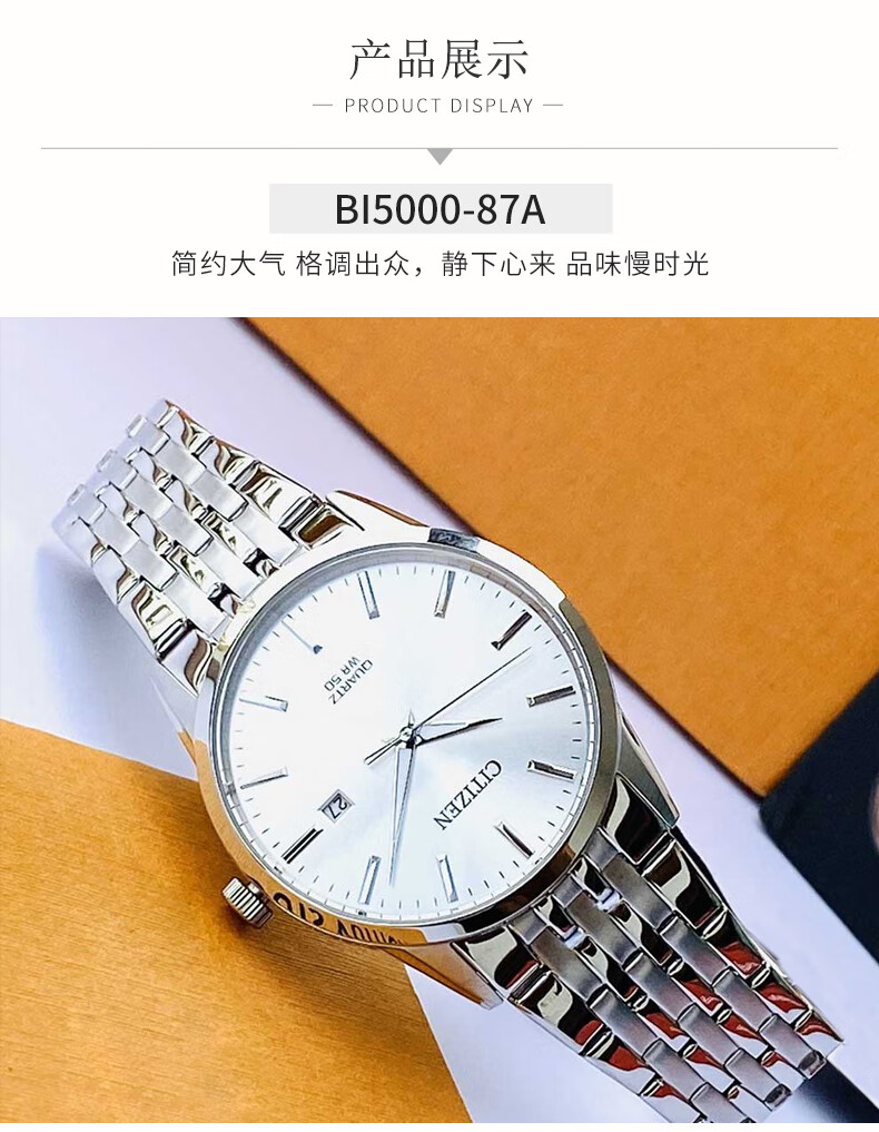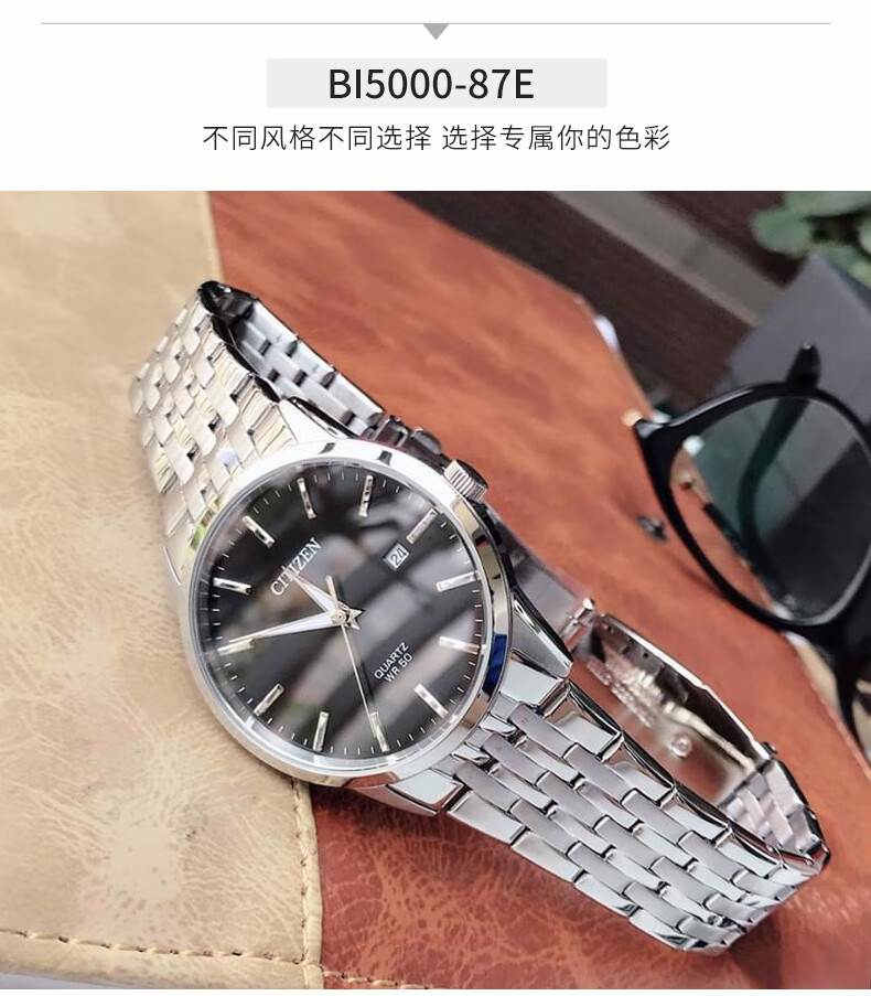 CITIZEN watch men's quartz movement series luminous waterproof watch date display men's watch birthday gift BI1030-53A silver plate steel belt