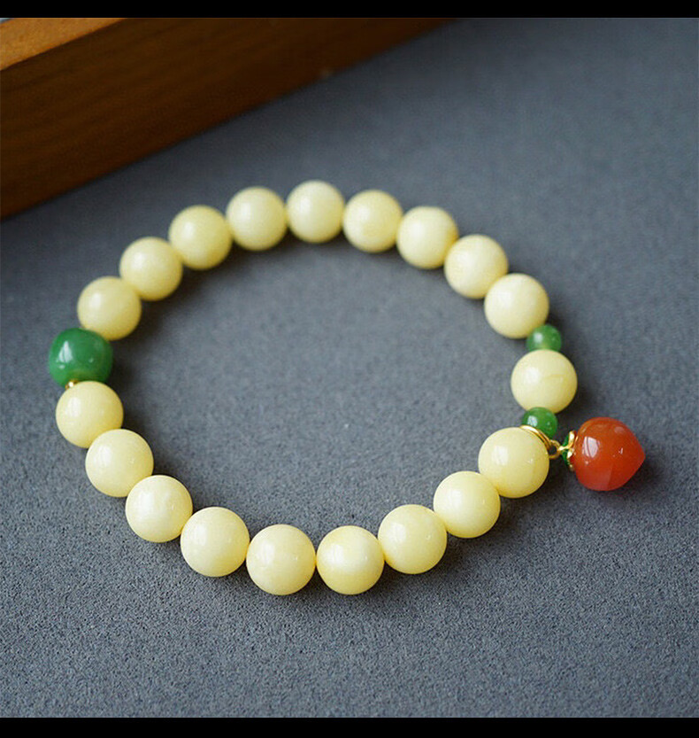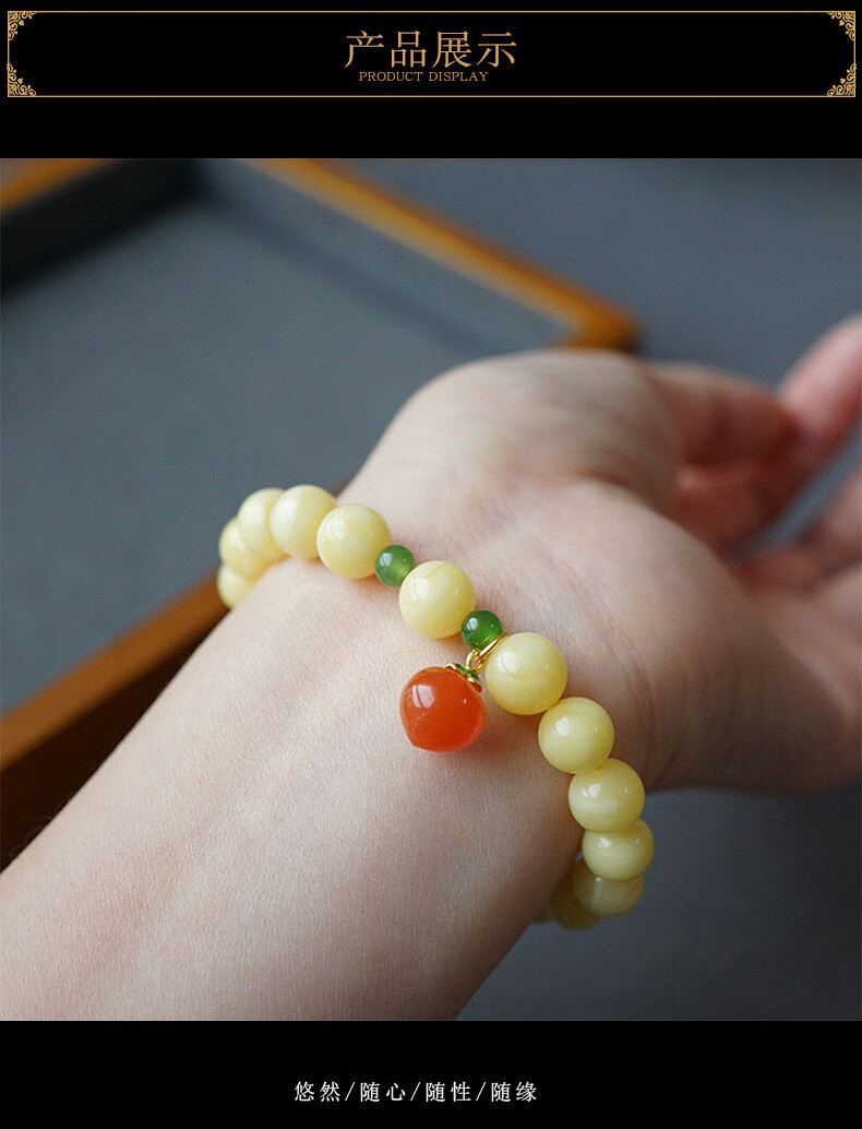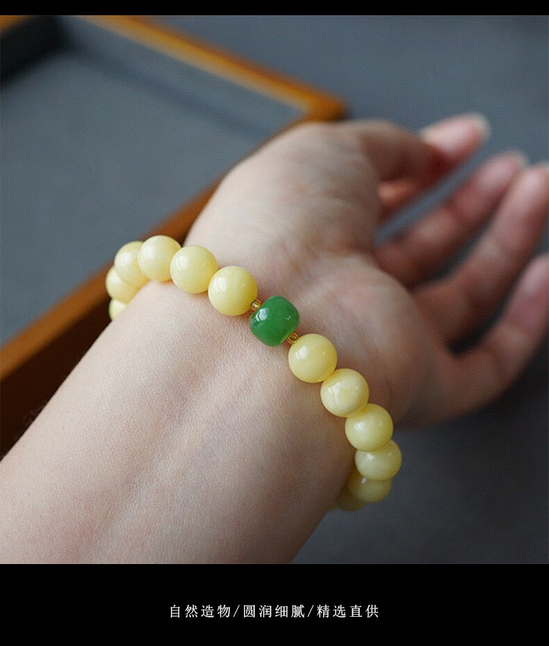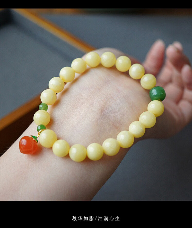 La Yun Feiyin white flower honey wax bracelet round bead single circle bracelet original design women's style with retro jasper southern red small peach