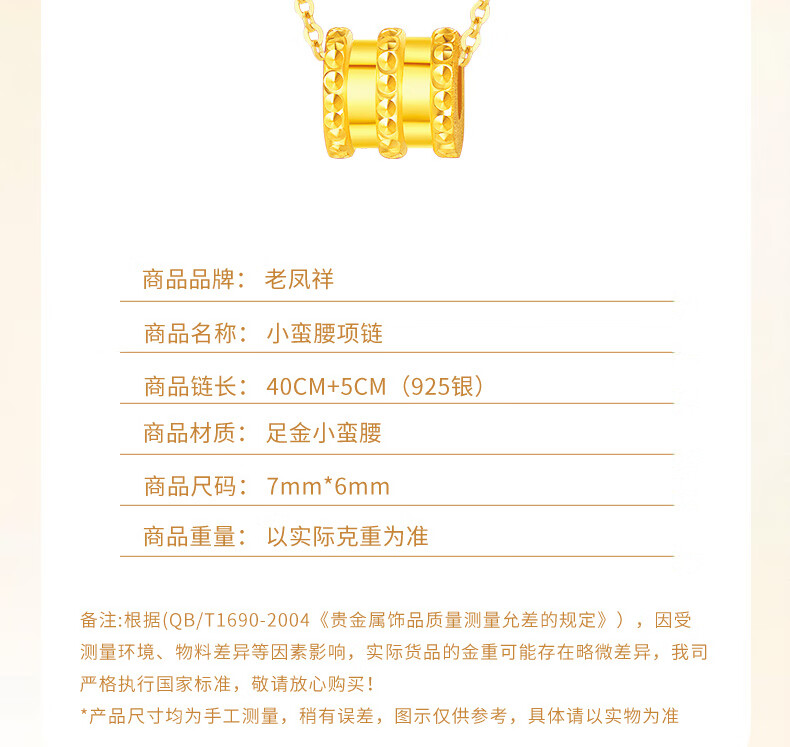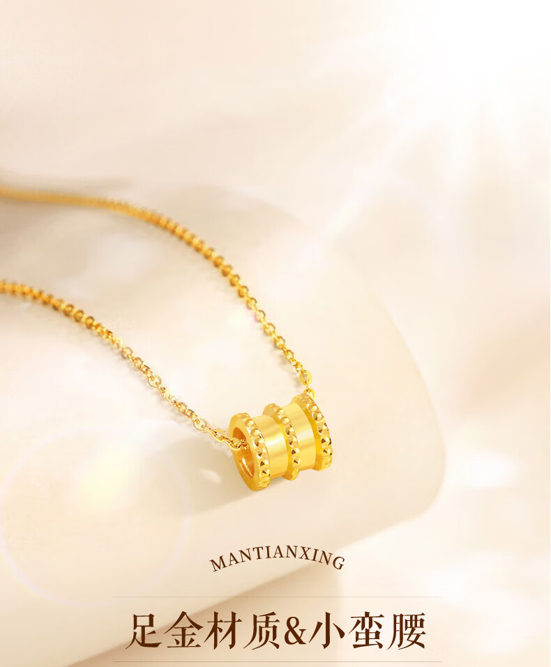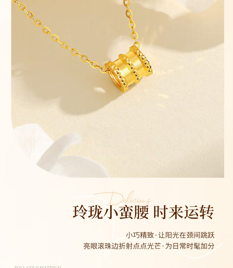 Lao Fengxiang Small Waist Gold Necklace for Women 2025 New Pure Gold Pendant Wedding Anniversary Gift for Girlfriend and Wife’s Birthday Pure Gold Small Waist Pendant + Pure Gold Chain Delivered Today/Next Day
