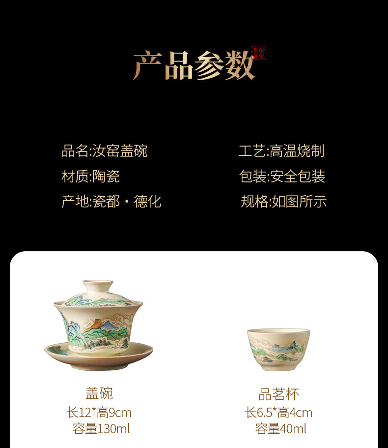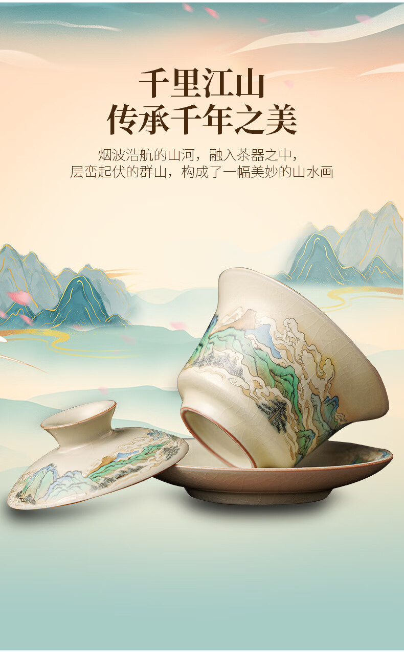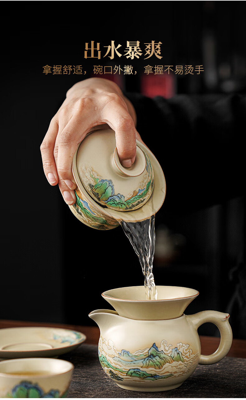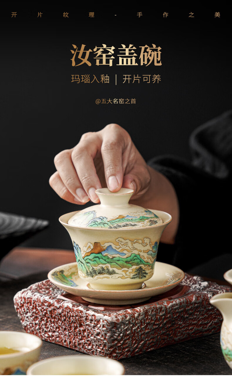 Qixuanyuan Ru kiln Sancai covered bowl tea cup single high-end tea cup anti-scalding with lid fair cup three-piece tea set set mutton fat jade porcelain covered bowl + Ruyi two cups + male cup tea tray