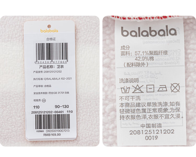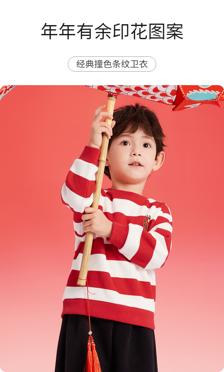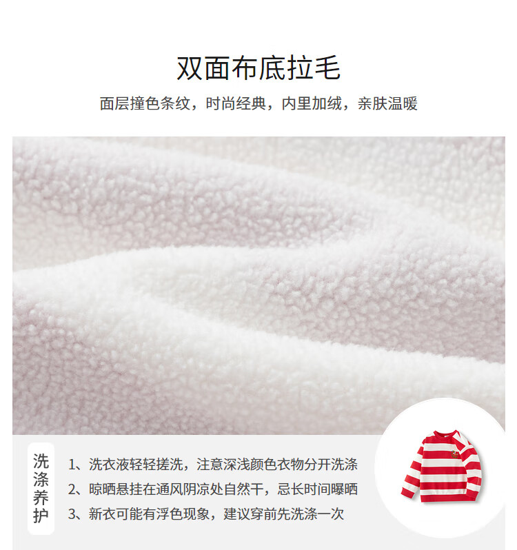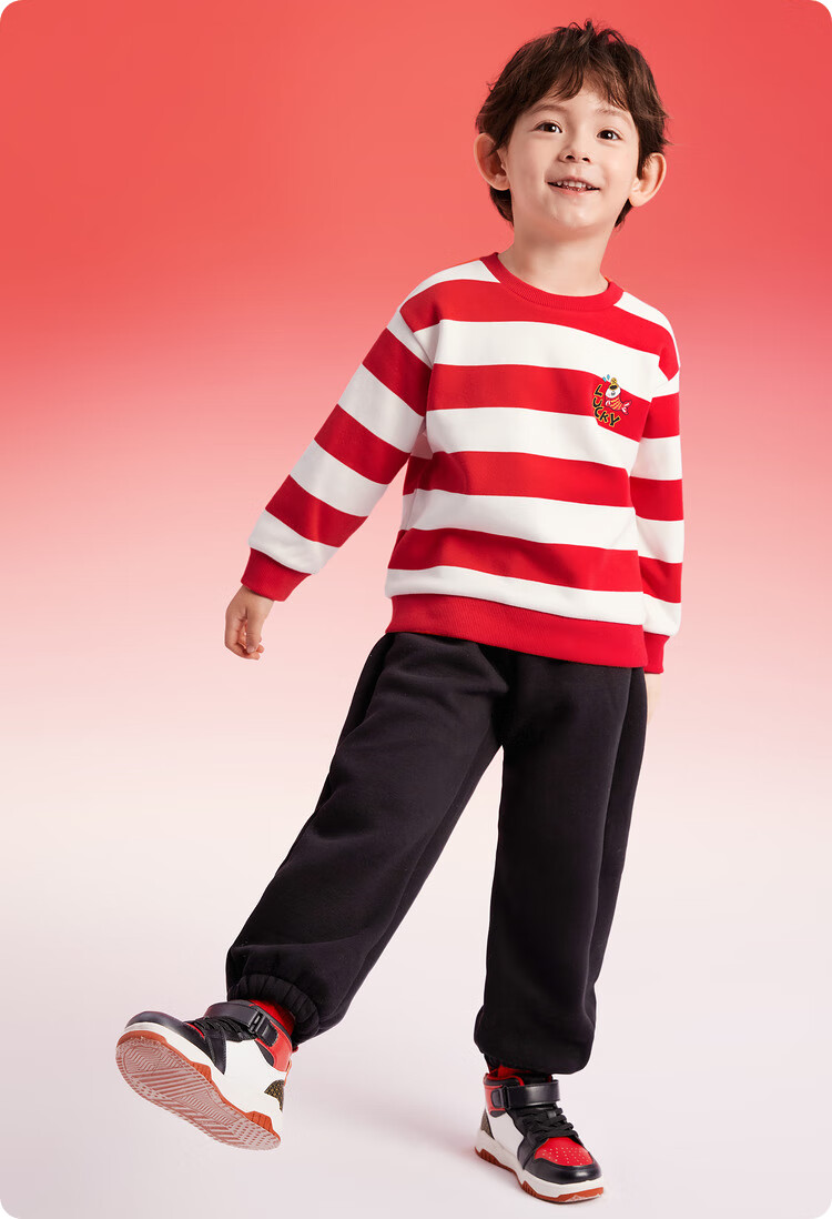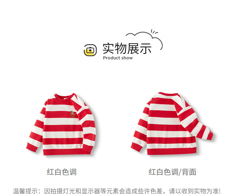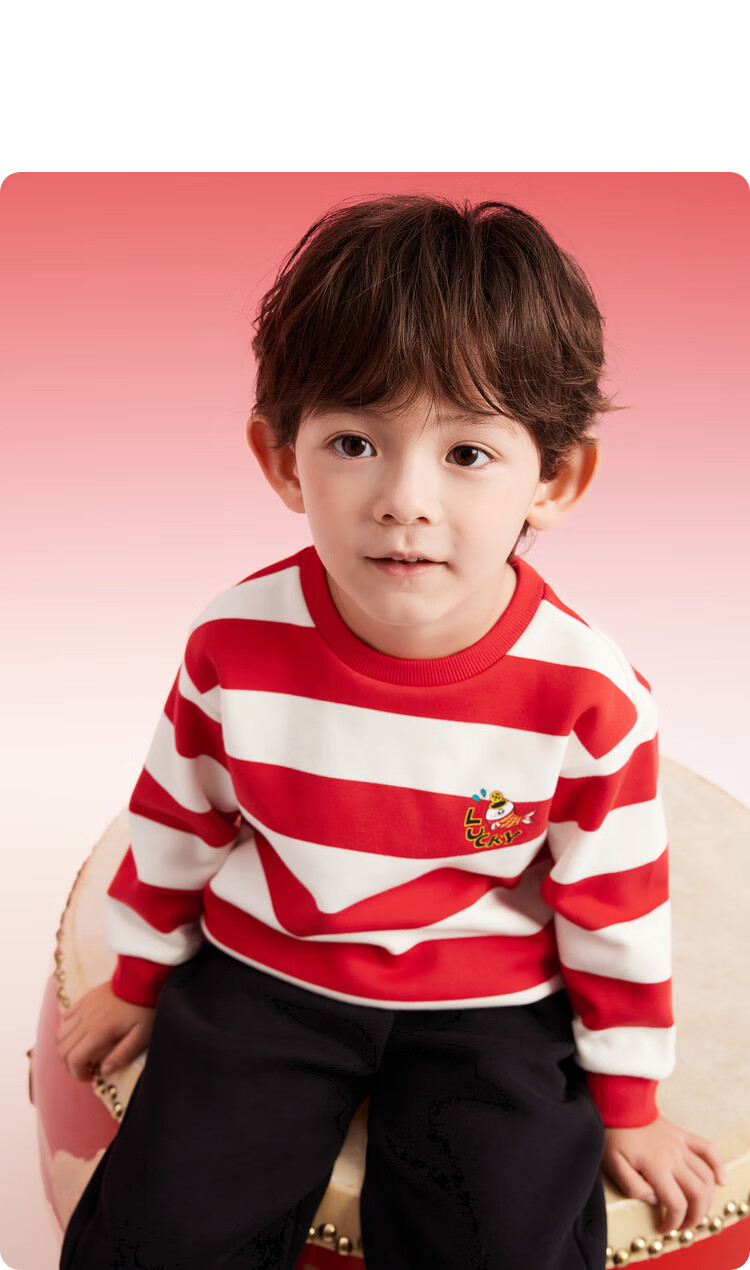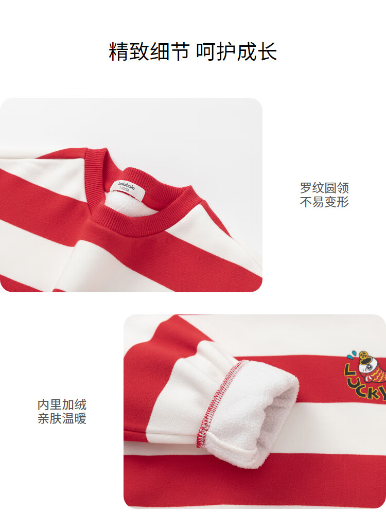 Balabala children's clothing children's sweatshirts girls and boys 2025 new spring and winter clothes baby striped velvet top New Year's greetings trendy red and white tone 00461 120