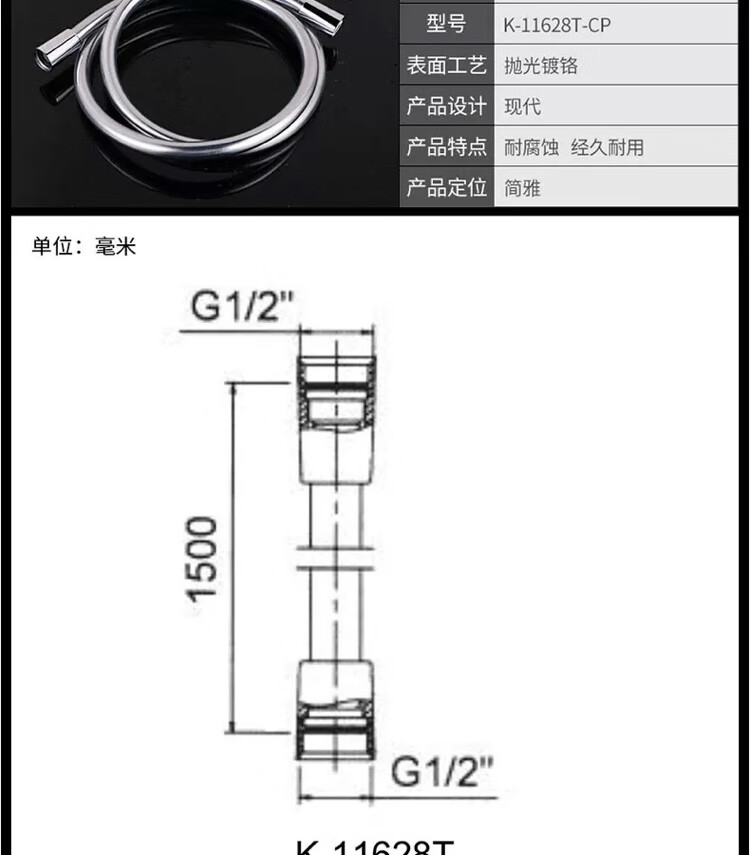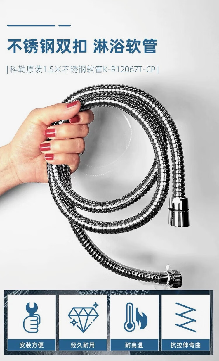 Kohler hose shower connection hose K-R12067T-CP1.5m stainless steel explosion-proof shower hose 4 universal interface K-R12067T-CP1.5m explosion-proof hose