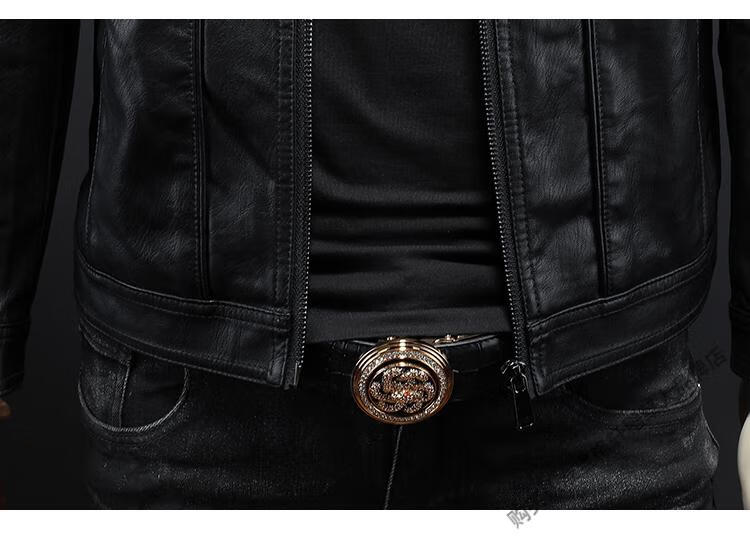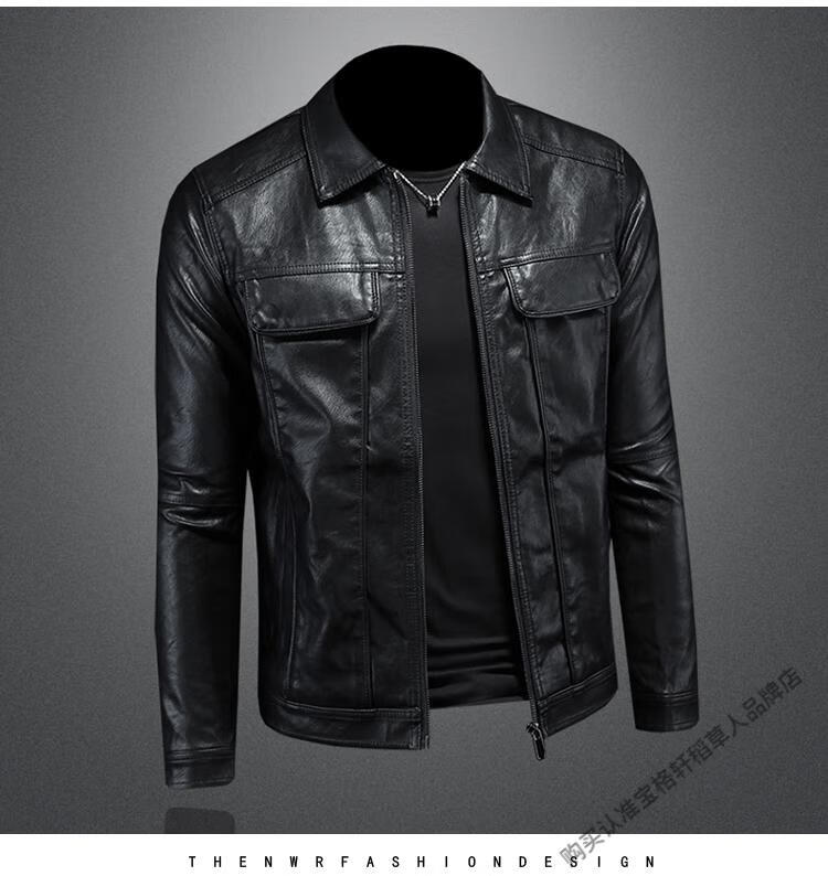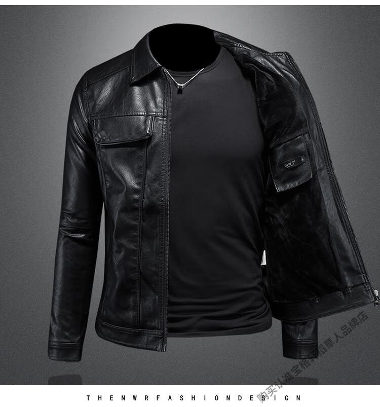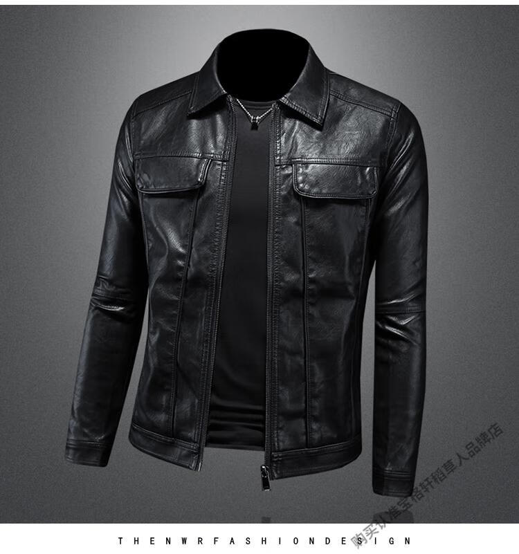 Left side Marvel Venom European and American lapel leather jacket men's motorcycle handsome winter new style parka green slim leather jacket trendy black M