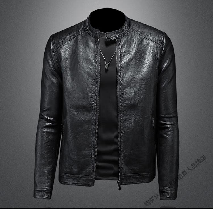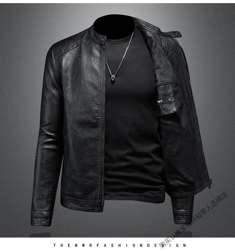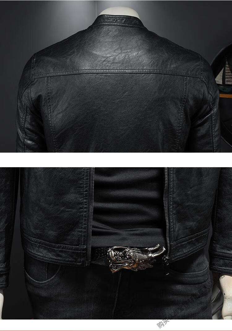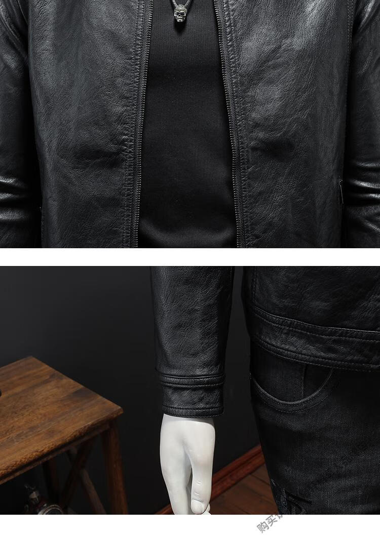 Left: Marvel Venom European and American stand-up collar plus velvet leather jacket for men's motorcycle rider autumn and winter new parka green leather jacket black M