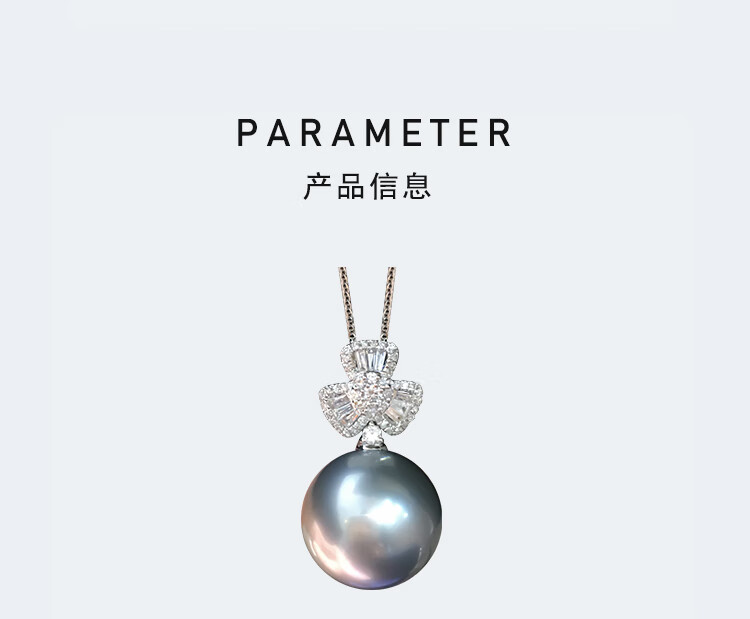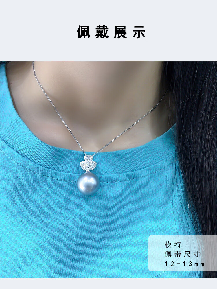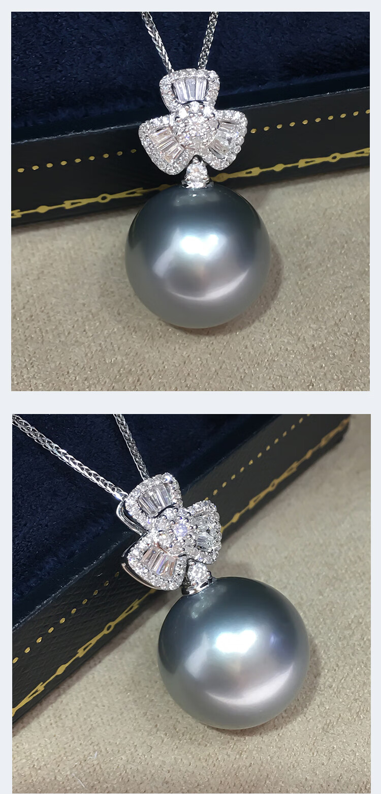 Qianjun guaranteed price natural sea water Tahiti platinum gray pearl pendant single perfect round extremely bright gold pearl diamond necklace 13-14mm